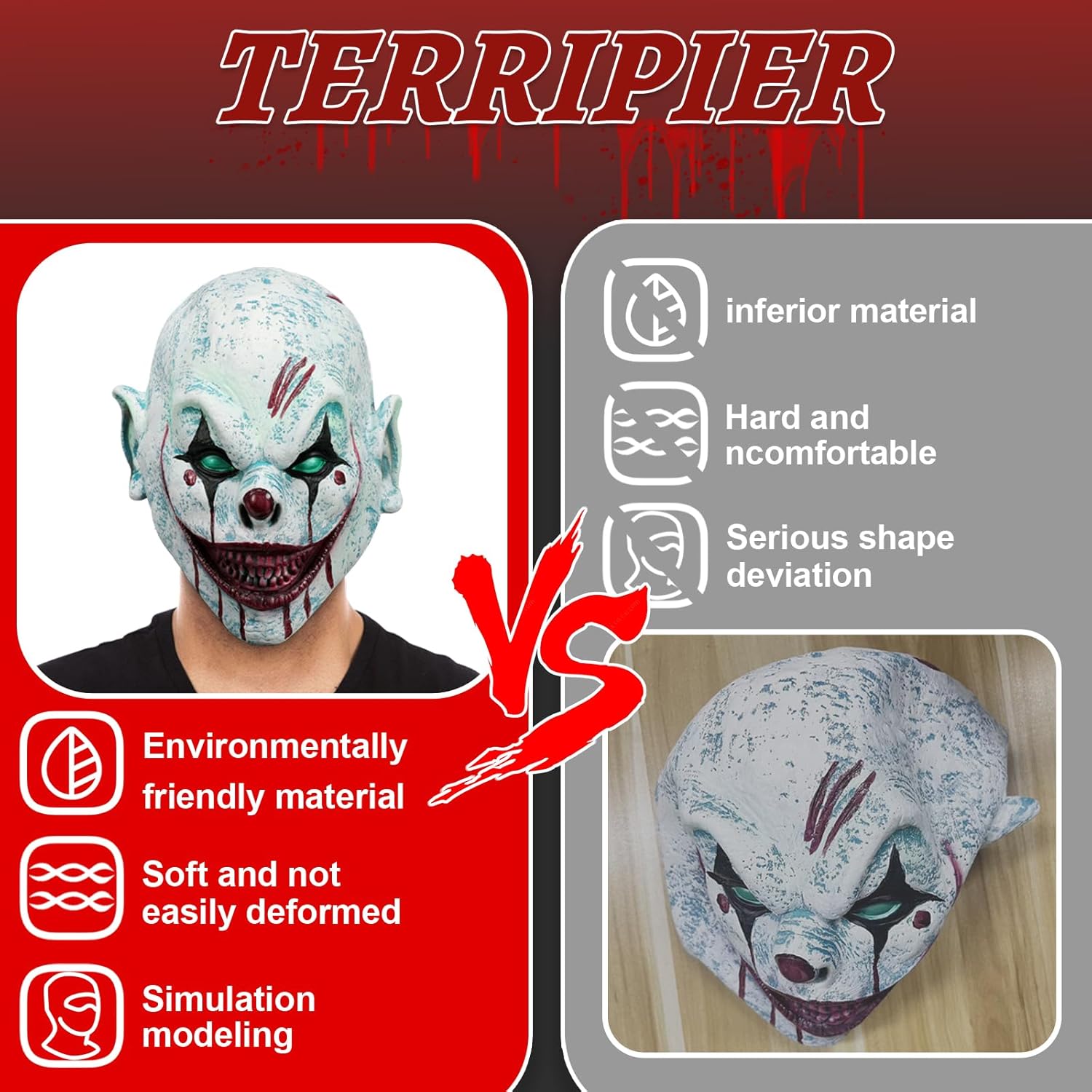 Maschera da Clown Terrifier - Maschera Horror - Cosplay - Maschera Spaventosa - Prop Festival - Maschera Cosplay - Costume di Halloween - Gadget per Feste