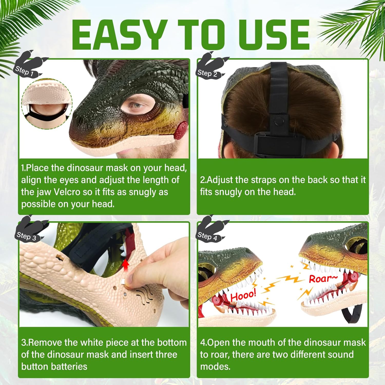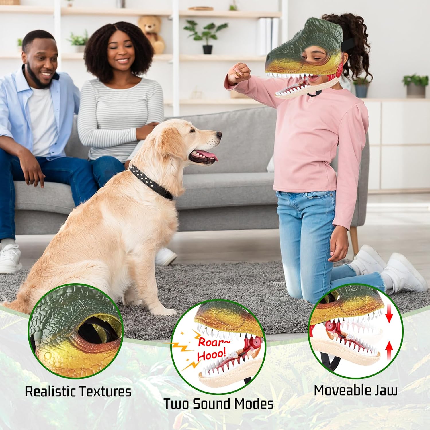 Maschera da dinosauro Mascella mobile Decorazioni di Halloween che trasportano Maschera da dinosauro Effetti sonori Decorazioni per feste da dinosauro per bambini Adulti Maschere Velociraptor