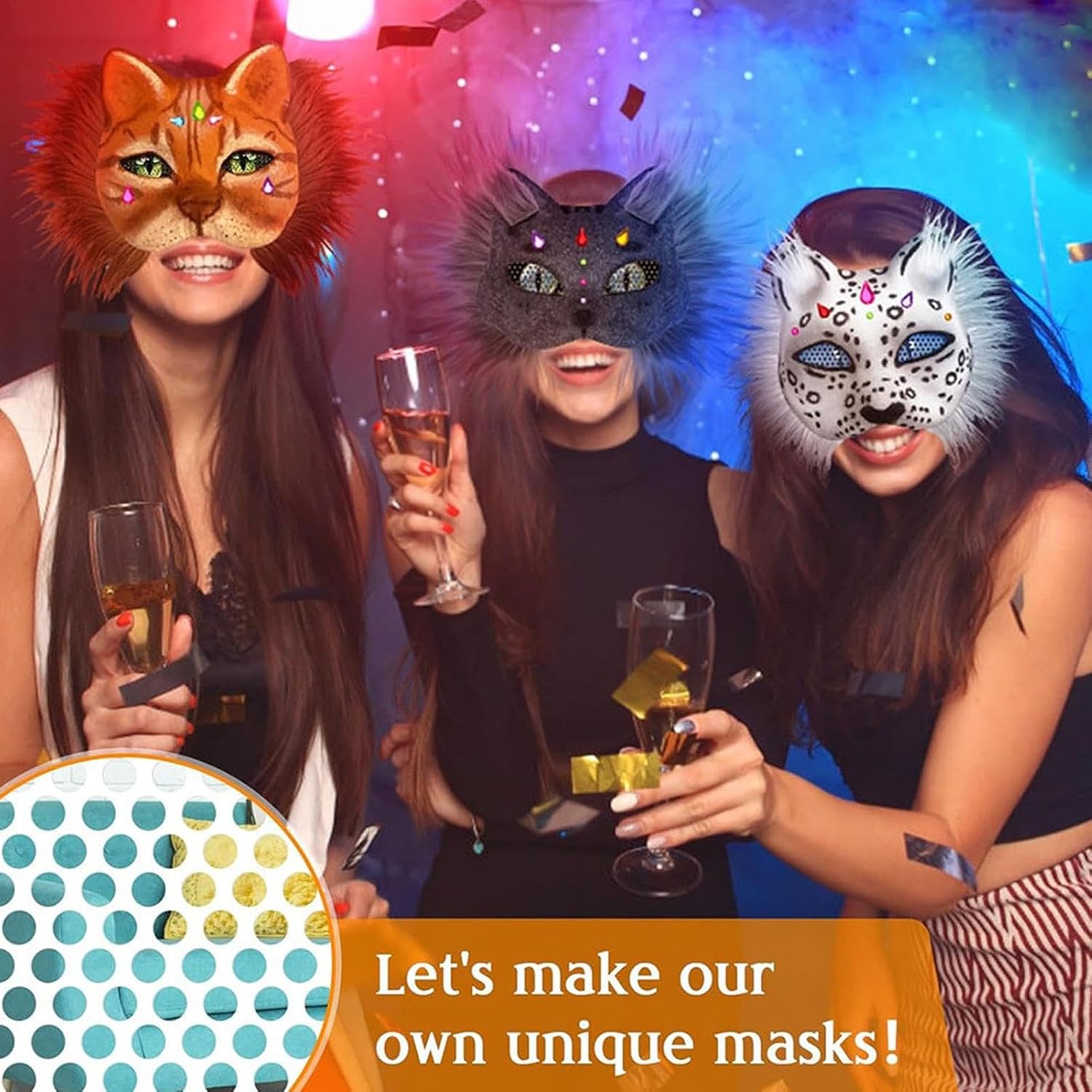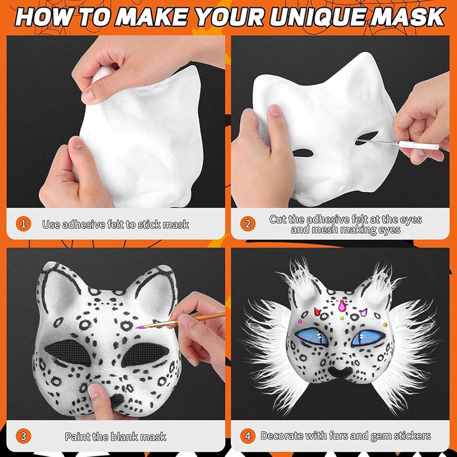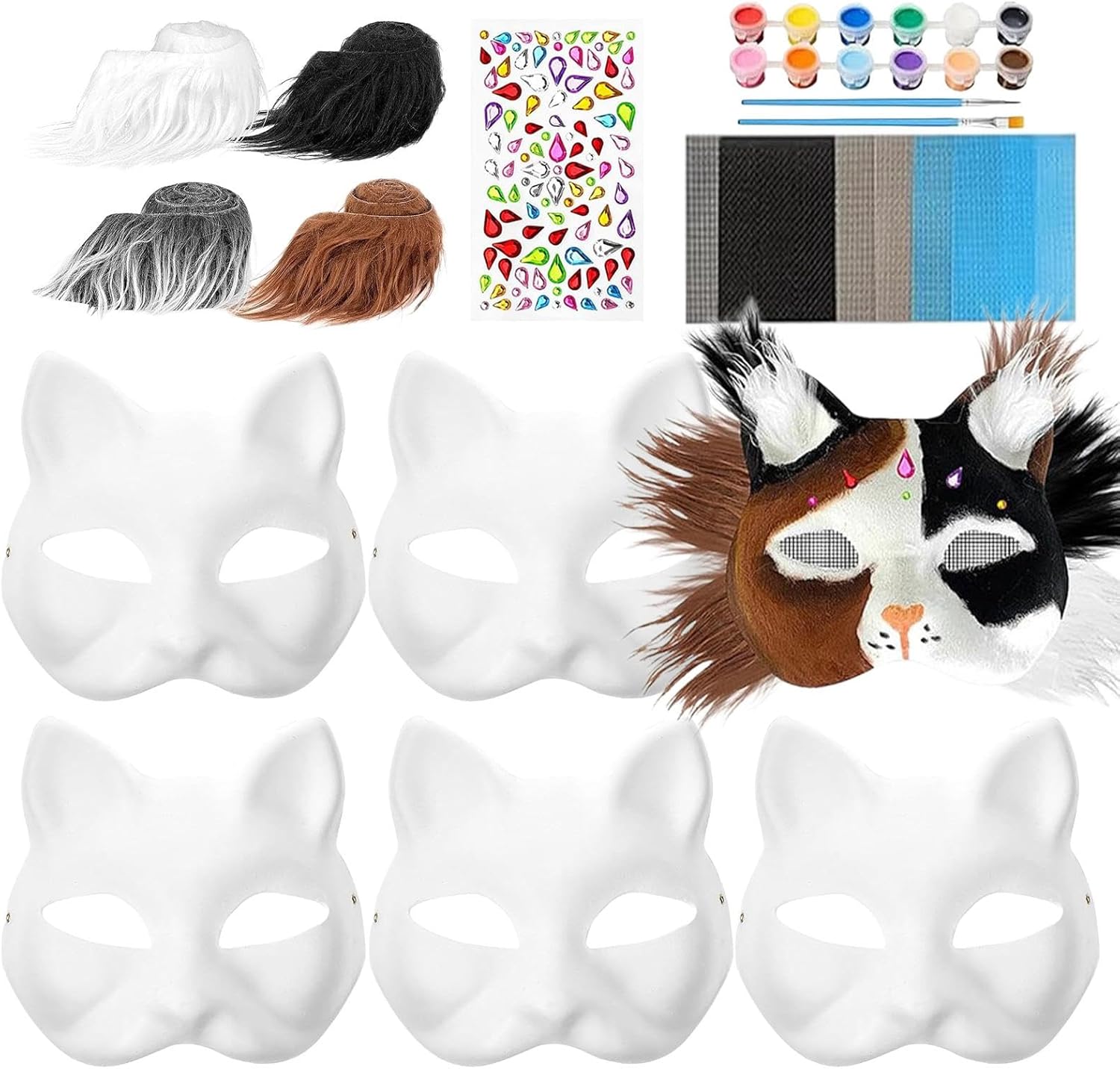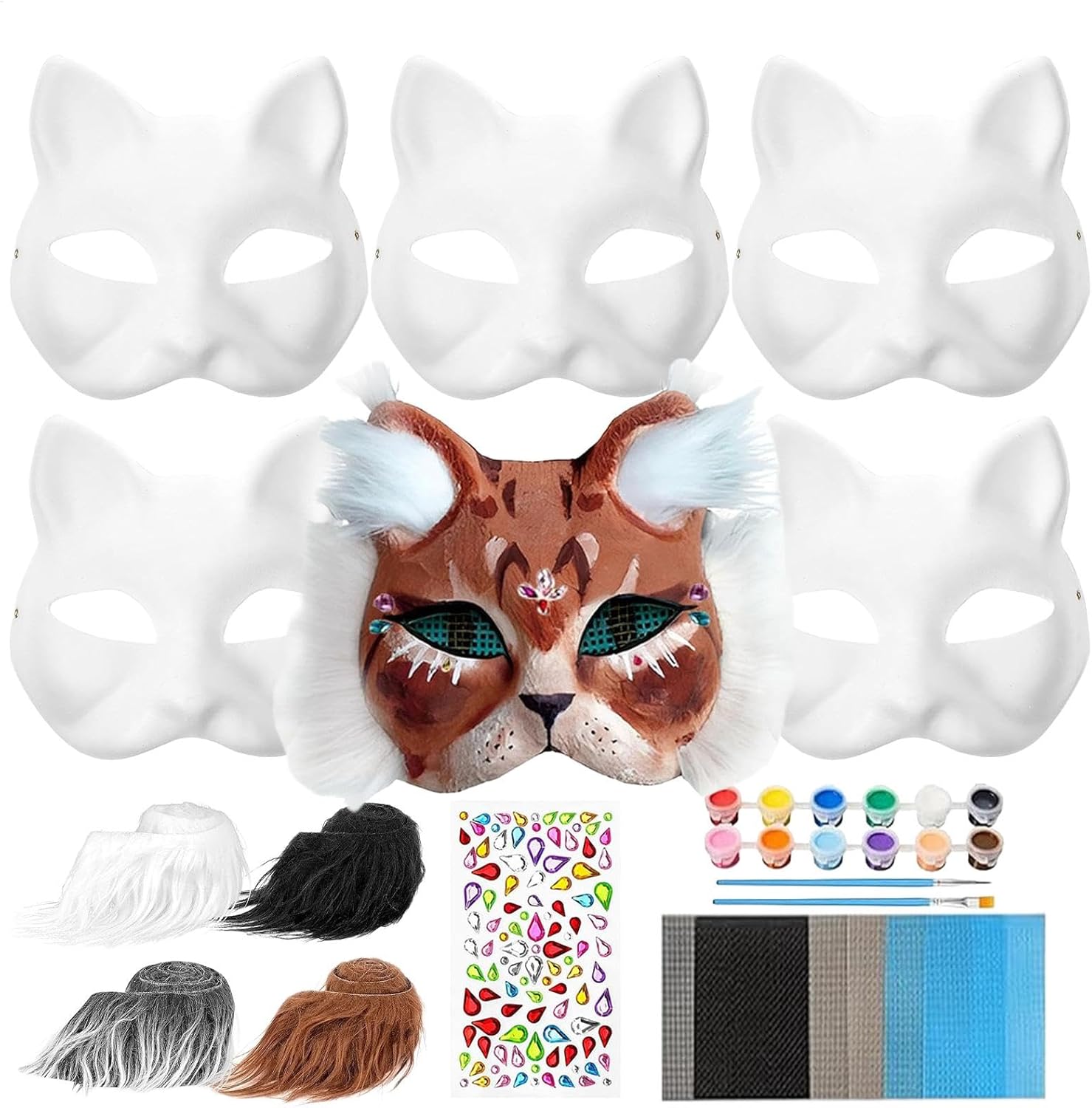 Trasforma il tuo amico felino con la nostra maschera per gatti artificiale. Scegli tra molteplici opzioni di stile e personalizza con 16 reti passacavo, 1 set di adesivi e vernici. Ogni copertura è dotata di una fascia elastica regolabile per una vestibilità comoda ogni volta. Caratteristiche: Nome: maschera vuota da dipingere. Materiale: carta. Dimensioni del prodotto: circa 18 x 17 cm. Contenuto: 6 maschere per il viso. 3 skin (grigio gelo, bianco, caffè). 16 reti per occhi (nere, grigie, blu) 1 set di adesivi con pietre preziose. 1 dipinto