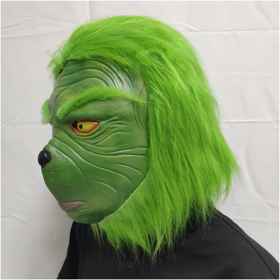 Maschera da Mostro Verde, Maschera Di Natale con cappello di Babbo Natale e guanti di Natale Costume Puntelli Spaventoso Lattice Maschera intera per adulti Cosplay Party Props