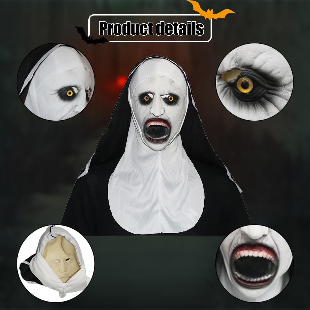 Descrizione del prodotto Maschera da suora horror, Oggetti di scena per feste di Halloween Decorazione per feste da mostro inquietante La maschera horror di Halloween ha un aspetto realistico e spaventoso, garantendo comfort e durata, creando un'atmosfera vacanziera spaventosa. Horror Mask è realizzata in lattice naturale e presenta un design accattivante che migliora ulteriormente l'atmosfera spettrale di Halloween. La maschera da suora spaventosa è perfetta per Halloween, carnevali, feste in costume, case infestate, bar, decorazioni di club, eventi scolastici e altre scene. Specifiche: Materiale: 100% lattice, tessuto Dimensioni: vedere l'immagine per i dettagli Colore: come mostra l'immagine Il pacchetto include: 1 x maschera da suora Informazioni importanti: il lattice naturale ha un leggero odore di gomma, è ecologico e non tossico, puoi acquistarlo con sicurezza. Rimuovi la maschera da suora e mettila in un'area ben ventilata per alcuni giorni. L'odore scomparirà gradualmente, ma non completamente. Assicurati che non ti dispiaccia prima dell'acquisto. Si prega di consentire lievi errori di dimensione dovuti alla misurazione manuale. A causa dei diversi effetti di luce e delle impostazioni del monitor durante le riprese, il colore del prodotto nell'immagine potrebbe essere leggermente diverso dal colore del prodotto consegnato. Se hai domande, puoi contattarci. Avviso di sicurezza NO