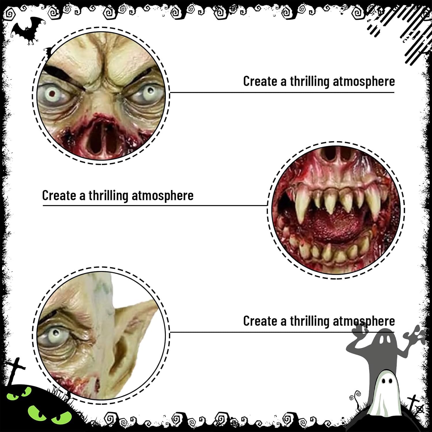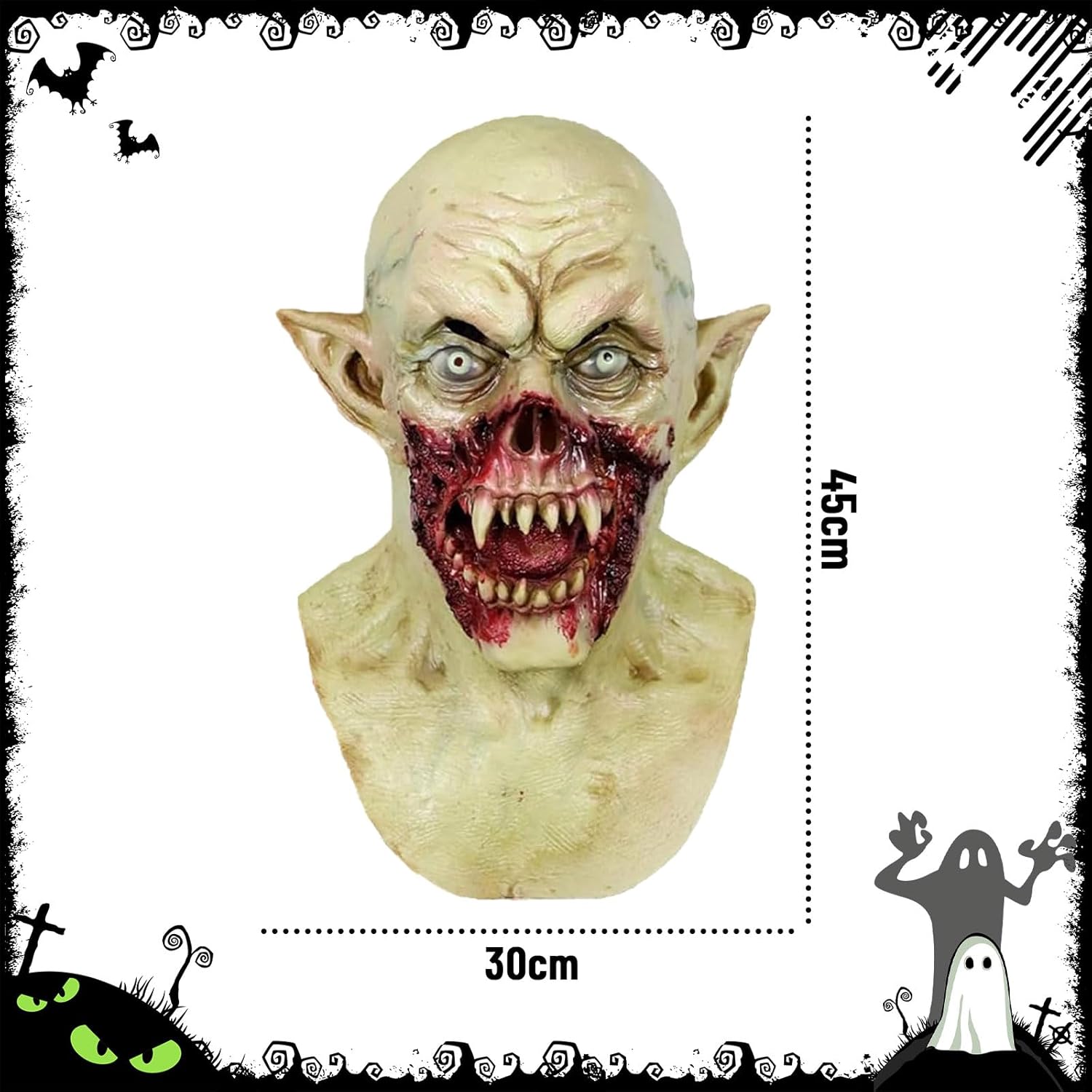 Descrizione del prodotto Nome del prodotto: KOMEIYL Maschera di Halloween da vampiro, Maschera di Halloween da vampiro horror realistico, Maschera spaventosa in lattice per adulti, Si applica a Halloween, Festival dei fantasmi e altre feste a tema Specifica: Materiale: Lattice Dimensioni: 36 x 20 x 48 cm Colore: Vedi illustrazione Peso: 360 g La confezione include: Maschera di Halloween da vampiro x 1 Avviso di sicurezza Non si applica alcun avviso