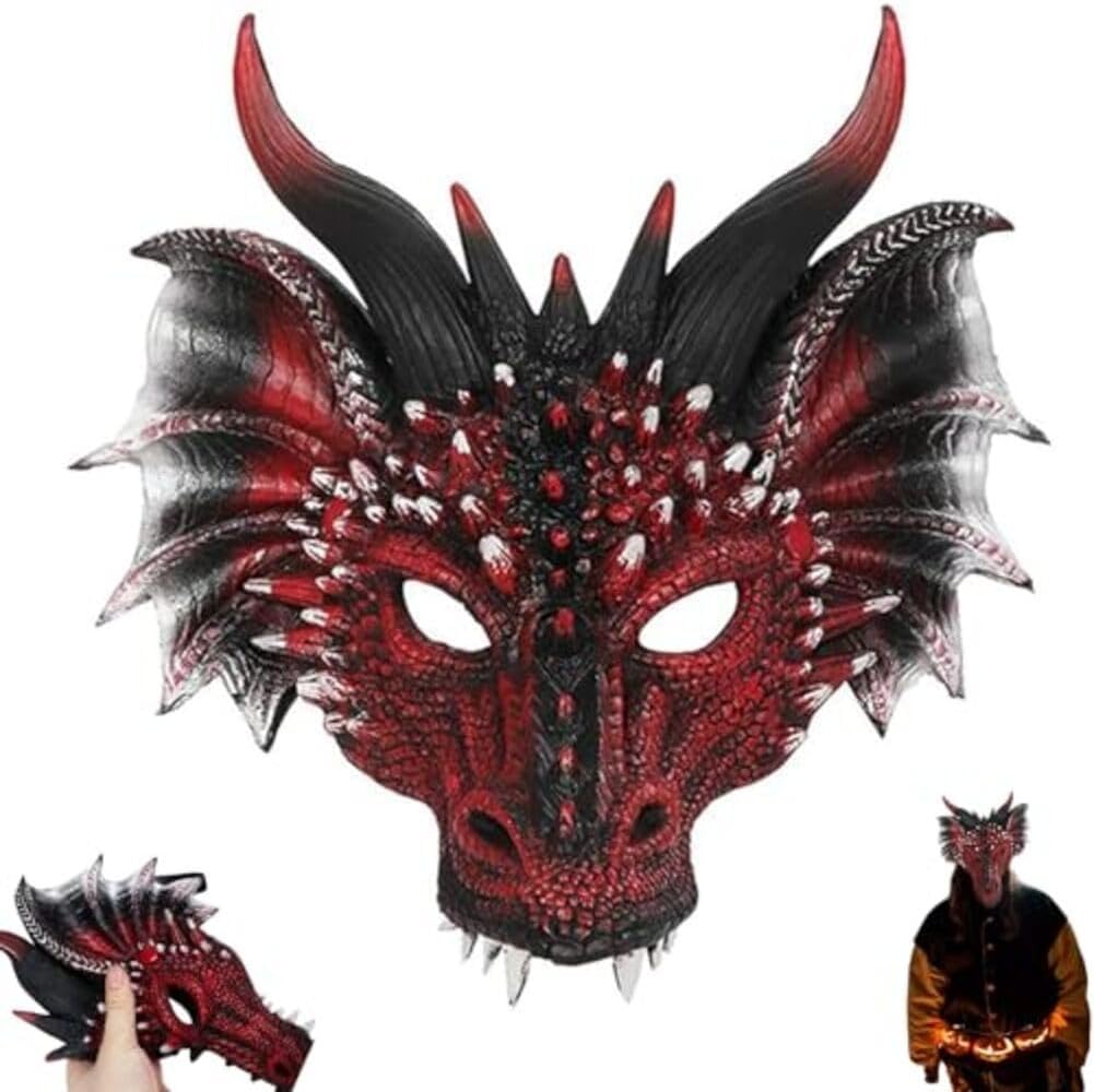 Maschera drago 3D con dettagli realistici e comodo cinturino elastico, adatta per bambini e adulti, per eventi in costume di Halloween