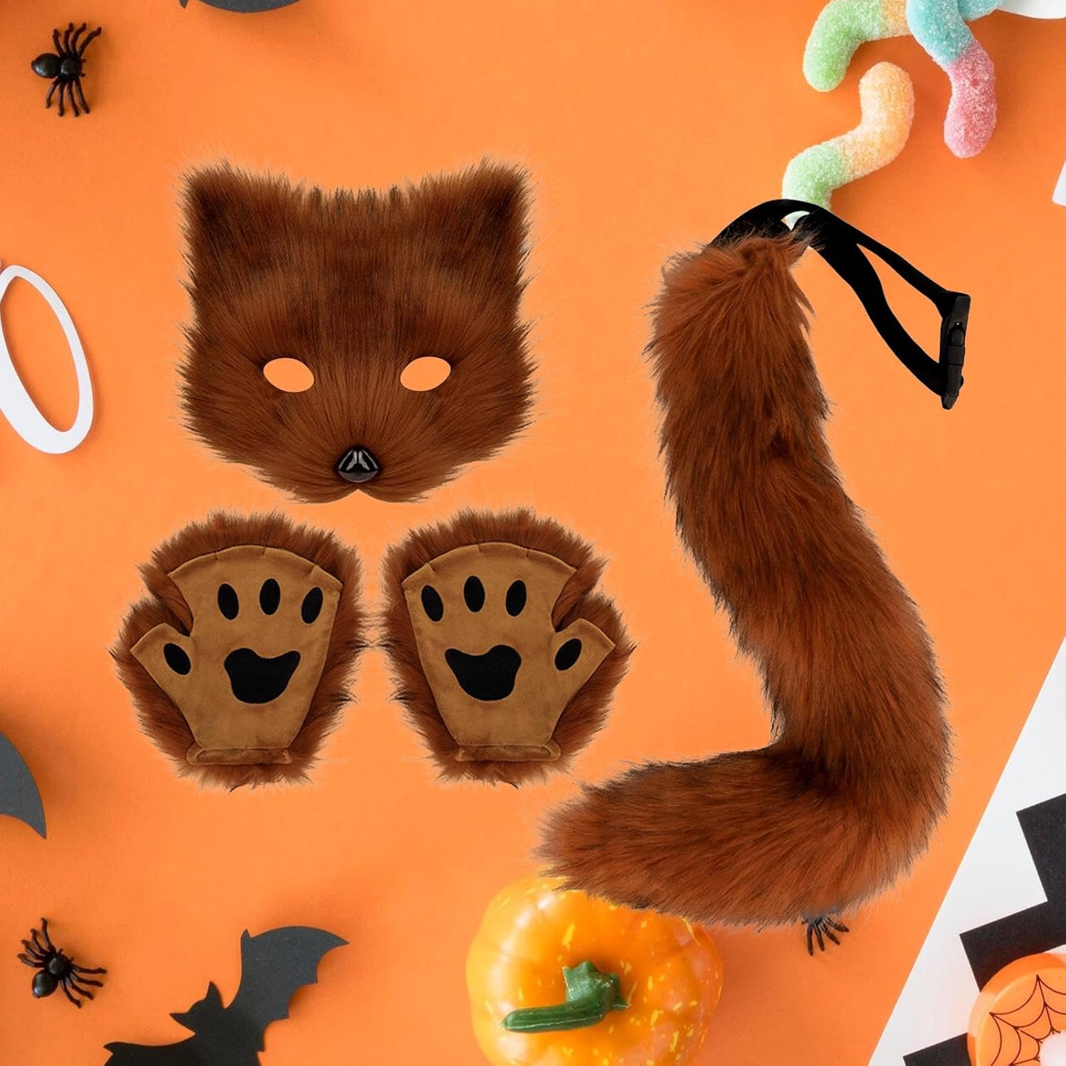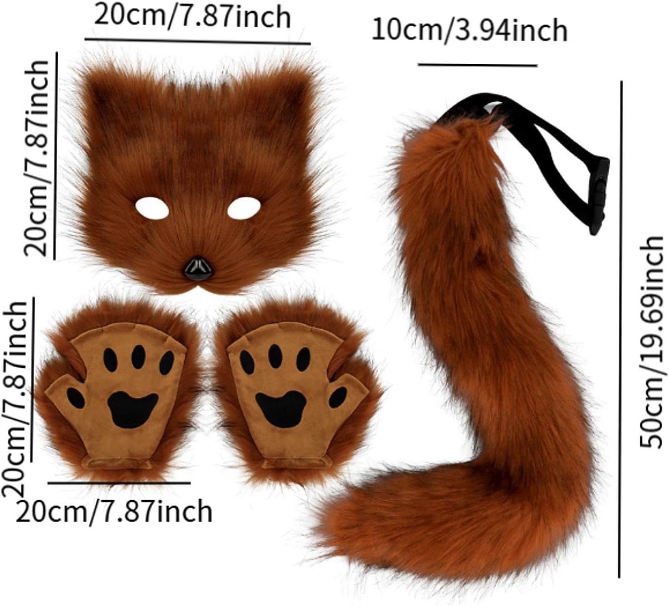【Ampia applicazione】: il set di vestiti da cosplay, ideale per feste a tema, feste in maschera, eventi di gioco di ruolo, feste in maschera, celebrazioni di Halloween ecc. 【Facile da indossare】: il costume a tema animale, adatto alla maggior parte delle taglie per adulti e bambini. La coda è dotata di fibbia a sgancio rapido che può essere legata intorno alla vita. 【Materiale】: il costume da cosplay è realizzato in materiale di peluche di alta qualità, finemente dettagliato per un tocco confortevole e una lunga durata. 【Costume da festa】: il set di costumi presenta un design di maschera alla moda e unico, adatto a ragazzi, ragazze, bambini e adulti. 【Set di gioco di ruolo】: questo set include 1 coda, 1 maschera e 1 paio di guanti. È elegante e unico, ideale per il gioco di ruolo di Halloween.