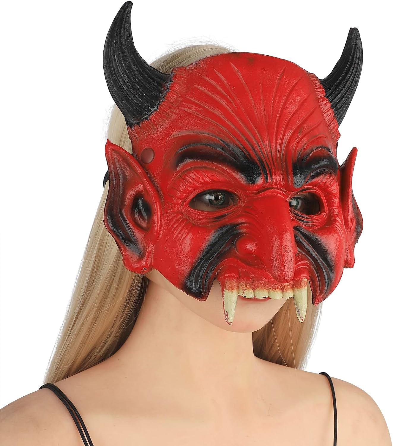 Informazioni sul prodotto: Materiale: PU. Colore: rosso, bianco. √ Dimensioni: 24 cm × 23 cm, 29 cm × 19 cm. √ Robusta e stabile: questa maschera ha una fascia elastica che è ben elastica, non troppo stretta, comoda da indossare e rimane stabile, quindi non è facile scivolare. √ Atmosfera festosa: questa maschera ha un effetto 3D impressionante, molto bello e realistico, aggiungendo più divertimento per te e i tuoi amici, creando un'atmosfera più festosa. Adatto per: Questa maschera è l'accessorio perfetto per il gioco di ruolo ed è ideale per Halloween, carnevale, Pasqua, giochi di ruolo, feste a tema, feste in maschera e molto altro ancora.