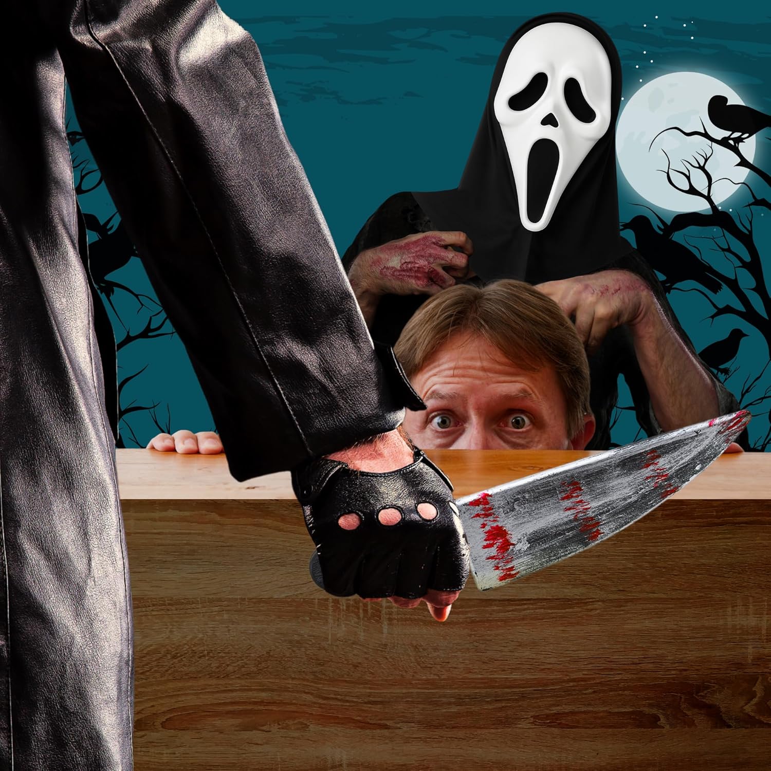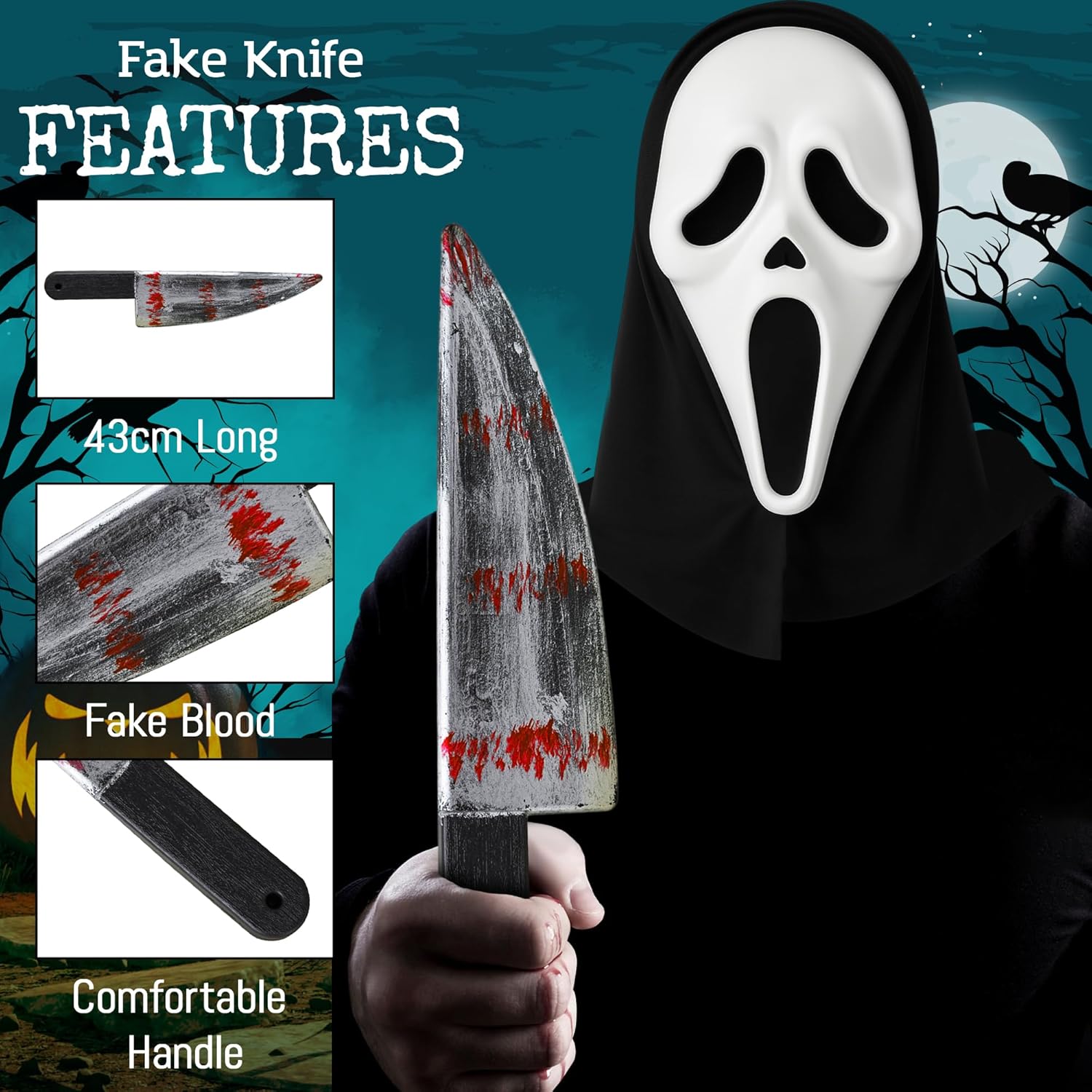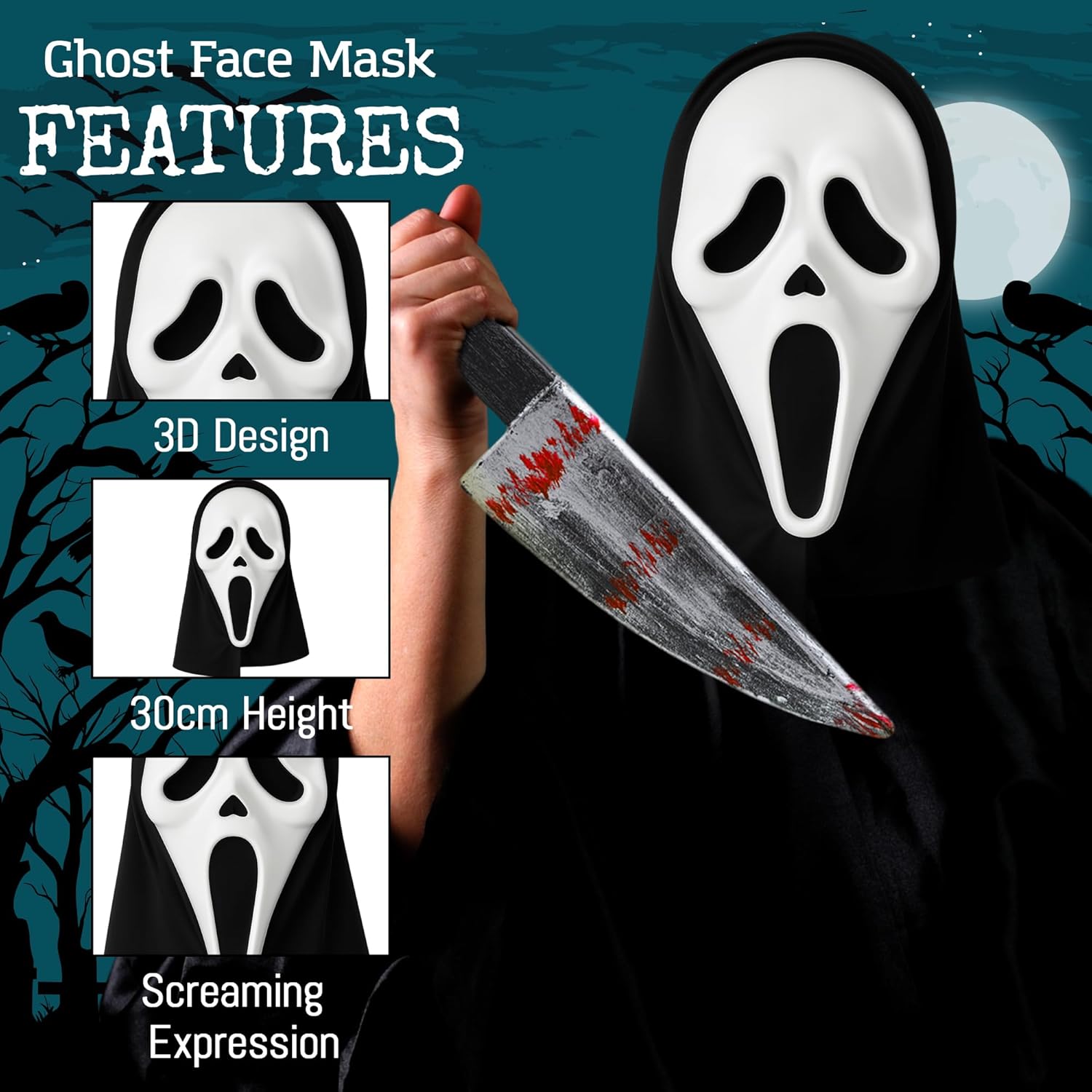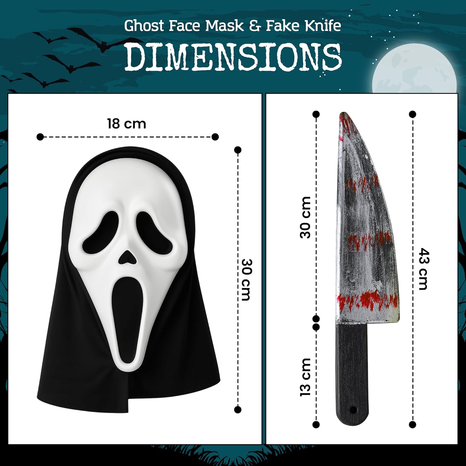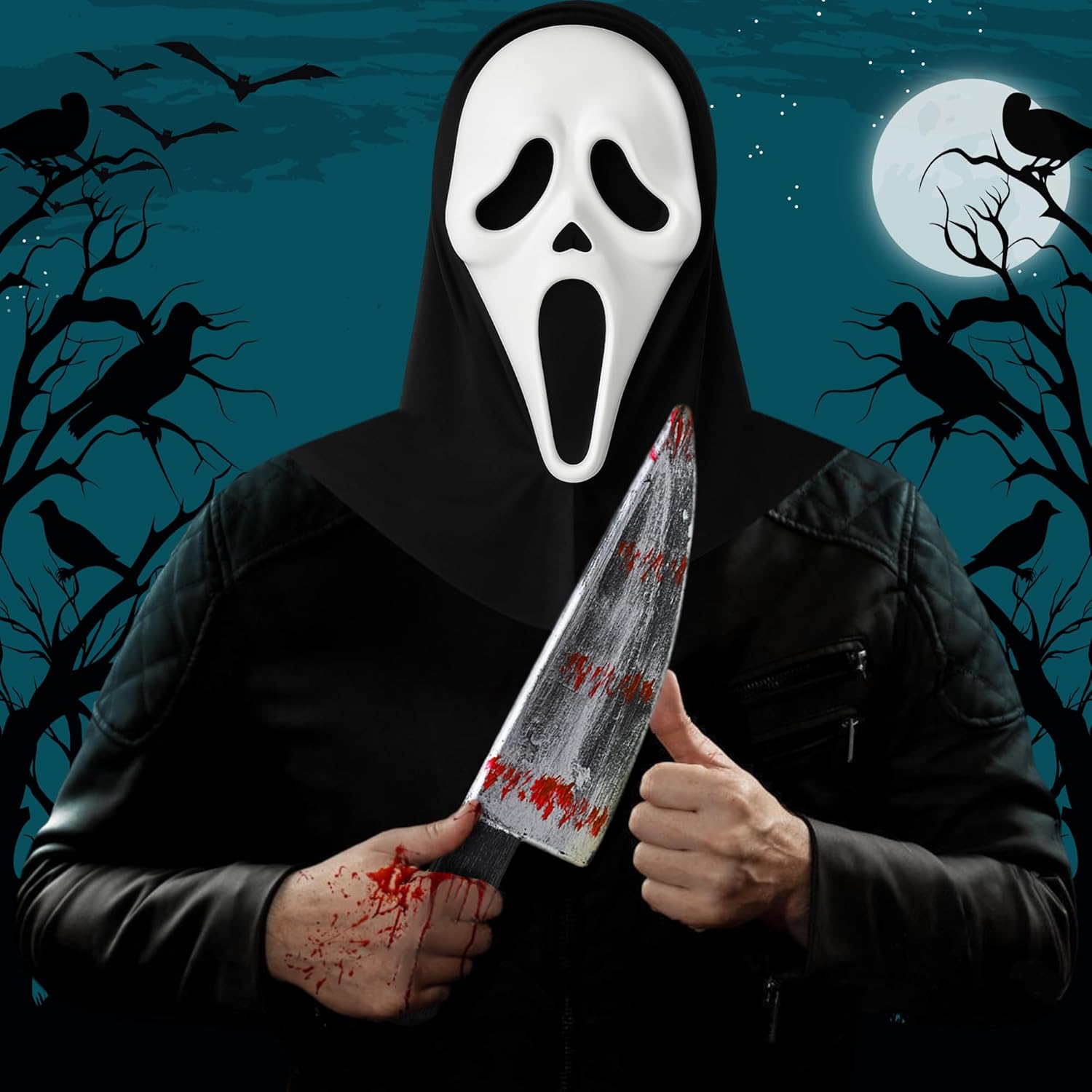 Descrizione prodotto Preparatevi a una notte da brivido con la nostra maschera integrale di Ghost Face per adulti, perfetta per Halloween! Questo set di 2 pezzi è ideale per tutte le età e garantisce di spaventare a morte gli ospiti della vostra festa di Halloween. Il set include una maschera horror di Halloween per adulti e un coltello insanguinato finto, un abbinamento perfetto per creare un costume da urlo. Il nostro costume da fantasma per adulti è composto da una maschera spaventosa e un coltello in plastica leggera, entrambi ispirati allo stile del fantasma urlante di Scream. Questo set sarà un successo in qualsiasi festa di Halloween! La maschera di Halloween è adatta sia per uomini che per donne, rendendola un'ottima scelta anche per costumi femminili. Inoltre, la maschera è perfetta anche per i bambini, rendendola un'aggiunta divertente ai costumi di Halloween per bambini.<><> Il coltello finto insanguinato, incluso nel set, è progettato per sembrare realistico e dare un tocco di orrore in più, pur rimanendo sicuro. È un ottimo coltello di scena per chi vuole completare il proprio costume di Halloween da uomo o da adulto con un dettaglio spaventoso ma sicuro.<><>Questo set è ideale per travestimenti come costume da mietitore, ministro della morte o fantasma delle tenebre, aggiungendo un tocco macabro e realistico al vostro look. Il set comprende una maschera da zombie per adulti e un coltello finto, ottimi anche per chi cerca costumi di Halloween economici senza rinunciare a fare paura.<><>Perfetto per adulti e bambini, questo set con coltello finto e maschera horror sarà un successo per creare un’atmosfera raccapricciante alla vostra festa di Halloween. Se cercate un look classico come il fantasma a bocca aperta o il fantasma oscuro, questa maschera di Halloween farà al caso vostro. Adatta per uomini di tutte le età, si combina alla perfezione con costumi di Halloween da uomo, donna o bambini.<><>Avvertenza di sicurezza: utilizzare sotto la supervisione di un adulto. Avviso di sicurezza Da utilizzare sotto la supervisione di un adulto