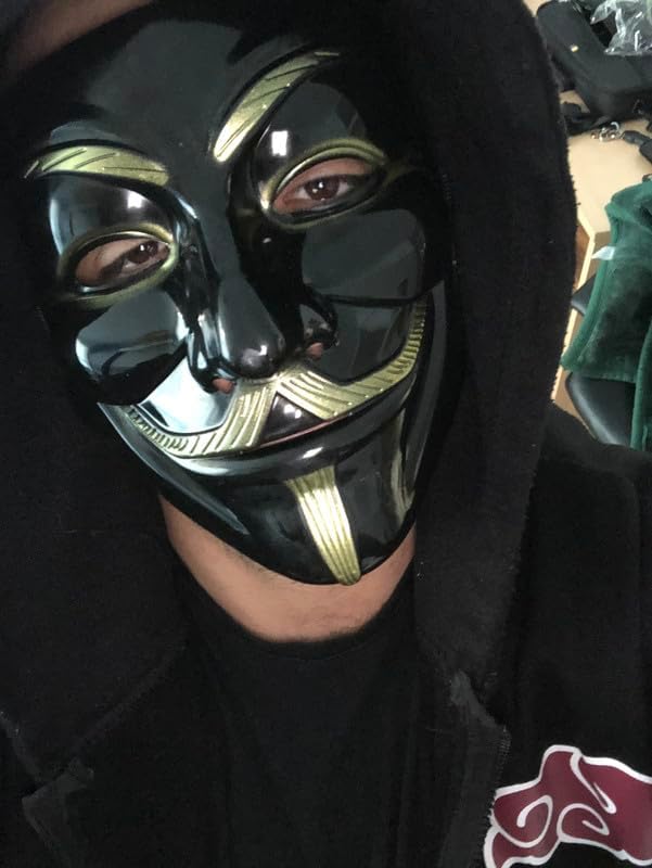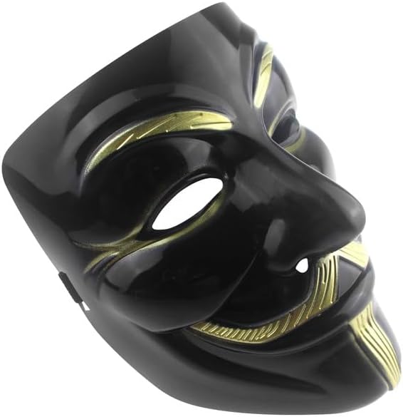 Maschera Hecker The V per bambini, adulti, Halloween e costumi cosplay Questa maschera è realizzata in materiale PVC spesso di alta qualità, robusto e durevole. Il bordo della maschera è liscio e comodo da indossare. La maschera ha una cinghia regolabile. Bambini e adulti possono regolare la maschera sulla testa e immaginare un'azione simile alla schiena. La maschera è progettata sulla base del film V per Vendetta. Puoi vestirti come un cavallo e stare sul lato opposto della scala. Materiale: PVC spesso. Condizione: 100% nuovo e di alta qualità. Dimensioni: 19 x 16 cm. Adatto a bambini e adulti.