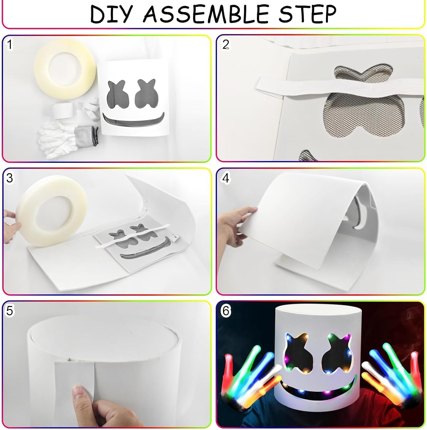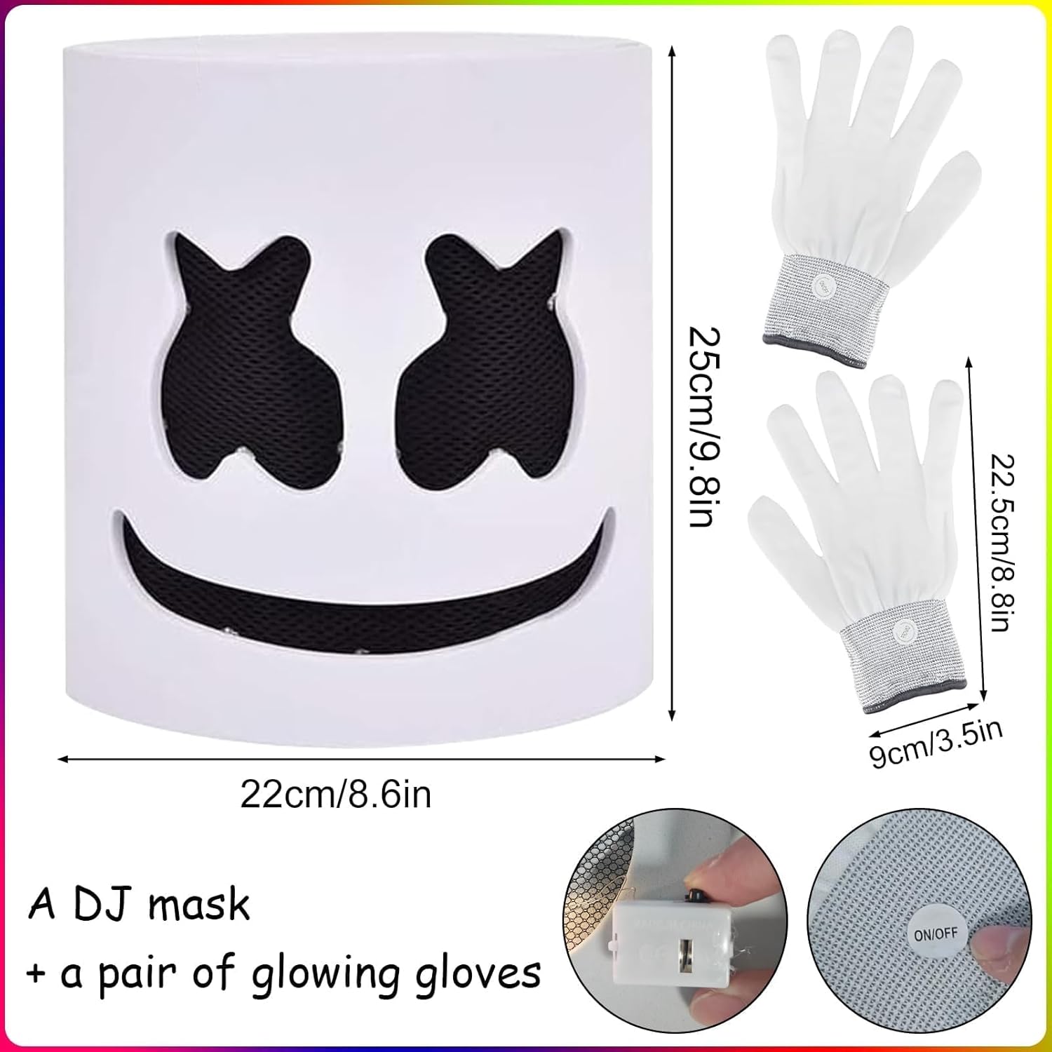 Descrizione prodotto Maschera da DJ a LED, in lattice, per Halloween, per adulti, LED, guanti luminosi in lattice, per donne, bambini, ragazzi, adolescenti, Halloween, cosplay, feste Avviso di sicurezza NO