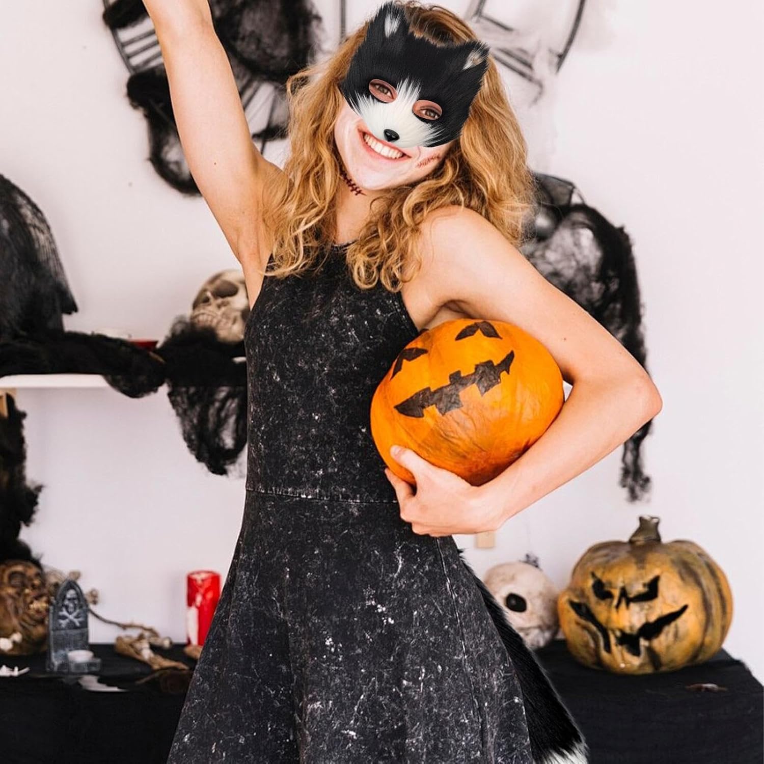 Descrizione prodotto Rimanete eleganti e sicuri con il nostro set di cover per il viso Foxes Realizzato per contenere e non facile da deformare. Il design regolabile garantisce una vestibilità perfetta, facile da indossare in qualsiasi evento. Versatile e divertente aggiunta a qualsiasi outfit! Specifiche: Materiale: molla simulata. Dimensioni del Copertura del viso: circa 19,5 x 19 cm. Lunghezza della coda: circa 40 cm. Contenuto della confezione: 1 copertura per il viso di volpe. 1 coda. 2 guanti Avviso di sicurezza Inapplicabile