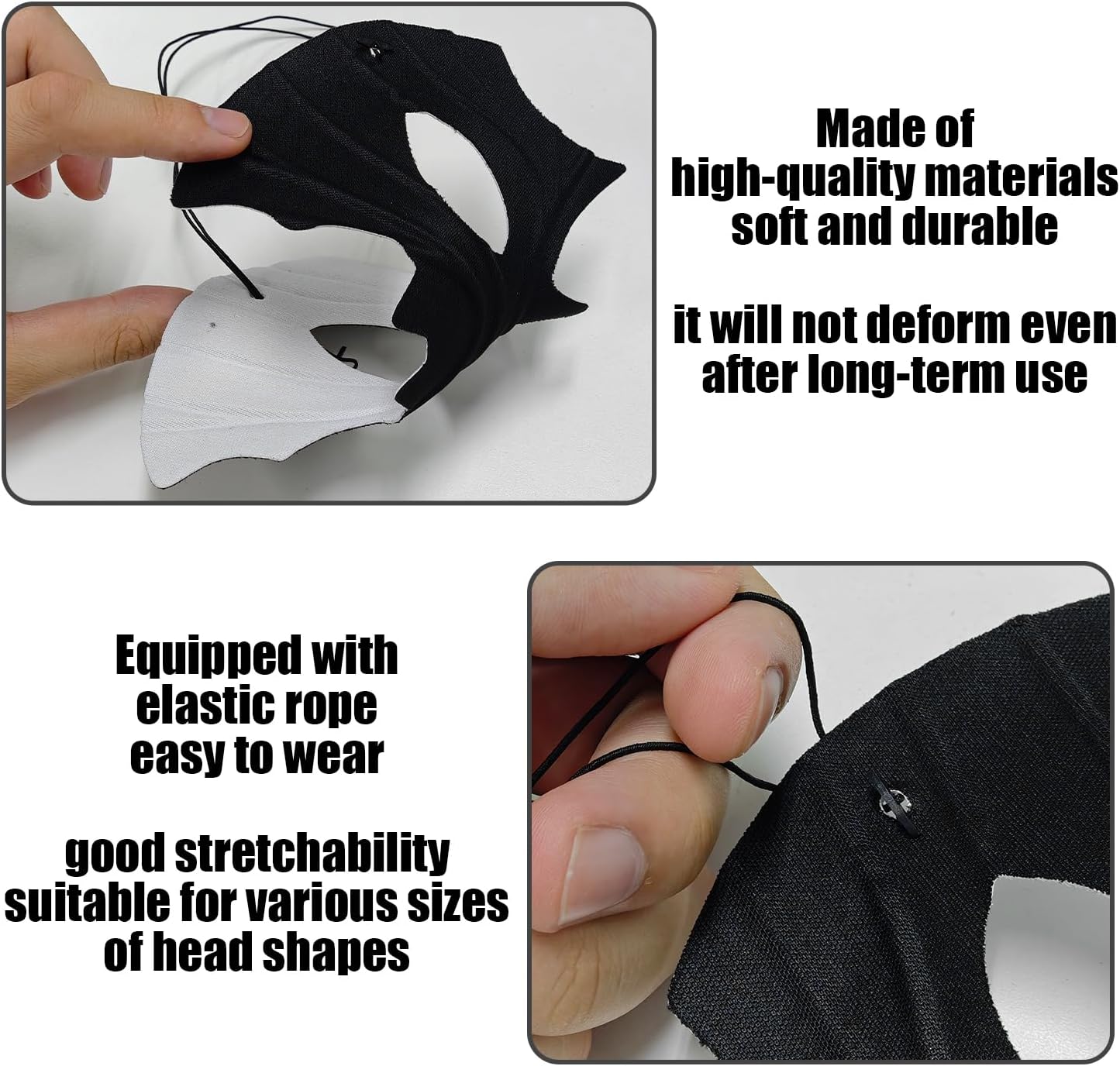 【Contenuto Del Prodotto】 Riceverai 1 Maschera Per Pipistrelli, 2 Forcine E 1 Collare In Pelle. La Maschera Di Pipistrello È Di Colore Di 18*9 Cm, Di Colore Nero; La Dimensione Della Forcella È Di Colore Di 6, 6 Cm, Di Colore Nero; La Dimensione Del Colletto Regolabile È Di Colore Di 41*2 Cm, Di Colore Nero, Adatto Per L'Uso Come Decorazione Per Mascherate E Gioco Di Ruolo. 【Materiale Del Prodotto】 La Maschera Di Questo Prodotto È Realizzata In Nylon, Le Forcine Sono Realizzate In Plastica E I Collari Sono Realizzati In Pelle, Garantendo La Loro Durata E Comfort. Il Nylon È Morbido E Traspirante, Comodo Da Indossare; Le Forcine Di Plastica Sono Leggere E Facili Da Indossare; I Collari In Pelle Sono Regolabili E Adatti A Tutte Le Dimensioni. 【Design Unico】 Questo Prodotto È Progettato In Modo Univoco E Ha Una Forma Unica Per Le Maschere Di Pipistrelli, Adatte Per Mascherate E Giocatori Di Ruolo. Il Design Nero È Classico E Misterioso, Con Forcine E Collari Che Aggiungono Divertimento E Personalità All'Aspetto Generale, Perfetto Per Tutti I Tipi Di Feste. 【Multiuso】 Questo Prodotto Non È Solo Adatto A Mascherate E Giochi Di Ruolo, Ma Anche Per Feste Di Halloween, Eventi Di Cosplay E Altre Feste A Tema. Il Design Unico E I Diversi Accessori Rendono Il Tuo Outfit Più Eccitante E Diventa Al Centro Della Festa. 【Facile Da Mantenere】 Questo Prodotto È Facile Da Pulire E Mantenere Dopo L'Uso, Le Maschere In Nylon E Le Fornelli In Plastica Sono Facili Da Pulire E I Collari In Pelle Richiedono Una Cura Regolare Per Mantenerli Morbidi E Lucenti. Si Prega Di Memorizzarlo Correttamente Dopo L'Uso Per Estendere La Sua Durata Di Servizio.