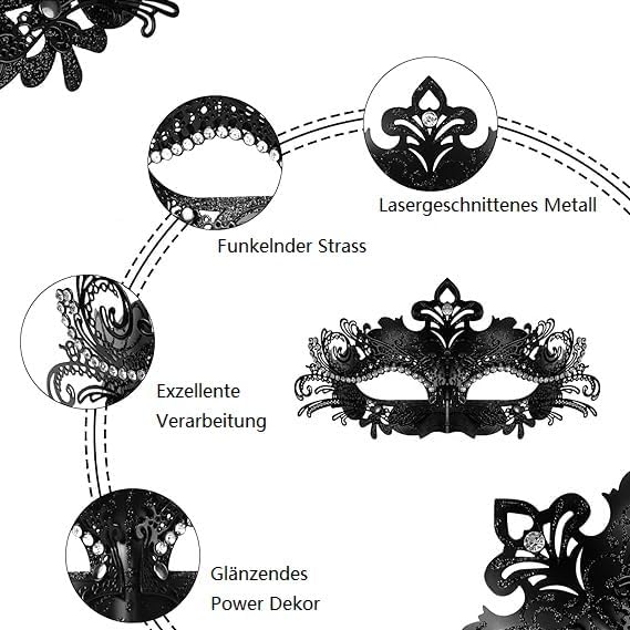 Descrizione prodotto Taglia unica. Questa maschera da ballo viene indossata con nastri di raso, quindi può essere facilmente adattata al viso. Design dalla linea aggraziata, assemblaggio manuale e bellissimo motivo dipinto a mano, ideale per il tuo abito da ballo in maschera. Maschera in maschera fatta a mano per un comfort tutto il giorno e la notte. Adatto per coppie o appuntamenti, feste di compleanno, carnevali, feste in maschera, carnevale, Halloween, sfilate di moda, temi nuziali, discoteche, cosplay, discoteche, cocktail party, ecc. Se stai pianificando un ballo o una festa in maschera, ordina una maschera in maschera. Specifiche: Qualità: 100% nuovo di zecca Materiale: ABS, metallo Colore: vedi foto. Dimensioni: 18 x 9 cm Contenuto della confezione: 1 maschera veneziana. Avviso di sicurezza n