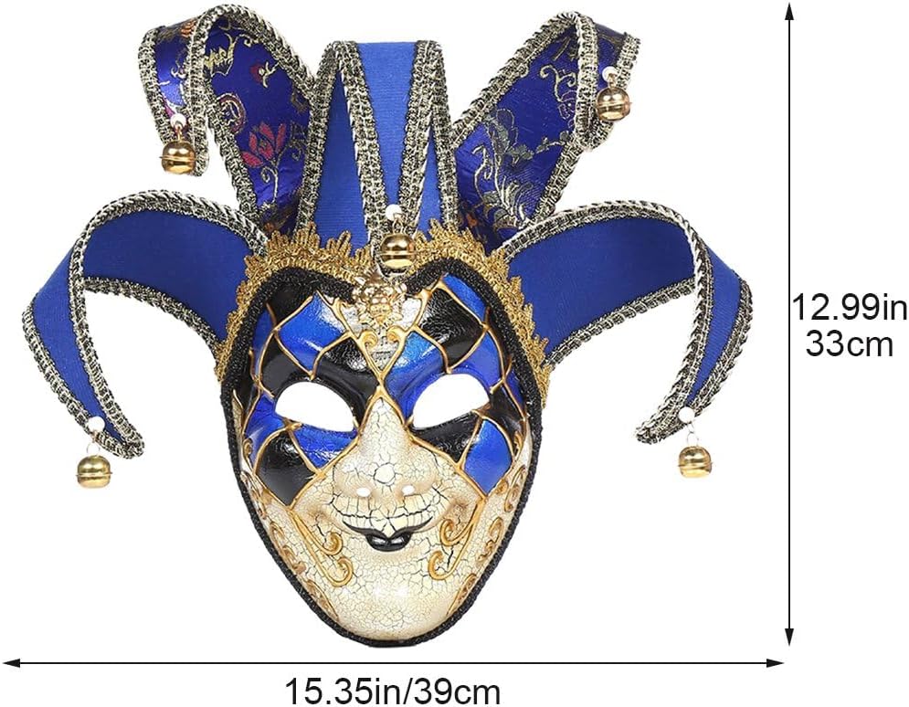 Questa bellissima maschera artistica può essere appesa alla decorazione della parete o indossata utilizzando un nastro attaccato su entrambi i lati del viso. Design caratteristico squisito - con colori e luminosità piacevoli. La maschera elegante e personale ti rende più attraente e glamour in una festa. Questa maschera veneziana può essere utilizzata per partecipare a tutti i tipi di feste, spettacoli, compleanni, Halloween, Natale o qualsiasi altra occasione festiva. Dimensioni: circa 16x44 cm/6,30x17,32, leggera e facile da indossare, la maschera da giullare è un regalo davvero sorprendente. La maschera veneziana Jester è realizzata con materiali plastici di alta qualità, sicuri e durevoli, puoi essere sollevato nell'usarla.