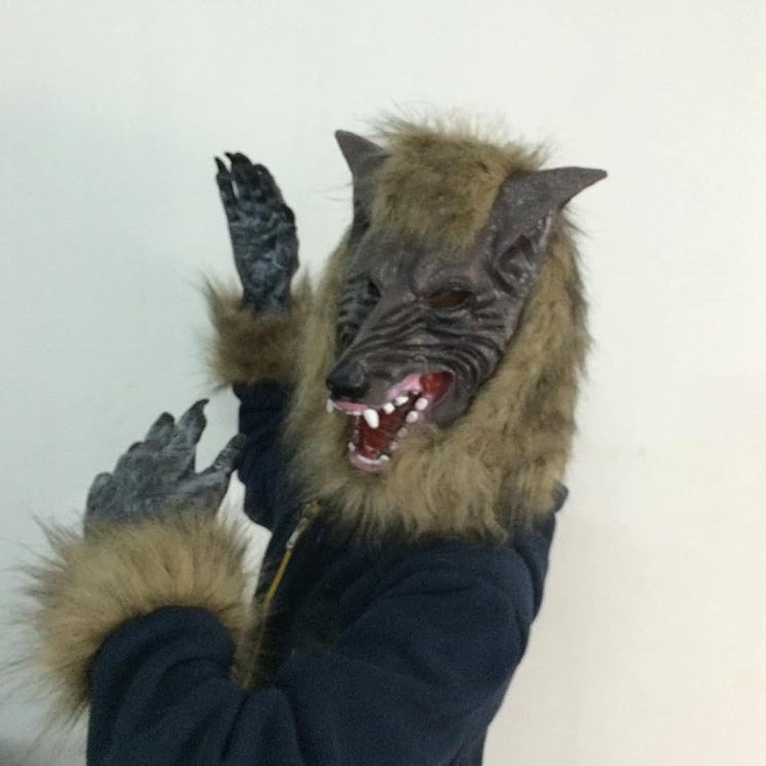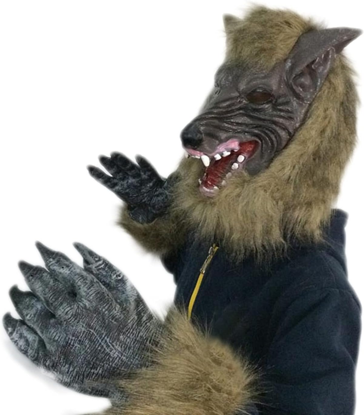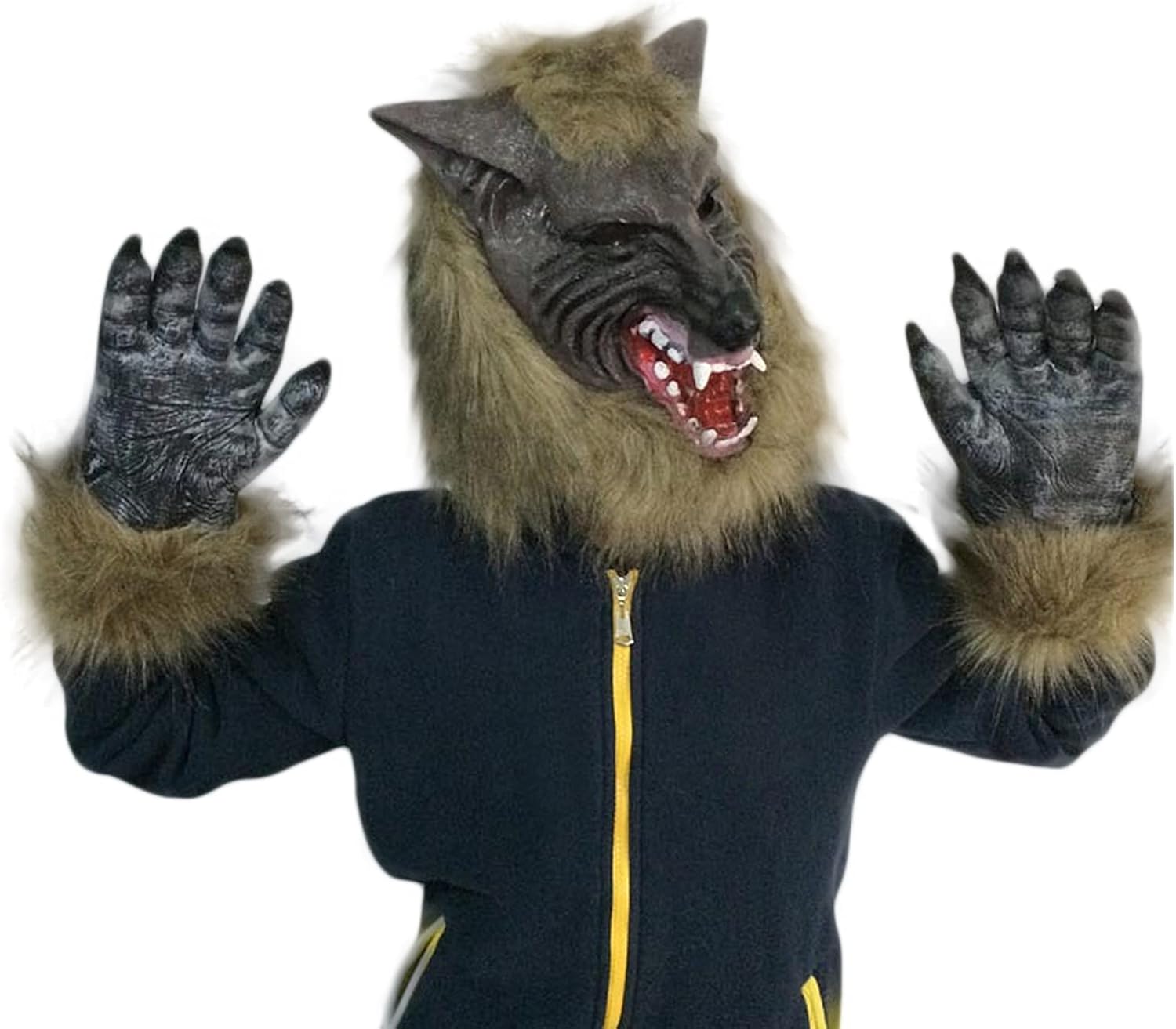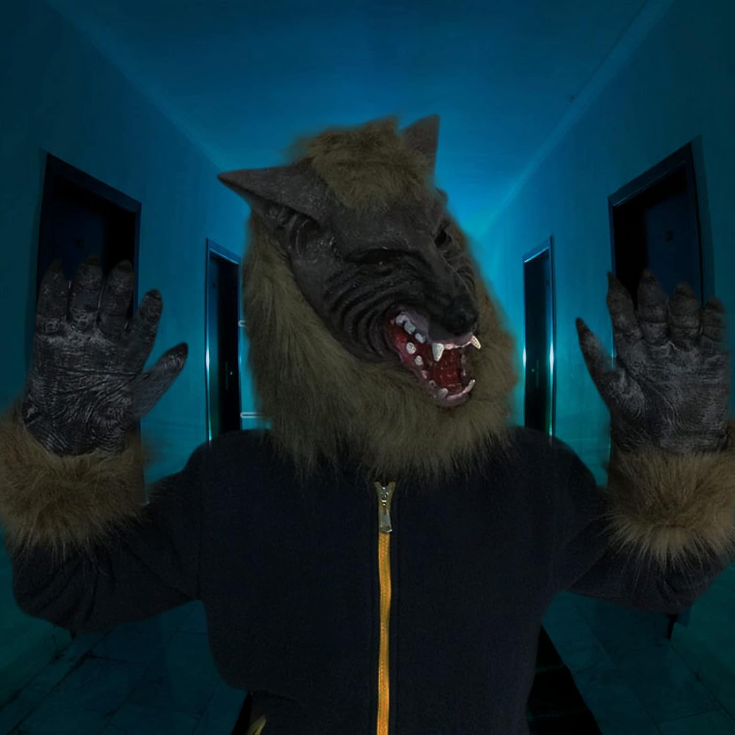 maschere di Halloween, cappucci puntelli testa di lupo divertente in maschera terrore diavolo in lattice per feste spaventose Decor guanti da lupo mannaro