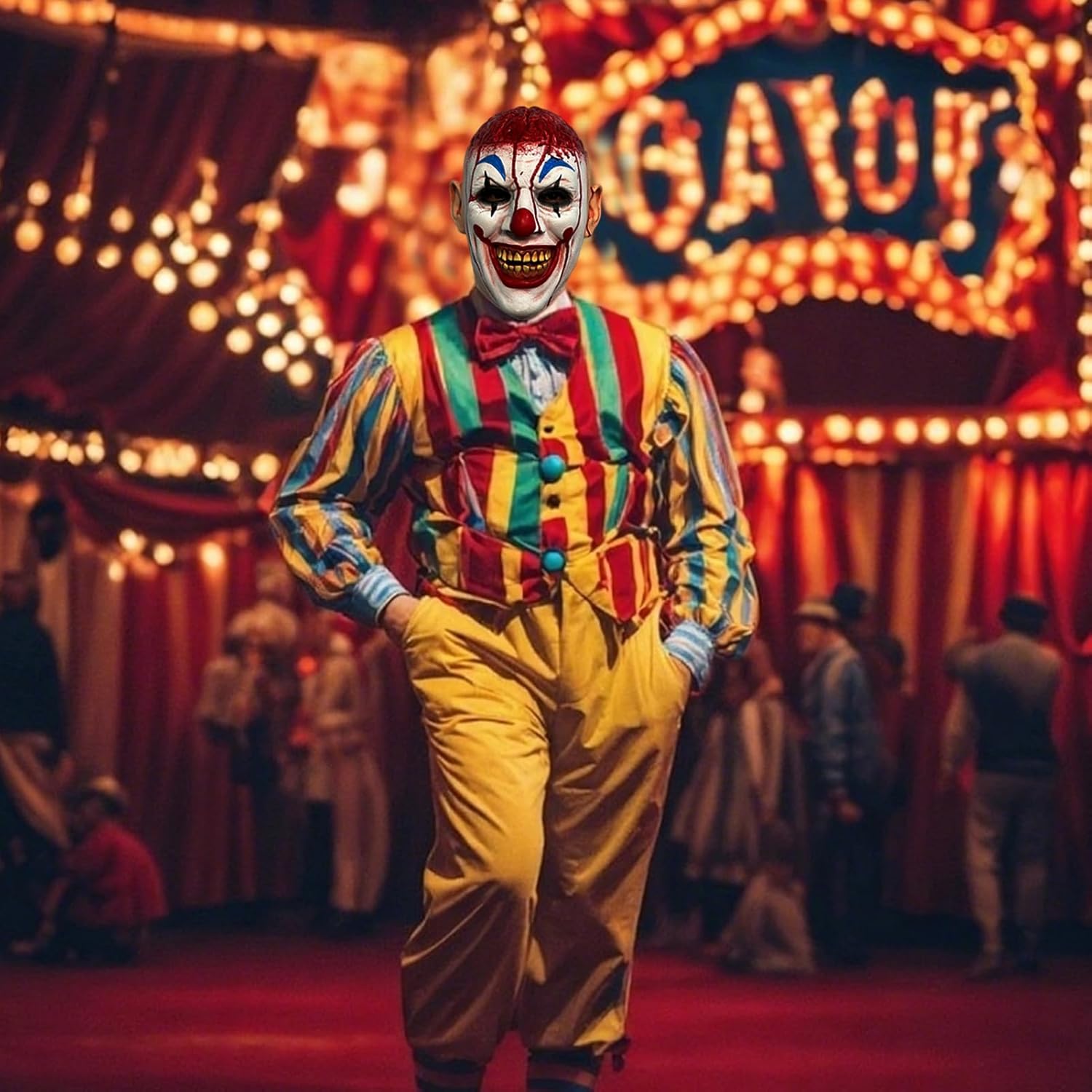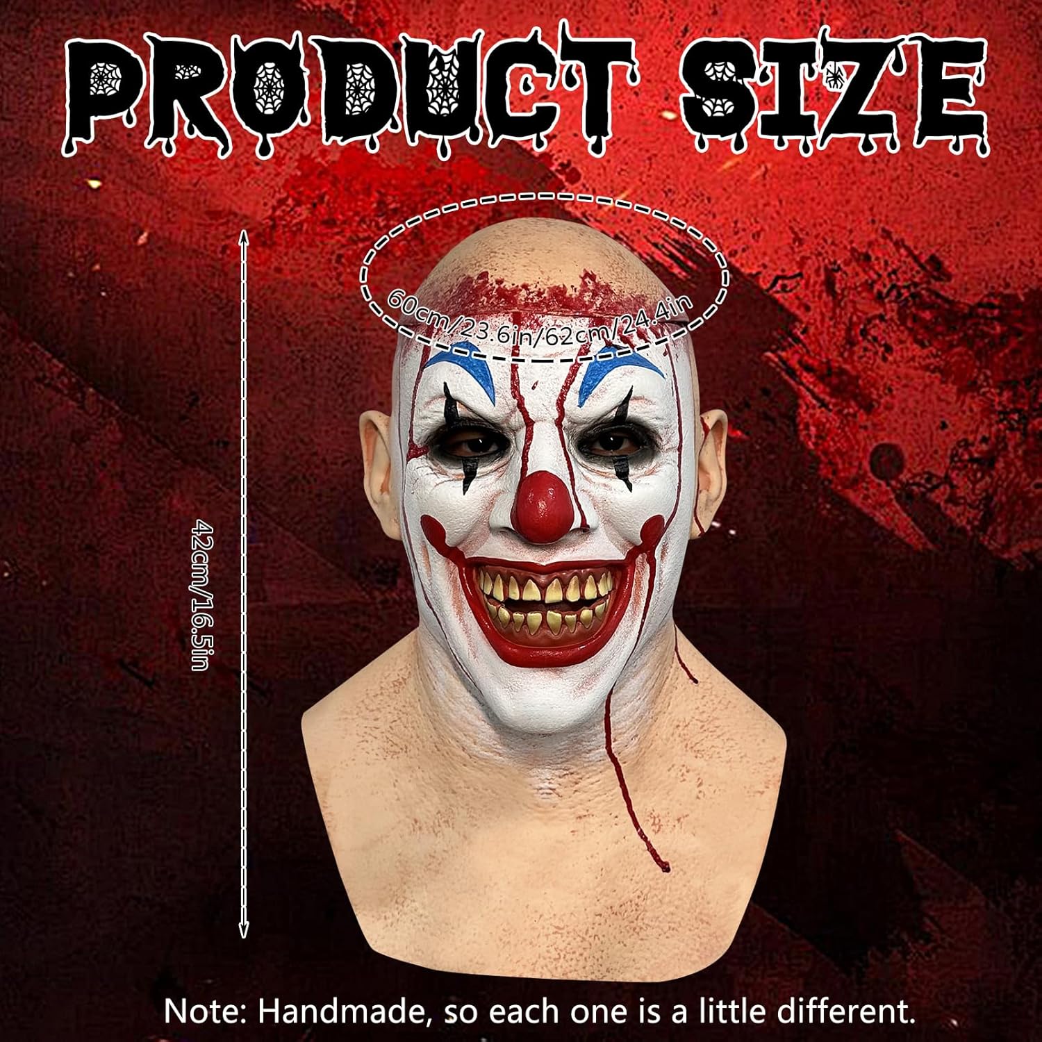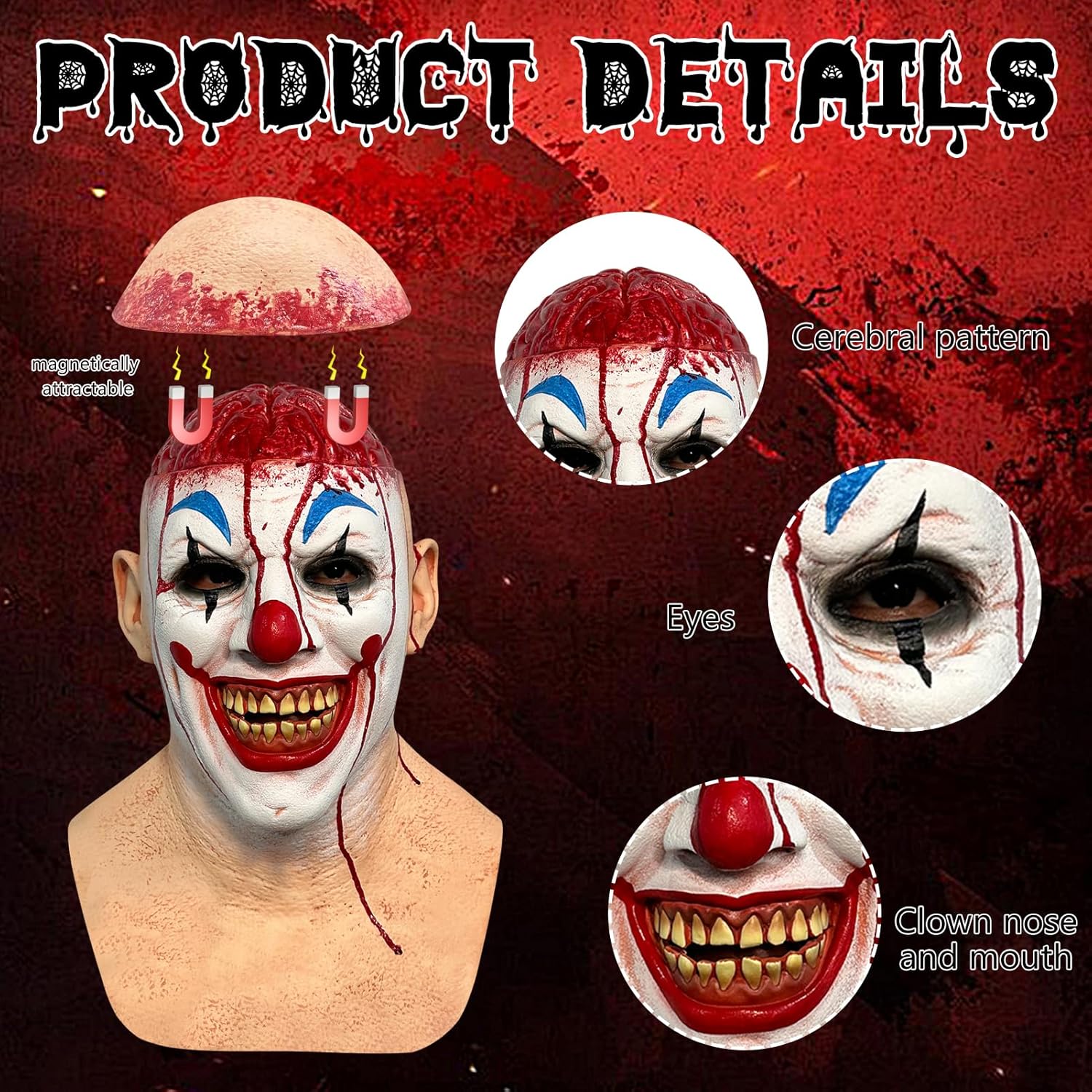 Descrizione prodotto Nome del prodotto: maschere horror, maschera da clown terrifier killer halloween joker maschera in lattice con cervello sanguinante, maschere art clown horror, maschera da clown spaventosa decorazione per costume di carnevale cosplay Stile: clown cerebrale sanguinante Materiale: lattice. Colore: come da immagine. Dimensioni: circonferenza testa 60-62 cm, altezza totale 42 cm. Peso: 360 g Caratteristiche: copertura del cuoio capelluto rimovibile. Contenuto della confezione: 1 maschera da clown di Halloween. Avviso di sicurezza /