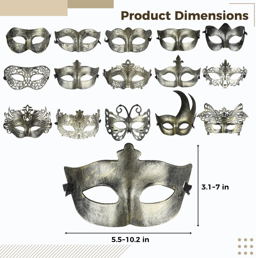 Fascino senza tempo: ispirato all'estetica vintage; include farfalle decorate e classici motivi traforati per un aspetto distintivo da festa Indossabilità regolabile: i nastri attaccati consentono di regolare la tenuta; progettato per ballare e socializzare Quindici look unici: trenta maschere suddivise in quindici disegni artistici; consente a tutti alla tua festa di scegliere il proprio preferito Facile da indossare: le maschere di plastica sono lisce, leggere e resistenti alle screpolature; progettate per un uso prolungato senza disagio Ideale per qualsiasi uso festivo: abbastanza versatile per giochi di ruolo, sfilate, serate a tema ed eventi di vestimento; aggiunge dramma ed eleganza