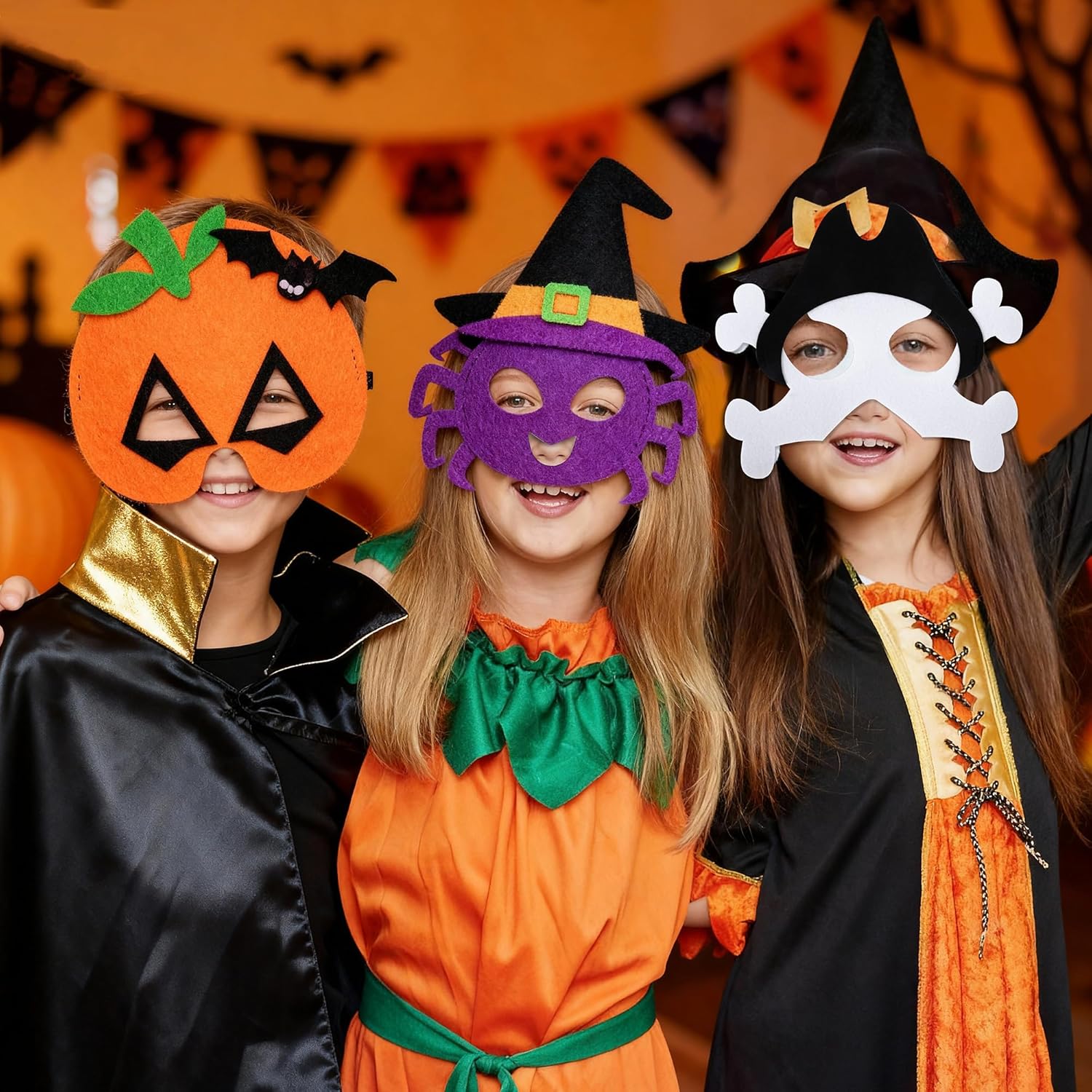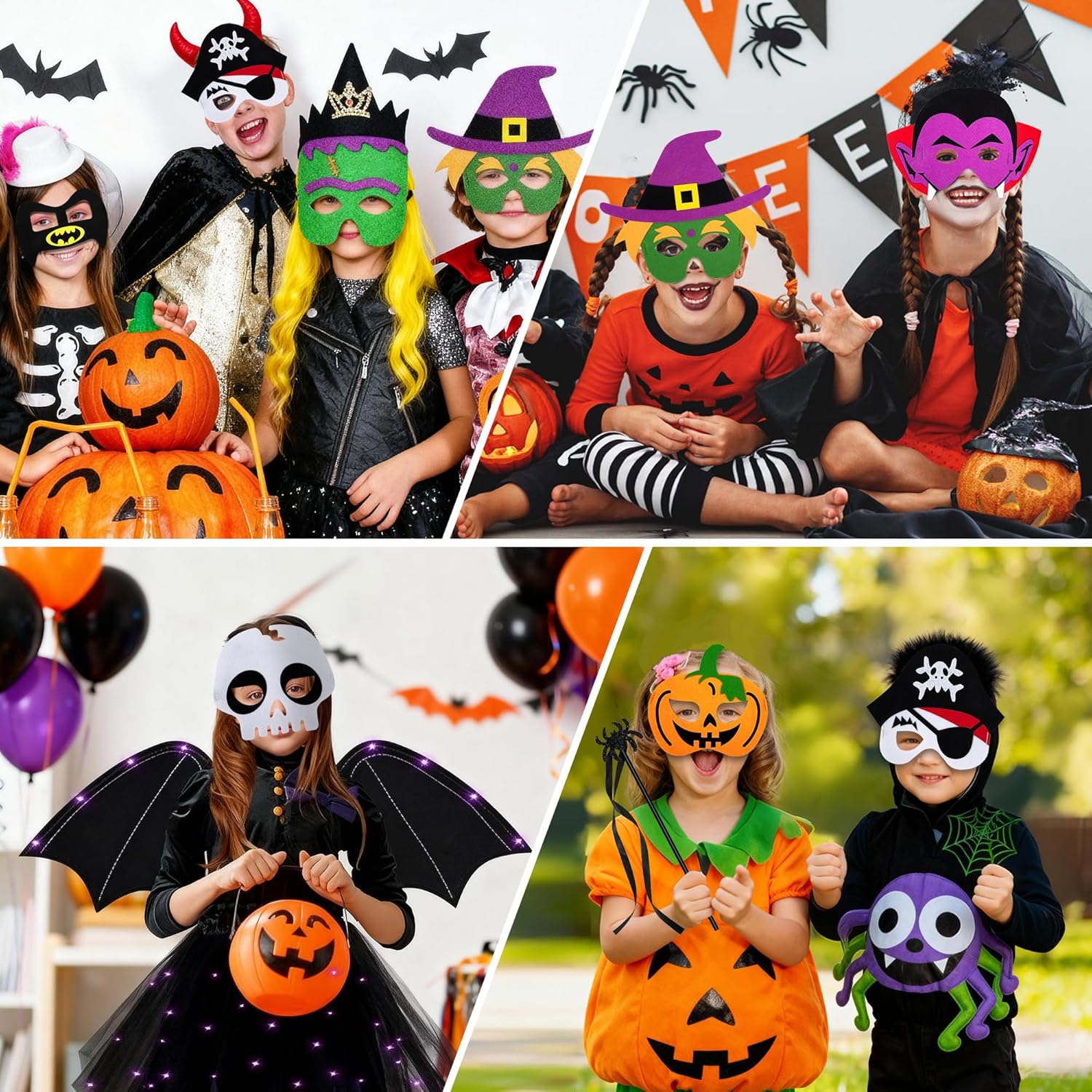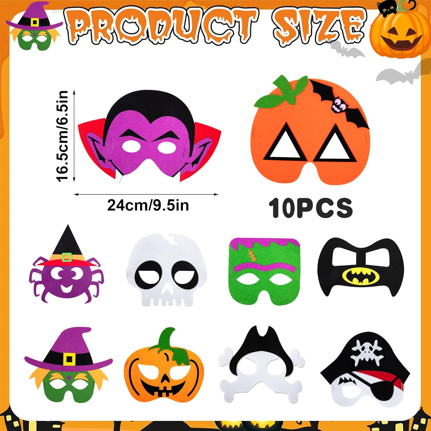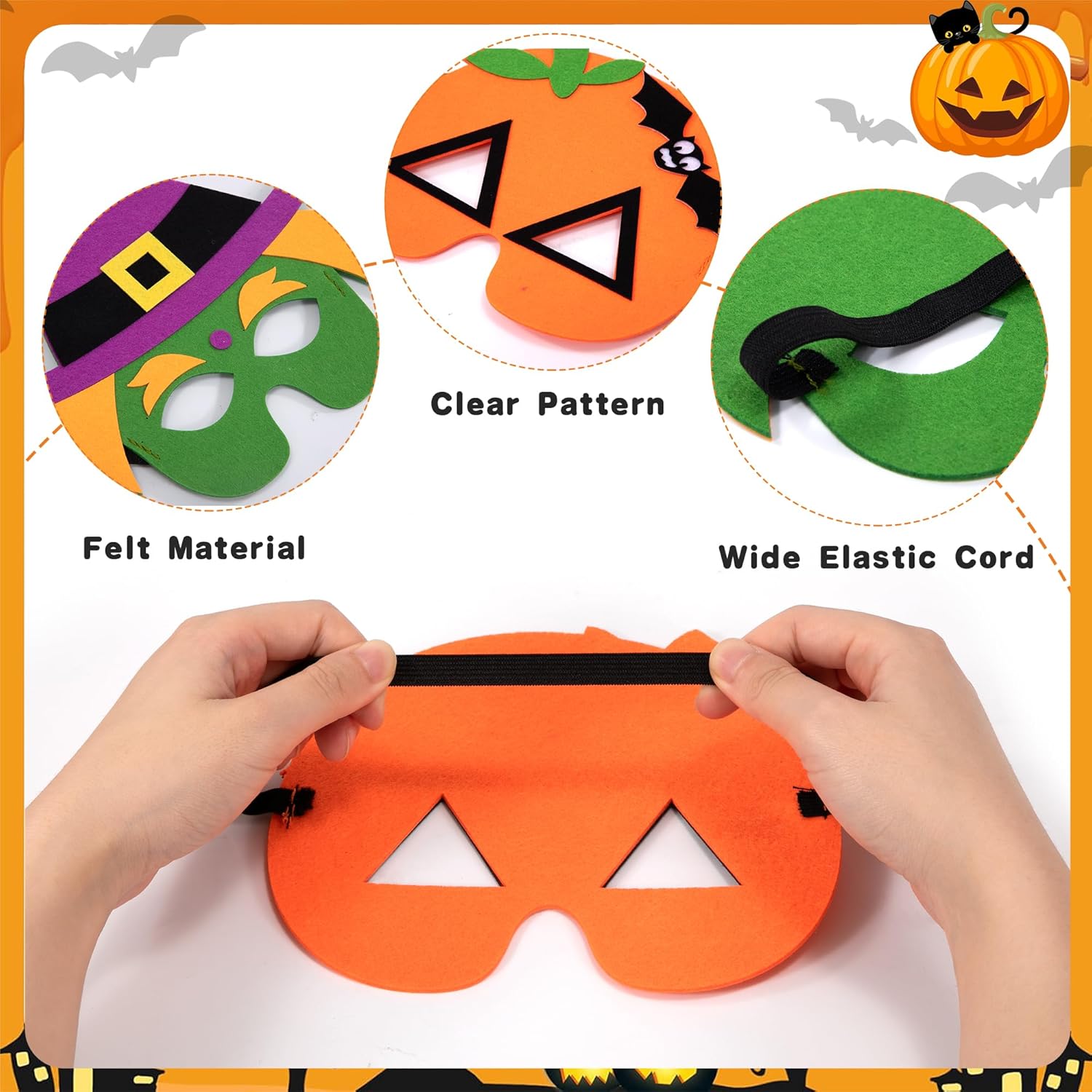 Descrizione prodotto Caratteristica: Set di 10 maschere di feltro per bambini per Halloween: si trasformano facilmente in classici personaggi di Halloween come zucche, ragni, vampiri e scheletri, perfetti per i giochi di ruolo durante le feste. Alta qualità: realizzate in feltro di alta qualità con cuciture meticolose, garantiscono sicurezza e comfort per un utilizzo senza preoccupazioni. Vestibilità sicura: dotate di una fascia elastica regolabile per una vestibilità aderente e antiscivolo, mantengono il comfort durante il gioco prolungato. Visione chiara: le aperture per gli occhi di dimensioni generose preservano il campo visivo dei bambini, consentendo loro di osservare facilmente l'ambiente circostante e migliorando al contempo l'atmosfera coinvolgente dei loro costumi di Halloween. Specifiche: Materiale: feltro Design: Halloween Dimensioni: 24 × 16,5 cm Quantità: 10 pezzi Servizio soddisfacente: 1. A causa della differenza tra luce e schermo, il colore dell'articolo potrebbe essere leggermente diverso dall'immagine. 2. La vostra soddisfazione è la nostra massima priorità. Se avete domande, non esitate a contattarci, e vi forniremo la soluzione più soddisfacente. Avviso di sicurezza Adatto a bambini dai 3 anni in su.