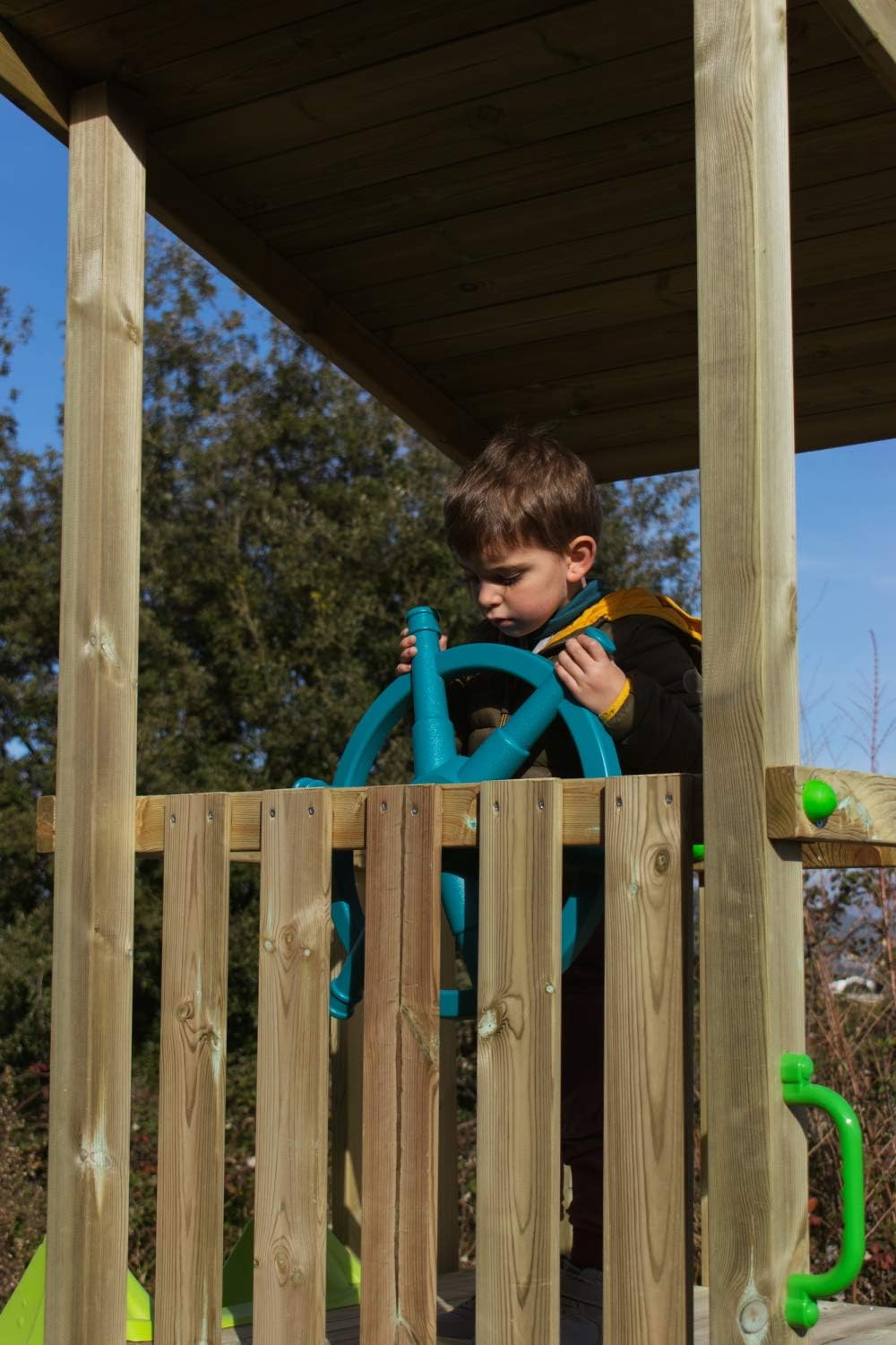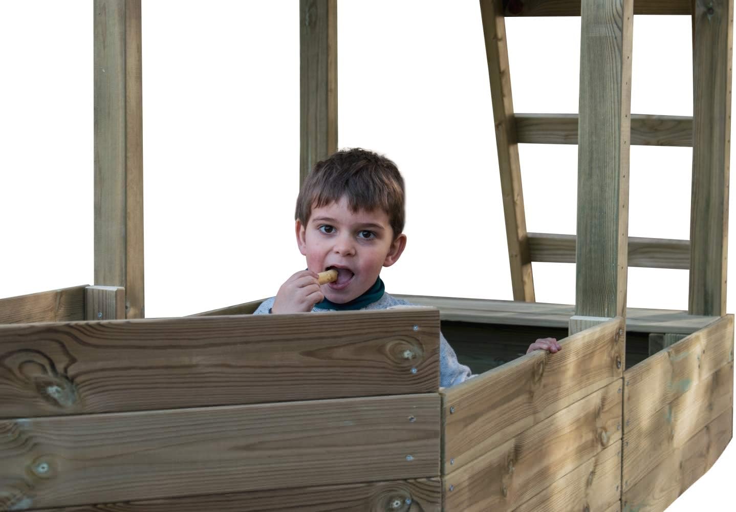 Il box per bambini Nautilus della Masgames è una torre quadrata in legno solida e molto carina per il vostro giardino. La sua struttura ospita nella parte inferiore una grande sabbiera a forma di barca, che, oltre ad essere un'area giochi per i più piccoli, dona molta robustezza e stabilità alla torre. Sulla parte di poppa della lettiga c'è una panca per sedersi. ▼ L'accesso al Masgames Nautilus Park avviene tramite una scala in legno fino al livello superiore ad un'altezza di 120 cm. La piattaforma, a questa altezza, è protetta lateralmente dalla rampa in legno, che la rende molto protetta. Sono presenti solo le aperture per l'accesso alla scala e l'uscita dallo scivolo. La rampa scorrevole porterà i bambini al piano terra e l'avventura ricomincerà. ⚓ Sulla piattaforma che funge da ponte di comando della barca, è incluso un timone per far sì che i bambini possano giocare a guidare una barca in mare. È un box per bambini molto marino, ideale per far giocare i bambini navigando negli oceani. Il box per bambini Masgames Nautilus a forma di barca ha le seguenti dimensioni: 2,75 m (lunghezza x 2,70 m (larghezza con rampa scorrevole) x 2,75 m (altezza). L'altezza della piattaforma è di 1,20 m. La rampa di scivolo è lunga 2,32 m. I montanti principali che sostengono la struttura hanno dimensioni di 68 x 68 mm con un'altezza di 240 cm. È necessario lasciare 2 metri attorno alla sicurezza. zone 💖 In questa versione puoi aggiungere un'altalena, oltre agli accessori venduti separatamente come il campanello, il binocolo o la bandiera dei pirati.