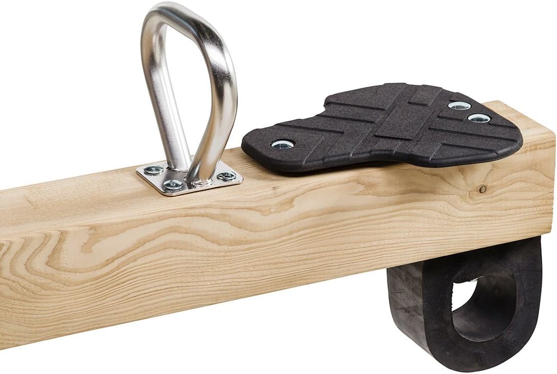 L'amaca Kamba è realizzata in legno quadrato di alta qualità, con maniglie di presa in acciaio inossidabile, sedili in gomma EPDM iniettata, due ammortizzatori in gomma SBR, cerniera e viti in acciaio zincato. Dimensioni dell'amaca alta Kamba MASGAMES Lunghezza: 2,5 m x 0,45 m x 0,40 m Larghezza sedile altalena con dimensioni di 29 x 23,5 cm Dimensioni della zona di sicurezza: 5,00 m x 2,50 m Altalena omologata (en-1176/77) per uso pubblico e quindi adatta a scuole, alberghi, campeggi, comunità di proprietari e ayuntamientos. Età consigliata dai 3 anni