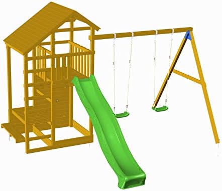 Il parco giochi della marca TEIDE MASGAMES è una torre quadrata in legno solido e resistente per far giocare i bambini. Il parco giochi del Teide è costituito da una casa sull'albero, alla quale si accede salendo una scala e scendendo tramite la rampa scivolo. Alla base è incorporata una cava di sabbia riempibile, ha anche una parete da arrampicata e un tavolo da picnic. Il parco comprende: - Struttura in legno - Altalena con 2 sedili in plastica - Rampa scorrevole in plastica HPDE verde - Parete da arrampicata con rocce da arrampicata - Sabbiera alla base (senza sabbia) - Tavolo da picnic - Ancoraggi per proteggere il pavimento da terra o erba - Tappi in pino, maniglie e istruzioni di montaggio Dimensioni: 3,05 m di altezza x 1,80 m di larghezza x 3,57 m. Altezza della piattaforma di 1,50 m. La rampa scorrevole è di 3 m. lungo Disponiamo di diversi accessori acquistabili separatamente per allungare e rendere più divertente la cavalcata: altalena doppia, ponte di corda, piccola rampa scivolo, telescopio, periscopio, volante, capottina, ecc...