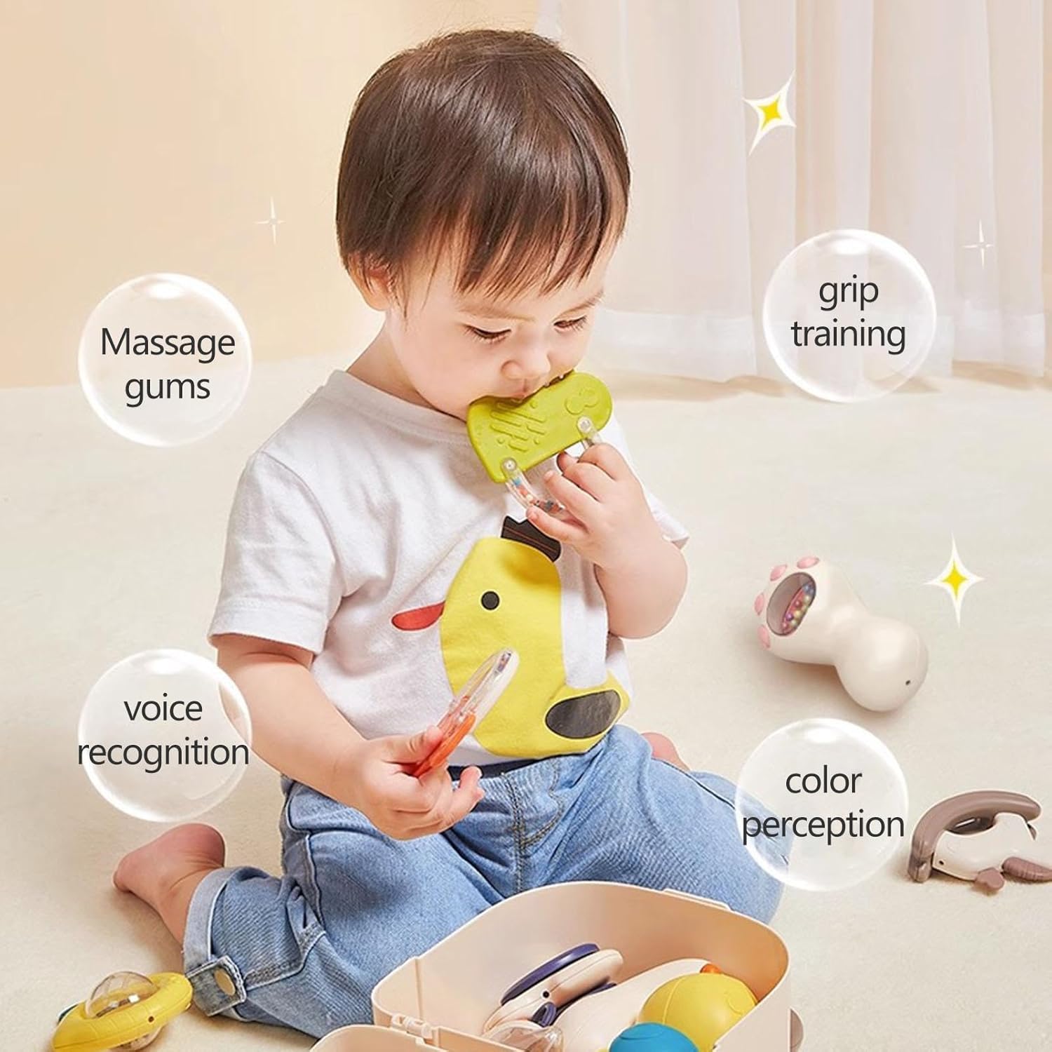 ✺Materiale di alta qualità: incoraggia lo sviluppo sano dei denti con nostro giocattolo per massaggiagengive a sonaglino. Grazie al suo materiale morbido ed elastico, questo massaggiagengive flessibile allevia efficacemente disagio della dentizione, pur essendo sicuro e innocuo da masticare per tuo bambino. ✺Promozione della coordinazione occhio-mano: questo giocattolo per massaggiagengive è progettato con varie forme e colori di sonagli per attirare l'attenzione dei bambini ed esercitare la coordinazione occhio-mano e i movimenti fini della mano calmando disagio della dentizione. ✺Sicurezza senza compromessi: con una connessione robusta e durevole, il sonaglio da dentizione garantisce la sicurezza del tuo bambino. materiale di alta qualità utilizzato nella sua costruzione è privo di bave e inodore, offrendo un'esperienza di dentizione sicura e confortevole. ✺Avventura uditiva: quando il sonaglio massaggiagengive viene leggermente scosso, produce un suono delizioso che migliora l'intrattenimento del tuo bambino, attivando anche suo uditivo per promuovere l'apprendimento e sviluppare capacità cognitive. ✺Regalo perfetto: regala ai tuoi cari il nostro sonaglio da dentizione, un regalo pratico e facile da pulire per i genitori di . suo design resistente alle alte temperature e suo bellissimo design lo rendono una scelta eccellente per ogni occasione.