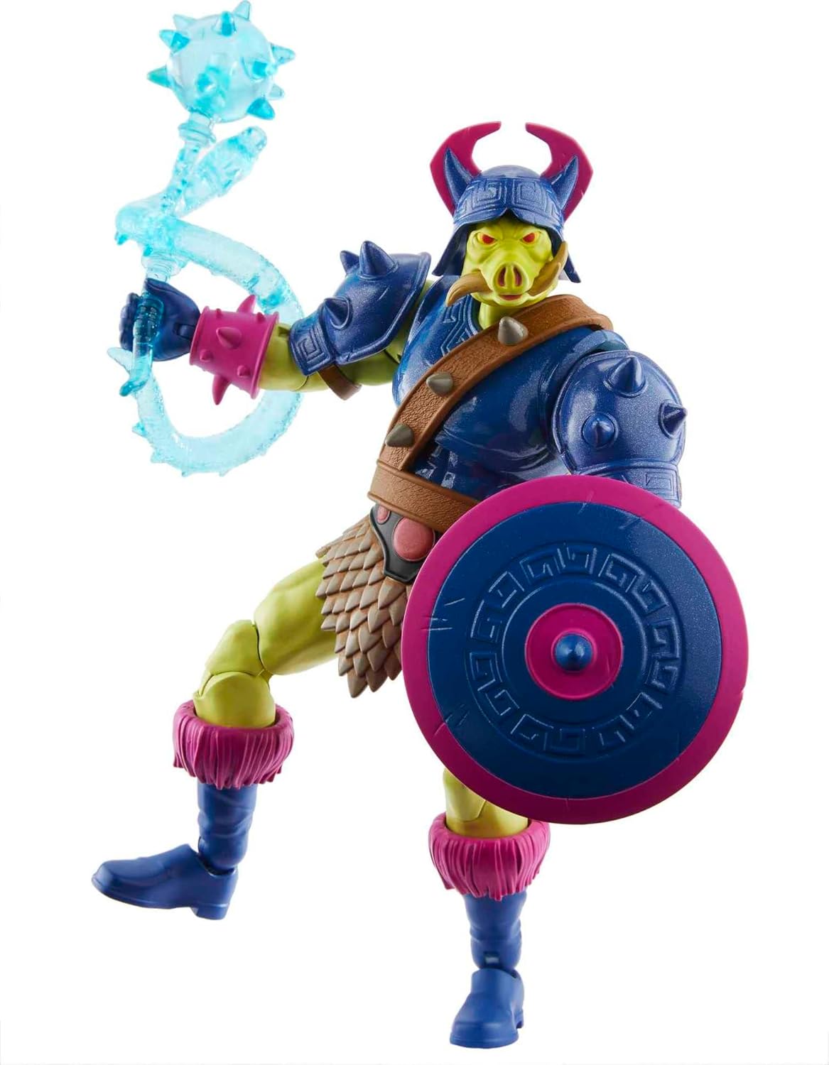 Questa action figure Masterverse testa di maiale misura 17,8 cm e presenta dettagli autentici al carattere originale dei governanti del sole. Con 30 punti di articolazione, questo oggetto da collezione è pronto per movimenti d'azione e pose epiche! I vari accessori del personaggio Pig-Head – 2 set di mani intercambiabili, una pistola Morningstar, uno scudo e un serpente – sono pronti a migliorare la narrazione e la presentazione. La collezione Masters of the Universe Masterverse celebra i contenuti MOTU di Masters of the Universe: Revelation to Masters of the Universe Eternia. I personaggi Masterverse sono un ottimo regalo per collezionisti e fan dai 6 anni in su, che apprezzeranno la conservazione delle tradizioni MOTU in combinazione con elementi di design modernizzati.