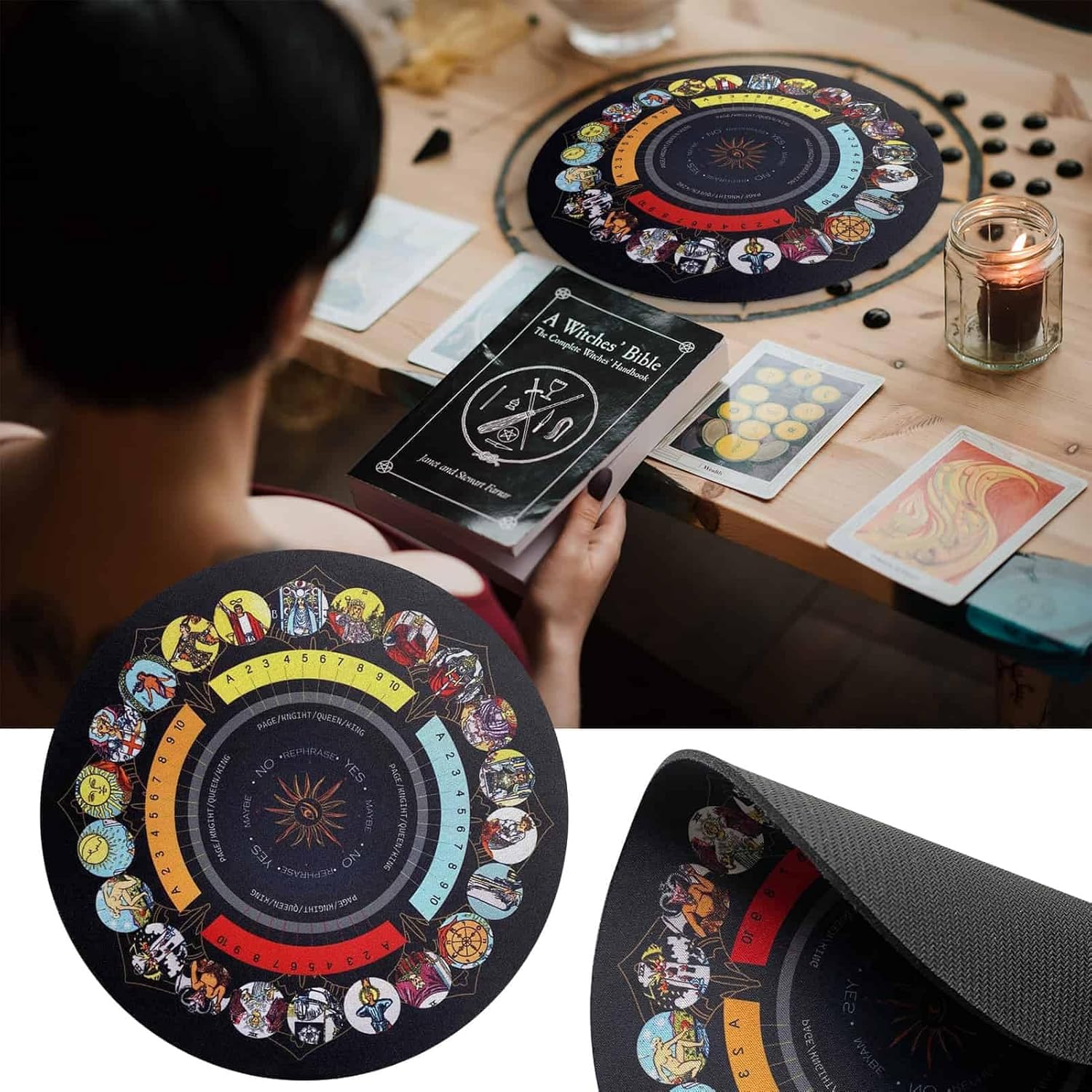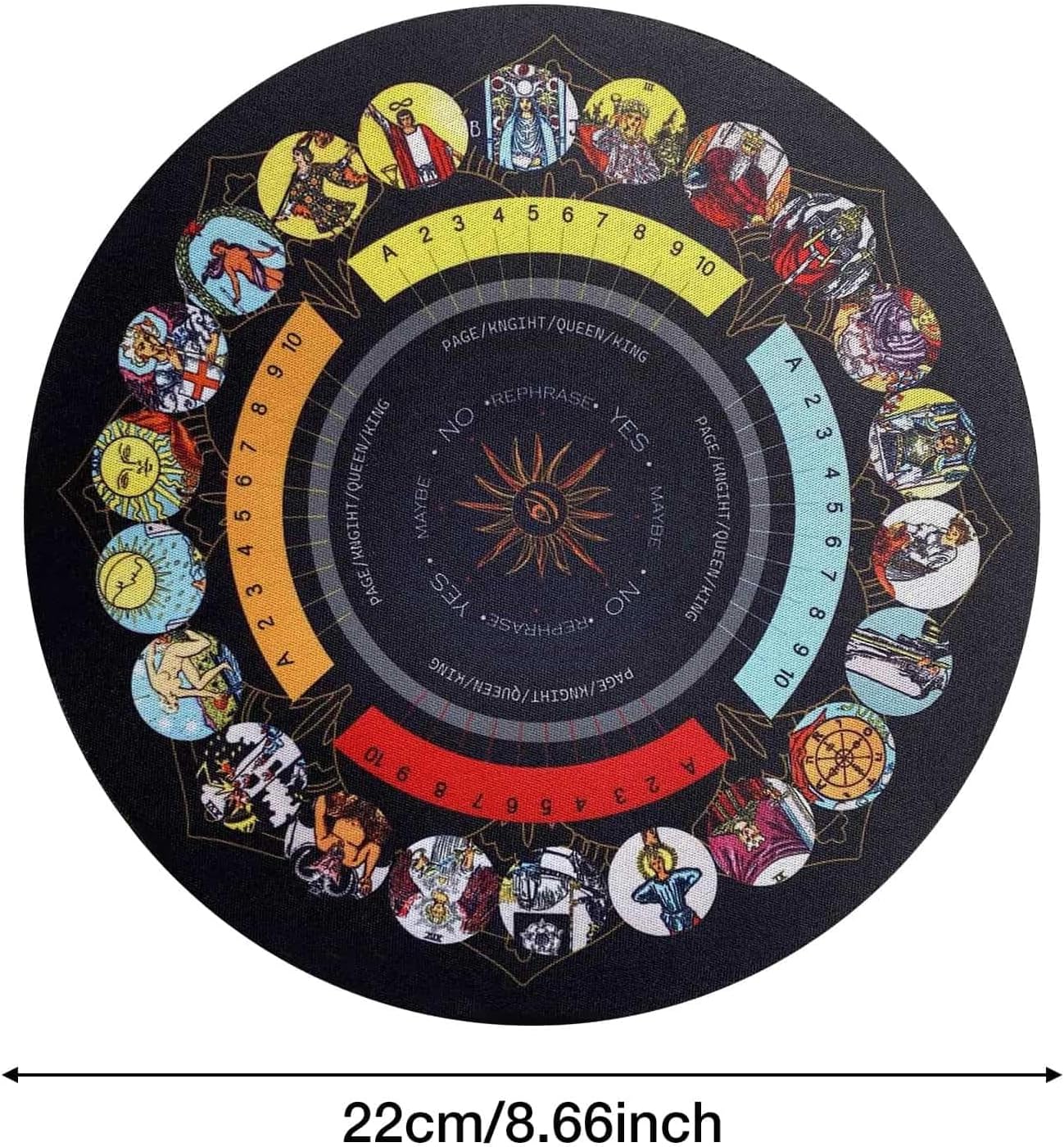 La divinazione più antica: la divinazione del pendolo è degli strumenti di divinazione più comunemente usati e dei più antichi. Il pendolo è usato come un modo per ottenere una visione spirituale e materiale. Utilizzo multiplo: è possibile utilizzare il tappetino per purificare e dissipare la negatività nella stanza. Il pendolo aiuta nella guarigione spirituale, nel bilanciamento dei , nella pulizia 'aura, nella messa a terra e altro ancora. Ampia applicazione: il Pendulum Board può soddisfare le esigenze di divinazione e decorazione 'altare della strega. Adatto a rituali di divinazione del pendolo, consulenti psicologici, maghi o uso familiare. Regali di streghe: la Commissione della Divinazione non può aiutarci a prendere decisioni, ma anche essere regalati alle streghe sui matrimoni, negli anniversari, nei compleanni, nel Natale, nella festa della mamma, nel Ringraziamento, ecc. Dimensioni appropriate: il diametro del tappetino di divinazione è 22 cm/8,66 pollici, che è e leggero, facile da trasportare. Può essere posizionato ovunque per aggiungere un'aria di mistero.