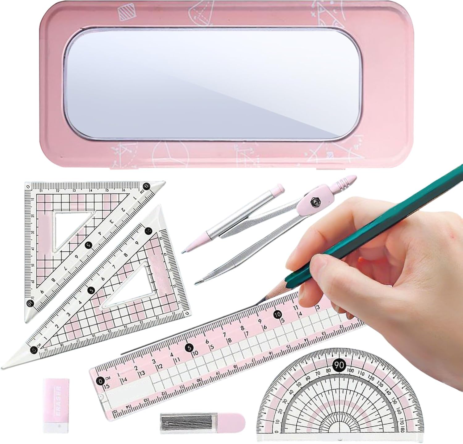 Strumenti di Disegno Preciso: Questo necessario di geometria combina uno e un goniometro con scale meticolosamente dettagliate, tracciati fluidi e privi di errori per gli studenti che affrontano problemi complessi durante la matematica o in autodidatta. Accessibilità ottimizzata: Con la sua soluzione di archiviazione progettata Thoughtfully, questo cofanetto geometrico garantisce che ogni pezzo di un set di 8 strumenti sia tenuto al sicuro in singoli scomparti, evitando la perdita e mantenendo l'ordine whether collocato in borse o cassetti, rendendolo perfetto per creativi e studenti che gestiscono più strumenti quotidianamente. Regalo ideale per studenti: questo set di geometrie offre una soluzione di cancelleria completa progettata per gli studenti dal 7 ° al terminale, con strumenti di precisione per i lavori di geometria. Il suo design accattivante lo rende uno strumento funzionale e un accessorio alla moda, perfetto per un regalo di rientro a scuola. Comfort visivo: questo necessario geometria con finitura antiriflesso e design ergonomico riduce l'affaticamento degli occhi, consentendo agli utenti di concentrarsi sui loro studi o progetti creativi senza interruzioni inutili grazie alla visibilità ottimale e al comfort di utilizzo prolungato Strumenti Stile e Pratico: Con le sue superfici trasparenti bicolori e i motivi geometrici contemporanei, questo set di geometria offre un'alternativa moderna agli strumenti classici, funzionalità ed estetica per l'uso quotidiano al college o al liceo.