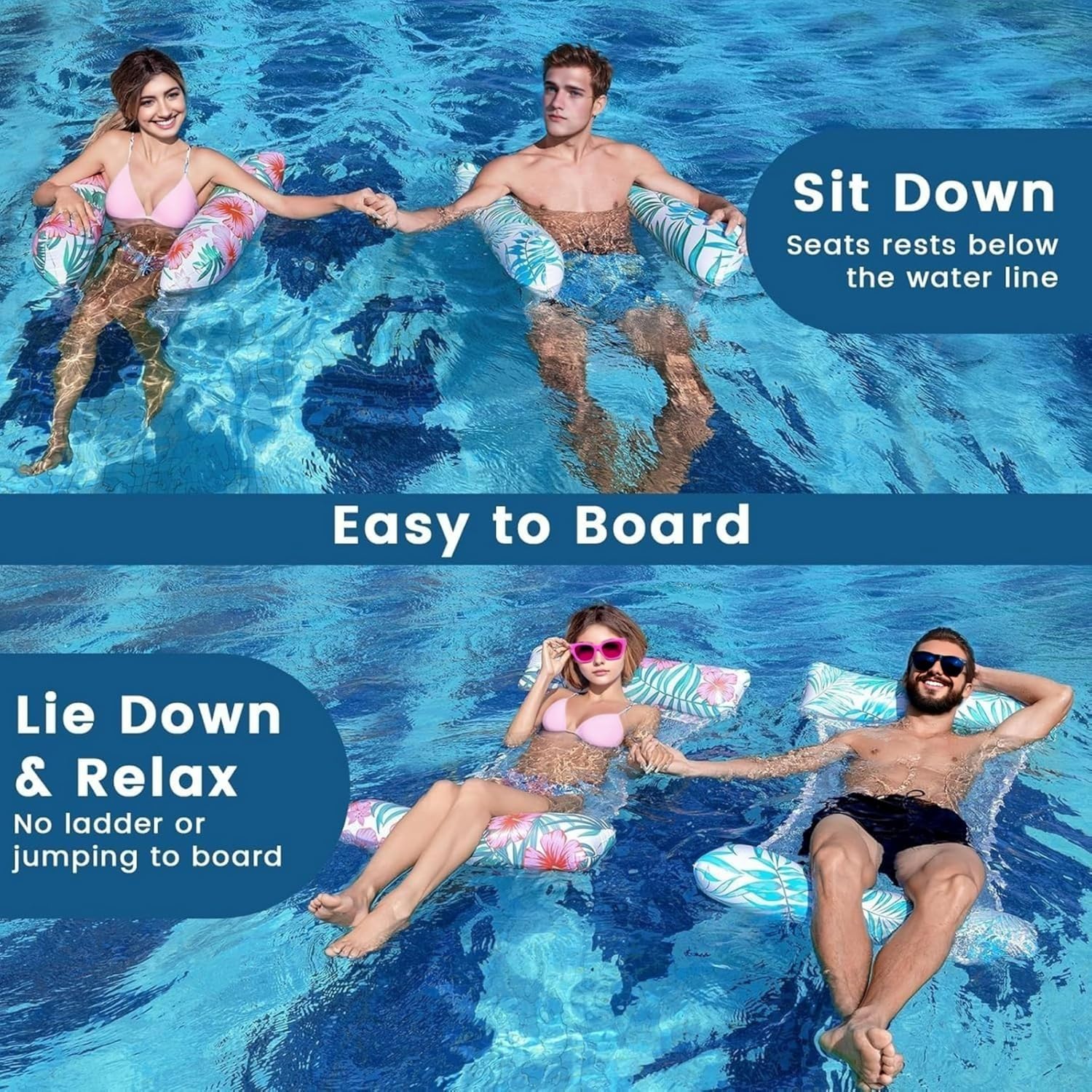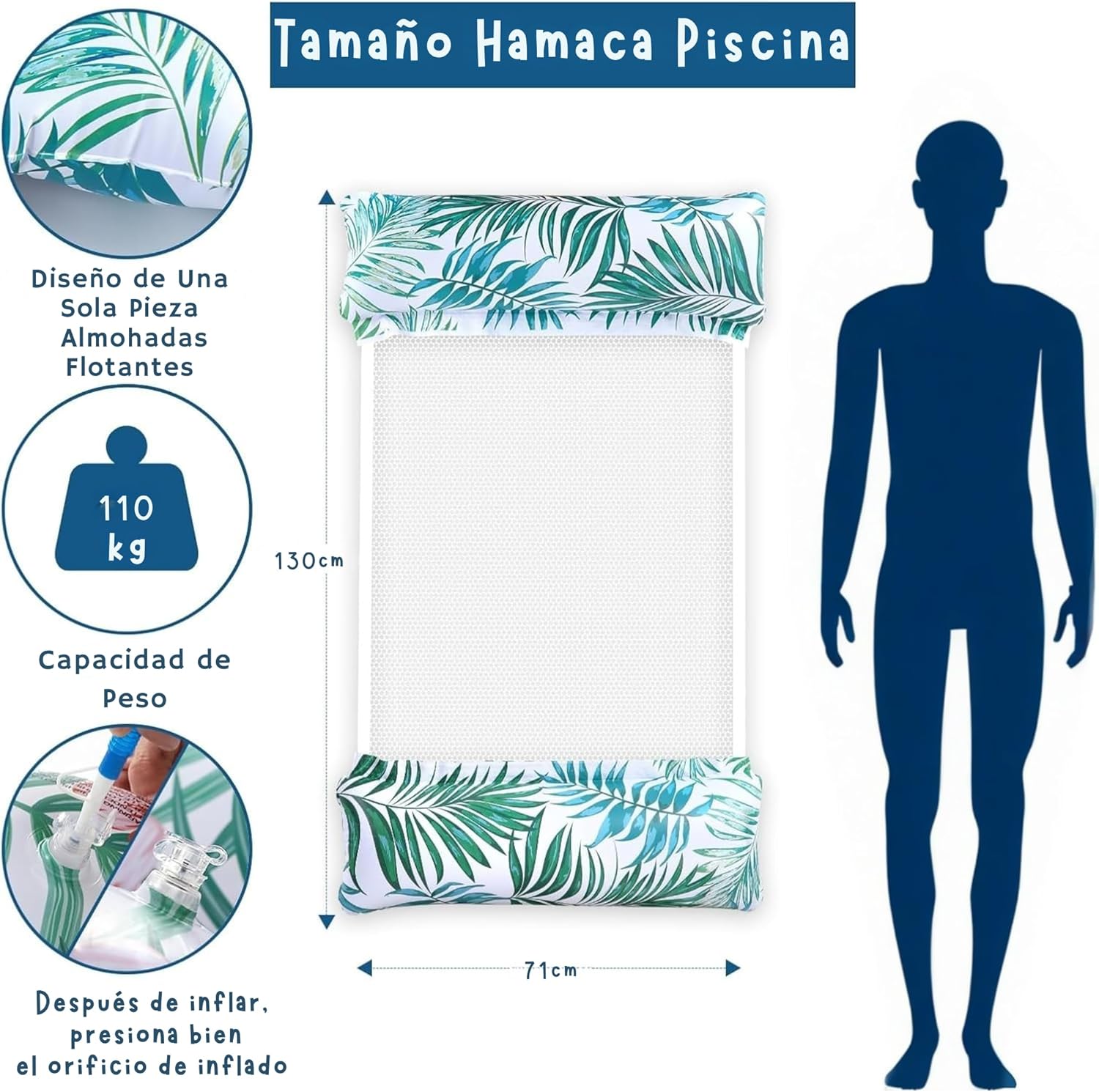 🧵 Materiali durevoli e confortevoli: ogni materasso gonfiabile per piscina è realizzato al 50% in morbido vinile e al 50% in rete traspirante, per un comfort ottimale. Portata di 100 kg, ideale come amaca gonfiabile per adulti. 🔄 Design multifunzionale 4 in 1: questa amaca gonfiabile per piscina si trasforma in una sedia a sdraio, una sedia galleggiante, un galleggiante o una sella per esercizi. Goditi la piscina come vuoi tu con un solo prodotto. 🎒 Facile da trasportare e compatto: leggero e pieghevole, questo materasso per piscina entra facilmente in una valigia o in una borsa da spiaggia. Ideale per vacanze o feste in riva al mare. 📏 Dimensioni generose e buon supporto: una volta gonfiato, il lettino gonfiabile da piscina misura 115 x 68 cm, per un comfort e un supporto adatti alla maggior parte delle forme del corpo. Portata fino a 100 kg. 👨👩👧👦 Confezione da 2 materassi per amache da piscina: questo set comprende 2 boe da piscina per adulti, perfette per divertirsi in coppia o avere un materasso di riserva.
