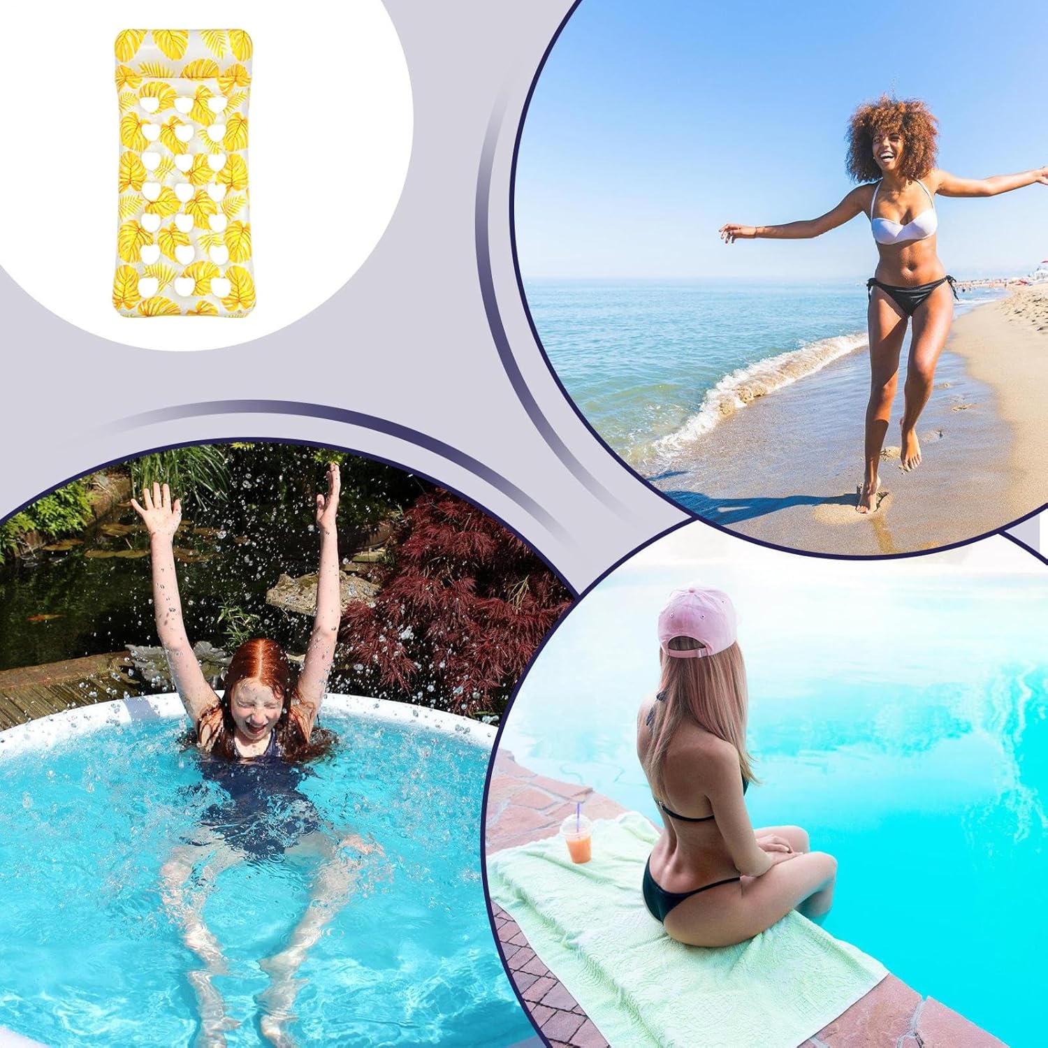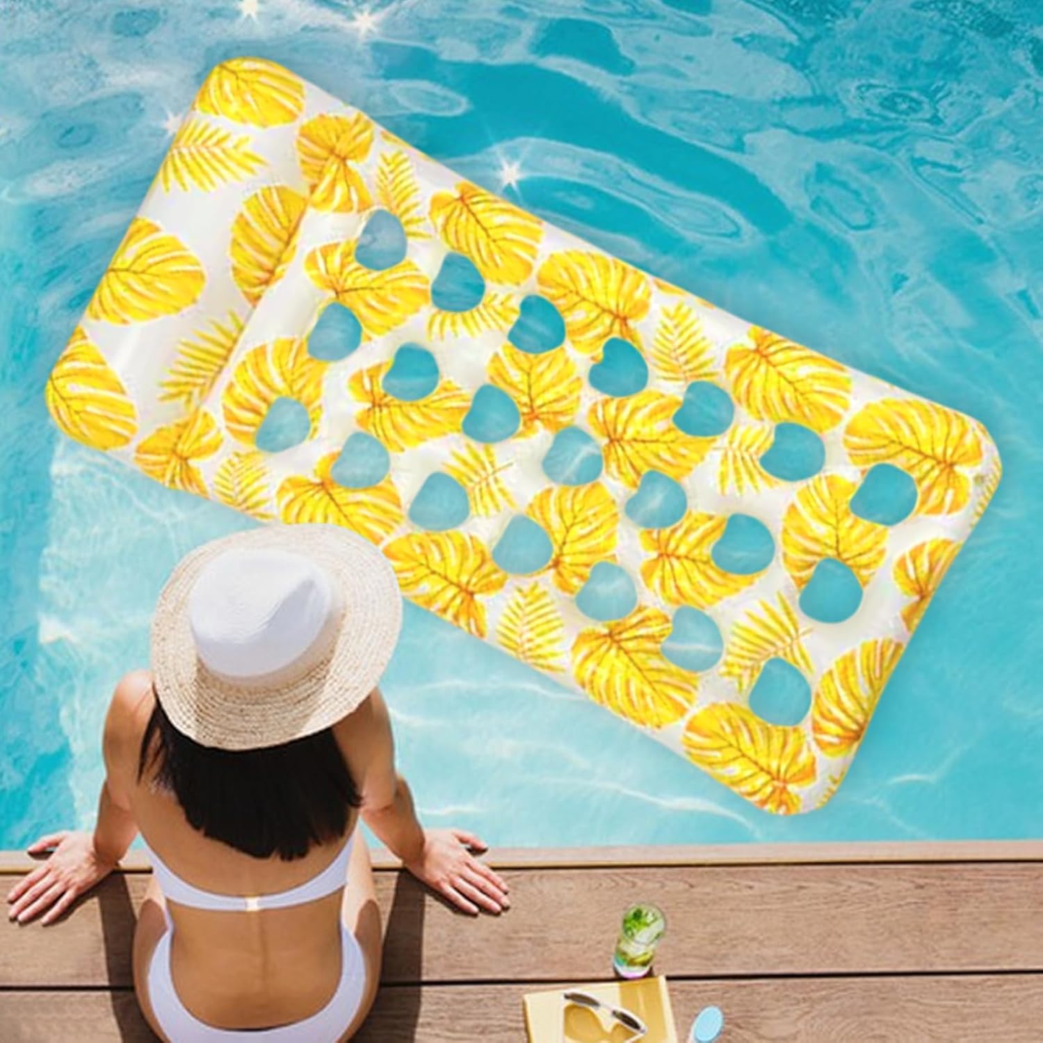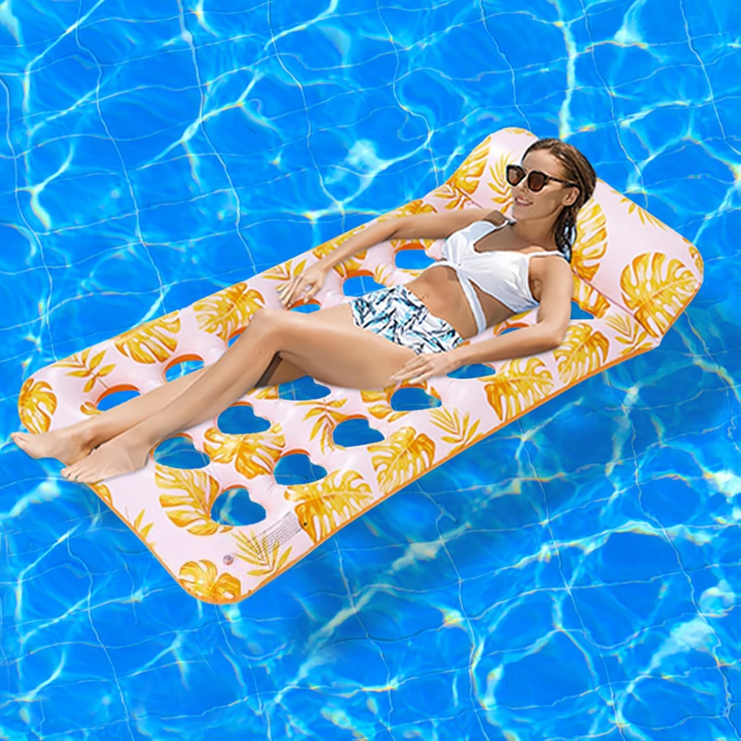 Qualità Durevole: Progettato con PVC rinforzato per uso intensivo, design stabile combinato con proprietà inodori che migliorano sicurezza e comodità 'utilizzatore Stile Ricercato: Progettati con cuscini galleggianti ergonomici avanzati per offrire supporto cervicale stabile, uniti a colori eleganti che migliorano l'attrattiva e il piacere di ogni momento in acqua senza sforzo Utilizzo Multifunzione: Progettato per piscine laghi e zone acquatiche, supporta attività come chiacchierare leggere o sonnecchiare, assicurando comfort ottimale in molteplici situazioni di galleggiamento ricreativo Galleggiamento Ottimale: Geometria extra-larga offre stabilità superiore e spazio abbondante per esperienze acquatiche confortevoli e rilassanti senza sforzo Costruzione Galleggiante : Meno cuciture saldate combinate con design di tenuta integrato riducono il rischio di perdite massimizzando la durata complessiva del prodotto