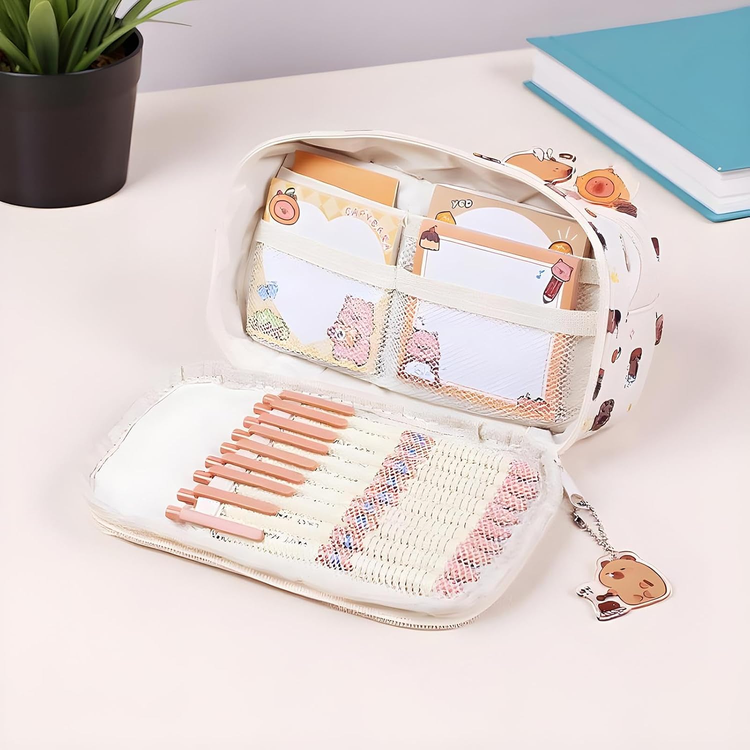 Suddivisione degli scomparti: la struttura multistrato con speciali tasche in rete e portapenne garantisce un ordine sistematico, in modo che tutti gli oggetti importanti siano sempre al loro posto Astuccio durevole: realizzato in materiale antigraffio e resistente all'abrasione, questo astuccio garantisce una lunga durata con una sensazione morbida al tatto e flessibilità per l'uso quotidiano Pratica apertura ampia: la struttura ad ampia apertura consente una conservazione efficace e una presa rapidissima, combina funzionalità e comfort per un uso quotidiano fluido. Versatile: grazie alla maniglia integrata e agli angoli arrotondati, l'astuccio si adatta in modo flessibile agli zaini della scuola, agli ambienti della scrivania e alle situazioni di viaggio, consentendo di riporre facilmente penne e accessori durante l'uso quotidiano. Elegante accessorio per tutti i giorni: questo astuccio versatile è un pratico accessorio alla moda in uno. Il design elegante è ideale per organizzare gli oggetti personali in ogni situazione.