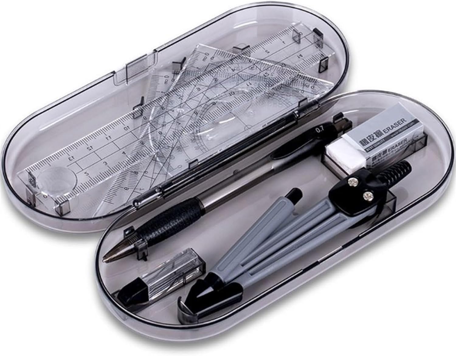Il compasso matematico è facile da impugnare, con controllo superiore e facile da cambiare il raggio del cerchio e si blocca sempre in posizione per ottenere i cerchi desiderati. Dimensioni compatte e peso leggero, facile da trasportare. Articoli di cancelleria da 8 pezzi in una custodia, facili da riporre. Perfetto strumento professionale per disegno o disegno di cancelleria. La testa del compasso dal design ergonomico è comoda da tenere.