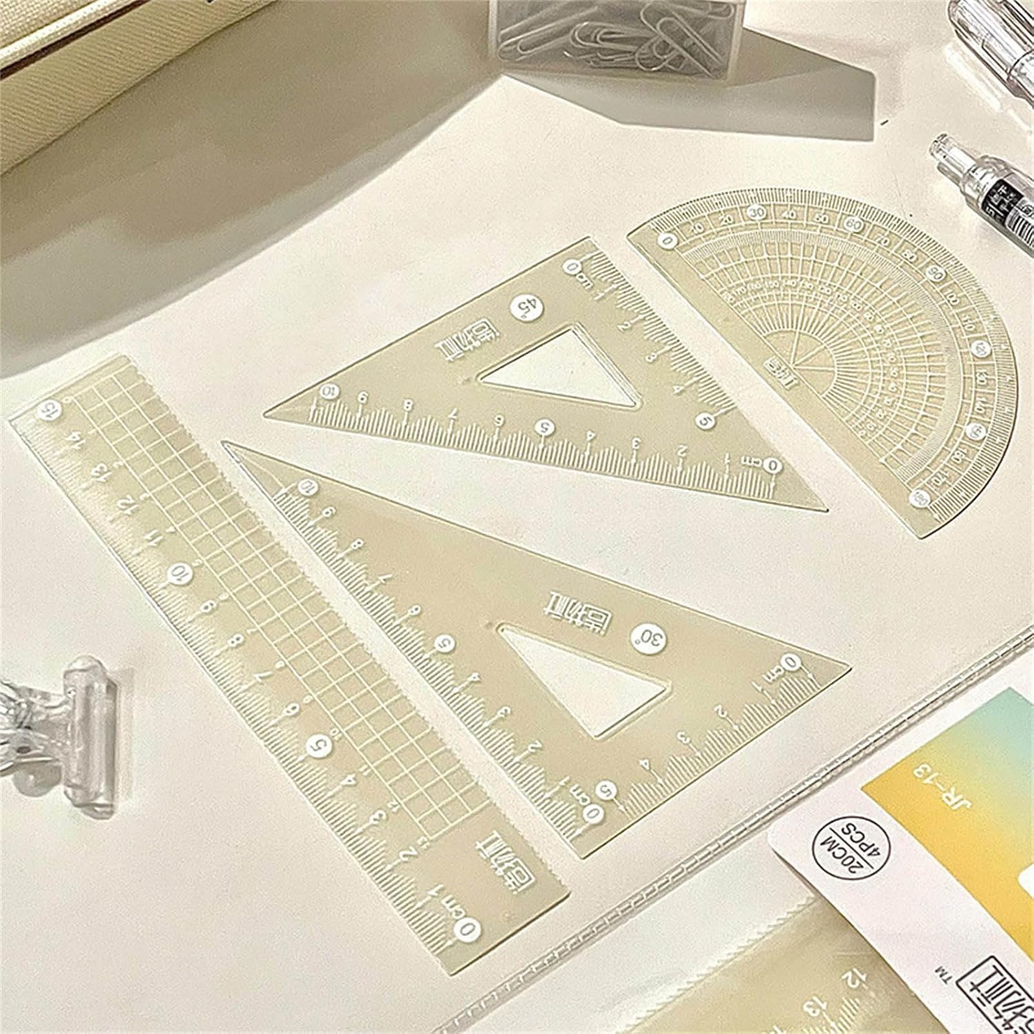 Strumento essenziale di geometria scolastica per lezioni di matematica, studio a casa, presentazione sul posto di lavoro e progetto di progettazione matematica, che richiede una misurazione accurata Ideale per studenti che svolgono i compiti, insegnanti organizzano aule e progetti professionali per disegni tecnici o progetti artigianali Questo accattivante set di righelli trasforma lo strumento per misurare il normale righello del disegno in strumento di matematica multifunzionale con le sue funzioni pratiche e design giocoso, adatto per studenti, bambini e adulti Strumento matematico multifunzionale per la scuola e l'ufficio. Coming con un righello dritto, 180 gradi di matematica lunghi, set quadrato da 30°/60° e set quadrato a 45° in plastica leggera con bordi arrotondati per una maneggevolezza sicura Caratteristiche strumento di misurazione integrato con superfici antigraffio e angoli arrotondati ergonomici, realizzati in plastica leggera conforme agli standard di sicurezza internazionali