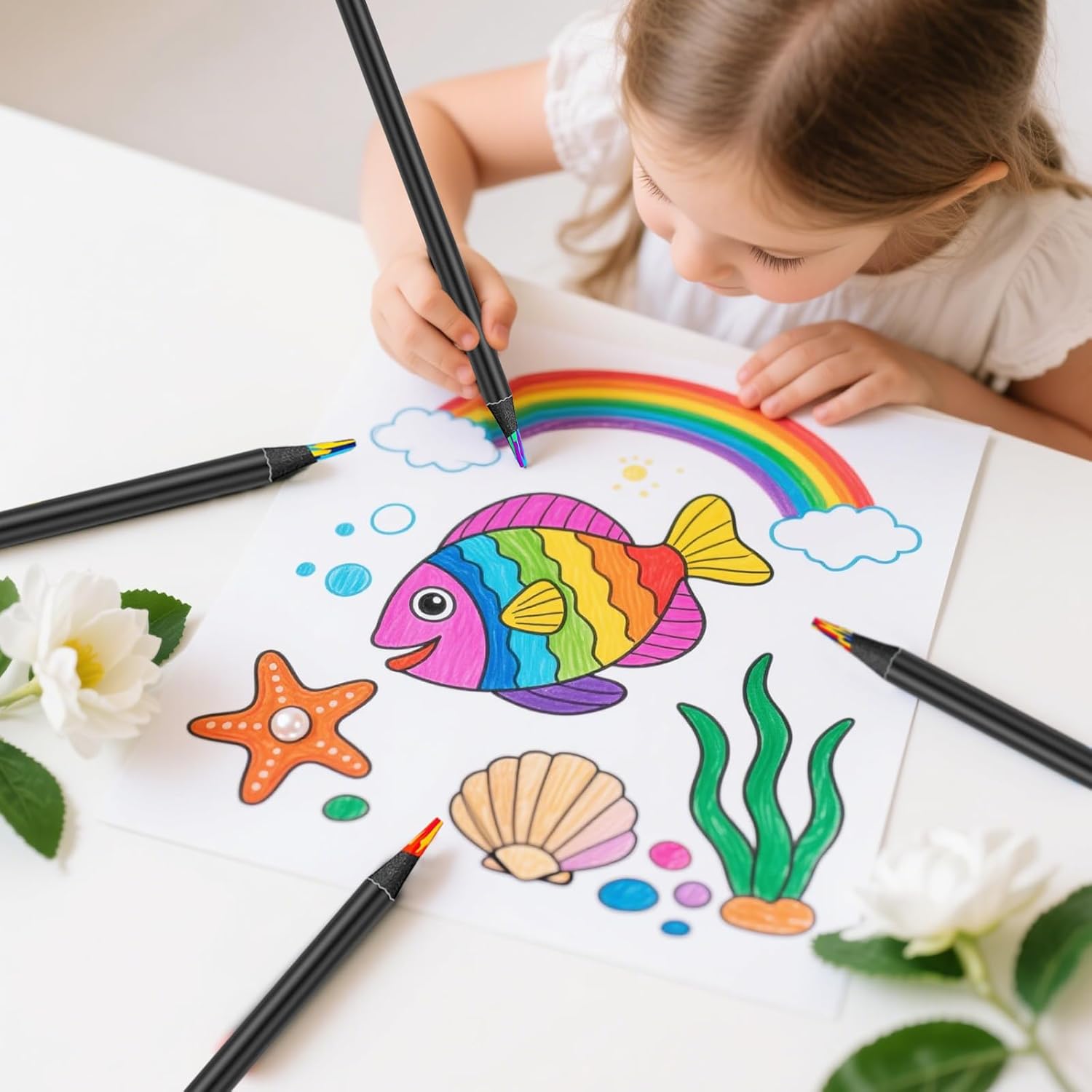 VARIETÀ DI COLORI: Set di 12 vivaci colori arcobaleno per disegni creativi e progetti artistici ADEGUATO ALL'ETÀ: Progettato appositamente per bambini dai 4 ai 12 anni, ideale per la pittura e l'artigianato APPLICAZIONE: Perfetto per lavori scolastici, progetti artistici e design creativo a casa MANEGGEVOLEZZA: Forma ergonomica per una presa comoda e un disegno preciso, design a misura di bambino QUALITÀ: Matite colorate robuste con distribuzione uniforme del colore per colori che durano a lungo Divertimento nel disegno