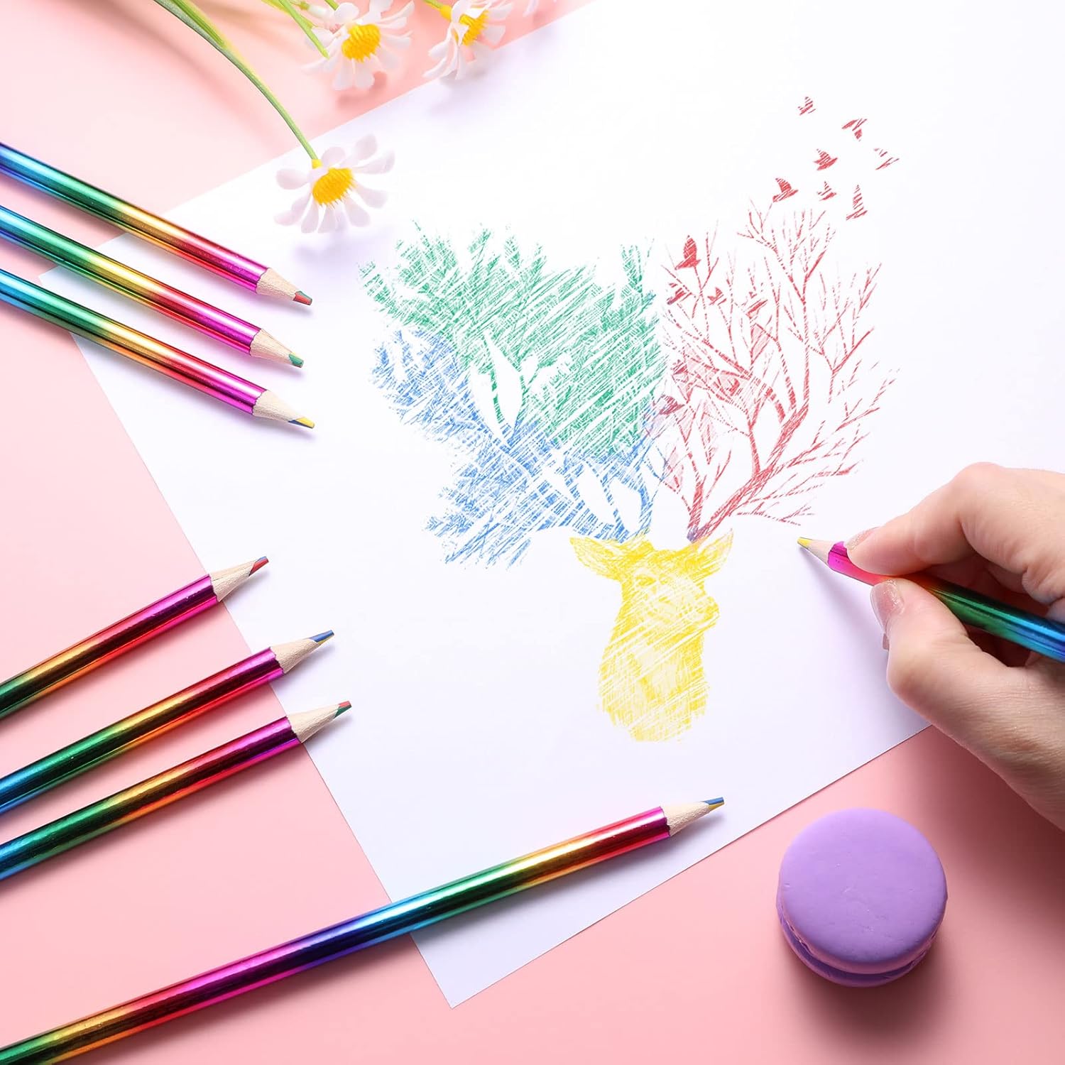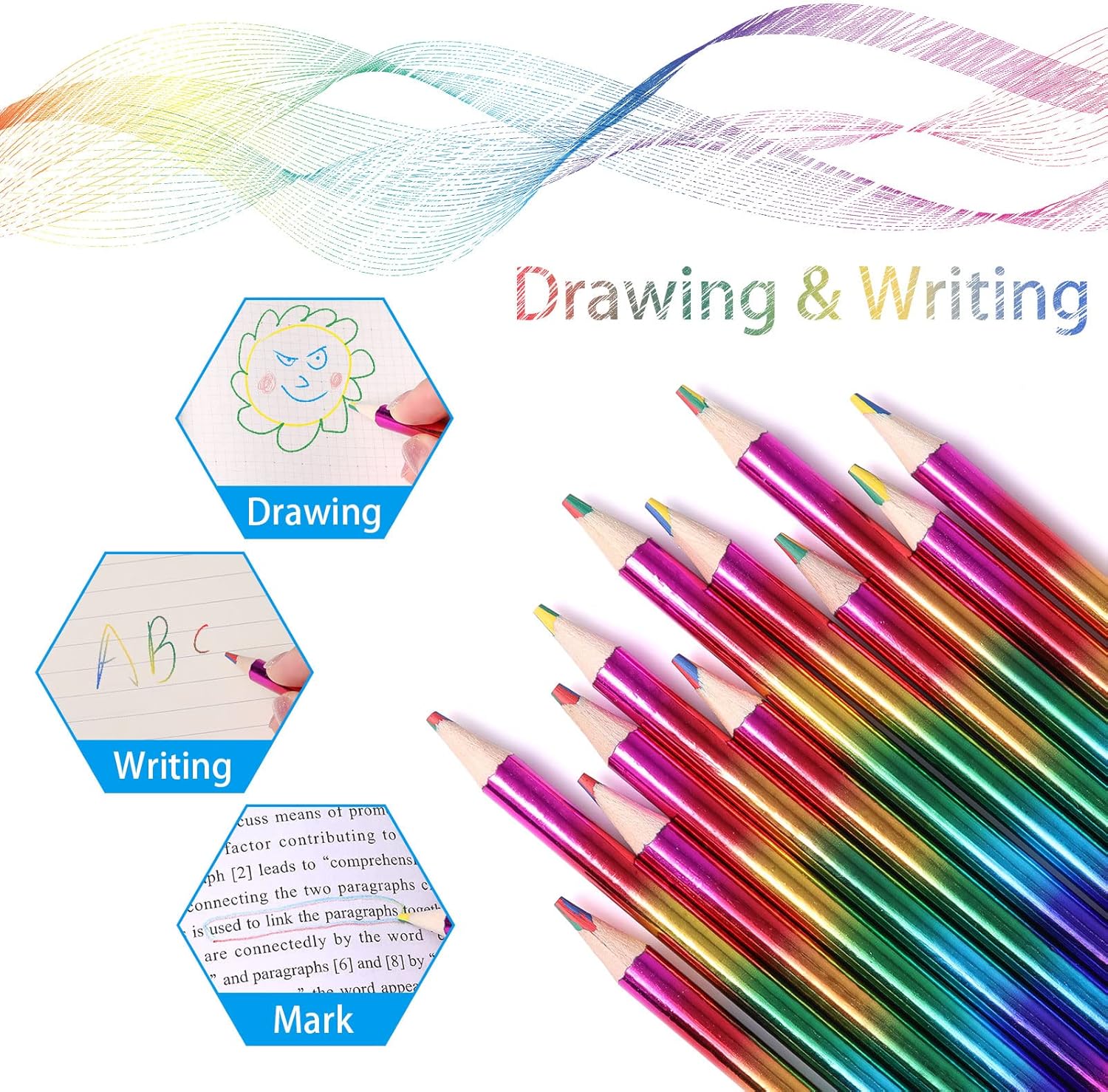 【SET DI MATITE ARCOBALENO DA 30 PEZZI】 La confezione contiene 30 pezzi di matite colorate arcobaleno, in quantità abbondante, la superficie della matita da disegno è progettata con colori sfumati, che hanno un aspetto colorato e attirano l'attenzione. 【PENNE COLORATE ARCOBALENO 4 IN 1】 La matita colorata multicolore è composta da quattro colori dell'arcobaleno: giallo, blu, rosso e verde, quando dipinge può mostrare colori colorati. 【PENNA DA COLORARE IN LEGNO】 Le penne arcobaleno sono realizzate in legno naturale e non sono facili da rompere. La matita colorata arcobaleno può essere scritta o disegnata senza problemi ed è adatta ai bambini. 【SET DI COLORI ARCOBALENO DA 30 PEZZI】 La confezione contiene 30 pezzi di matite colorate arcobaleno, ampia quantità e colori vivaci, i bambini possono dipingere quanto vogliono e godersi il divertimento della pittura creativa. 【AMPIA APPLICAZIONE】 Il set di penne arcobaleno è ideale per il disegno artistico, gli schizzi, la colorazione e la scrittura. Le penne arcobaleno possono essere utilizzate come regali di compleanno, regali per feste, premi scolastici, ecc.