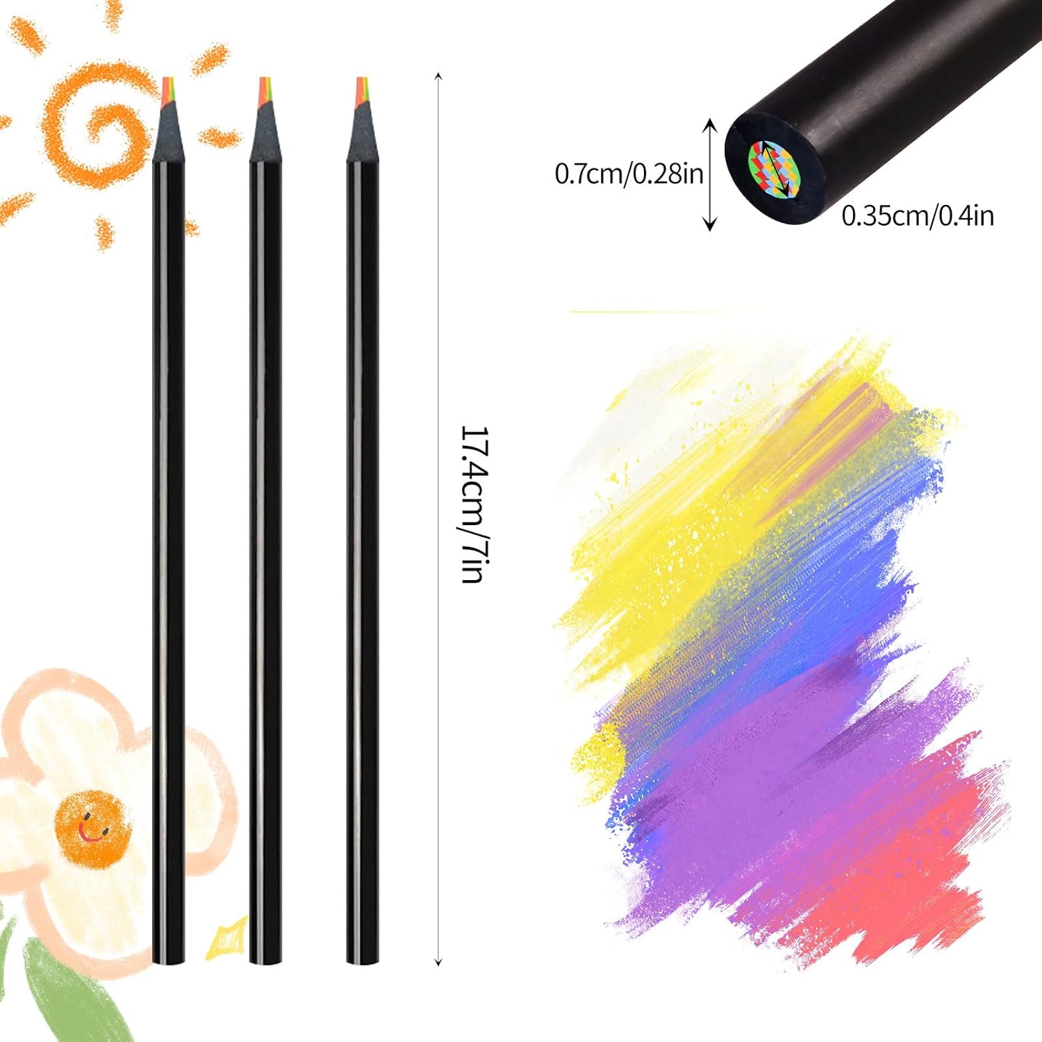 【EFFETTO COLORE MAGICO E UNICO】Immergiti in un mondo pieno di sorprese colorate! Le mine delle matite mescolano più di tre colori diversi. Con ogni tratto, si creano incantevoli sfumature ed effetti di ombreggiatura. I colori che cambiano casualmente rendono ogni disegno sorprendente e unico. 【EFFETTO COLORE MAGICO E UNICO】Immergiti in un mondo pieno di sorprese colorate! Le mine delle matite mescolano più di tre colori diversi. Con ogni tratto, si creano incantevoli sfumature ed effetti di ombreggiatura. I colori che cambiano casualmente rendono ogni disegno sorprendente e unico. 【IDEA REGALO PER BAMBINI E ADULTI】Che sia per il ritorno a scuola, come riempimento per il cono di zucchero della prima elementare, per una festa di compleanno come bomboniera o per Natale, questo set è il regalo ideale per bambine e bambini dai 3 anni in su. Questa esperienza di colorazione creativa entusiasma tanto i bambini quanto gli adulti e trasforma ogni opera d'arte in un'esperienza colorata. 【DESIGN ERGONOMICO】Il fusto della matita arcobaleno ha un design antiscivolo, morbido e rotondo. Èrgonomico, piacevole da impugnare e facile da controllare, ideale per scrivere e disegnare a lungo. 【MULTIUSO】La matita arcobaleno per bambini è adatta per colorare in modo creativo, schizzi a colori, riempimento, graffiti, annotazioni, ecc. Scelta ideale per regali per Pasqua, la Festa dei Bambini, Natale, compleanni e altre festività.