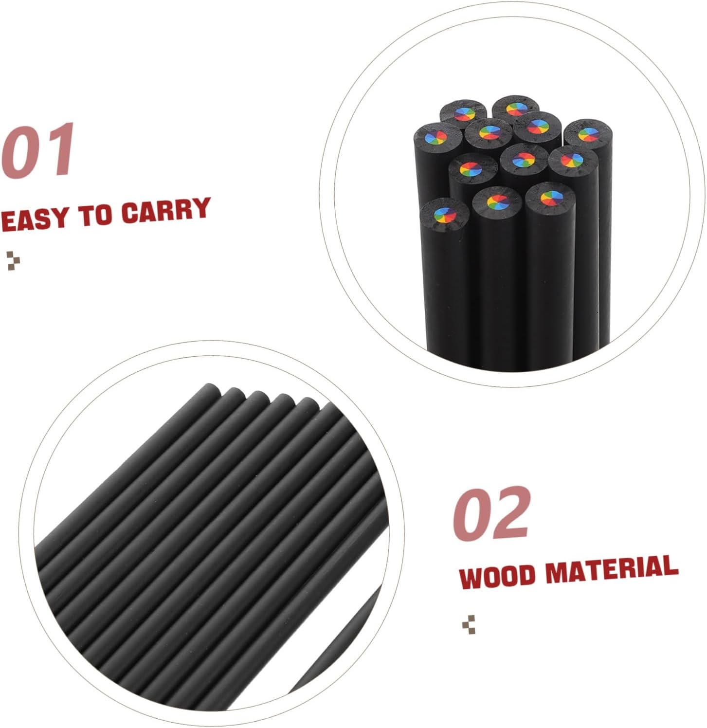 Innovativo design sette in uno: contiene sette colori in una penna, permettendoti di creare facilmente opere d'arte colorate e dinamiche senza dover cambiare strumento Adatte a studenti e artisti: progettate sia per studenti che per amanti dell'arte, queste penne sono ideali per esplorare la creatività e migliorare le tecniche di disegno Rende divertenti le opere d'arte: il design arcobaleno aggiunge un elemento divertente e giocoso agli schizzi, ispirando l'utente a creare opere fantasiose e uniche Adatte per l'uso quotidiano: queste penne sono adatte Ottime per attività in classe, compiti a casa e progetti artistici personali, sono pratici e versatili per tutte le esigenze di disegno. Costruzione in legno massiccio: queste penne sono realizzate in resistente legno nero, garantendo una presa comoda e prestazioni elevate per un uso a lungo termine.