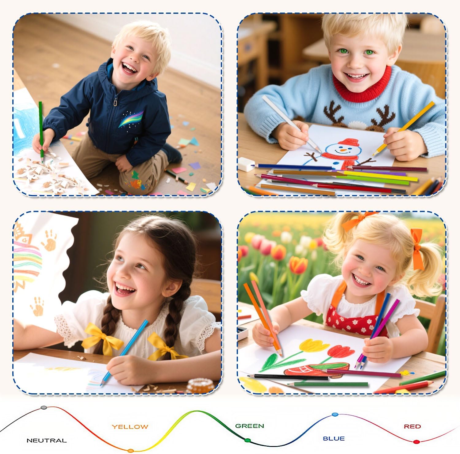 Ampiamente utilizzabile per ogni età: queste matite colorate versatili soddisfano tutte le esigenze, sia per bambini che per lezioni di arte, adulti in ufficio o artisti per progetti di disegno professionali. Utilizzabile a scuola, a casa, in viaggio o in studio. Perfetto per scarabocchiare, colorare, fare schizzi e illustrazioni dettagliate. Un compagno creativo per ogni area della vita! Materiale premium: le nostre matite colorate sono realizzate in materiali infrangibili con mine lisce e resistenti allo sbiadimento per una resa uniforme del colore. I pigmenti intensi producono opere d'arte brillanti con luminosità professionale che hanno un aspetto brillante anche dopo anni. Versatile in qualsiasi ambiente: sia in cartella, studio di artisti, home office o in viaggio: queste matite colorate vi accompagneranno in modo affidabile in tutte le attività creative o professionali. La forma ergonomica triangolare previene l'affaticamento ed è adatta sia per le mani dei bambini che per gli utenti adulti più esigenti. Ideale per album da disegno, bullet journal, handlettering o progetti artistici decorativi. Utilizzo a lungo termine: la penna spessa 3 mm resiste a 1 m di altezza. La penna morbida ad alta densità offre una rappresentazione a colori senza rischio di rottura. Adatto per abbreviazioni dinamiche e bambini. Questa matita colorata è un compagno durevole per l'uso quotidiano. Regalo ideale per i creativi: per principianti, studenti, artisti o disegnatori amatoriali, questo set entusiasma per la sua varietà e praticità. Le matite colorate sono perfette come pensierino, regalo di compleanno o sorpresa creativa. La pratica conservazione consente un trasporto organizzato senza perdita di penne o colori di qualità