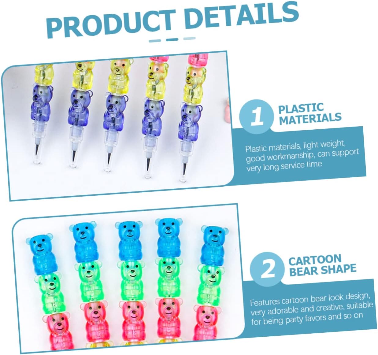 Matite originali per bambini: materiale sicuro e lavorazione artigianale dettagliata, robuste e di , matite impilabili sfuse Matita impilabile: molteplici usi, come pittura, esami, compiti, schizzi o usi di scrittura generali, soddisfano le tue esigenze, porta matite Matite impilabili a forma di orso: queste matite sono pratiche e adatte a insegnanti, artisti, contabili o ingegneri, matite impilabili a forma di orso per bambini Matite impilabili per bambini: adorabili elementi dell'aspetto dell'orso dei cartoni animati, molto creativi, possono darti una sensazione di soddisfazione usando la matita impilabile a forma di orso. Impila le matite: puoi usare le matite separatamente o impilarle insieme in qualsiasi ordine, il che ti offre molta più praticità, matite impilabili per bambini