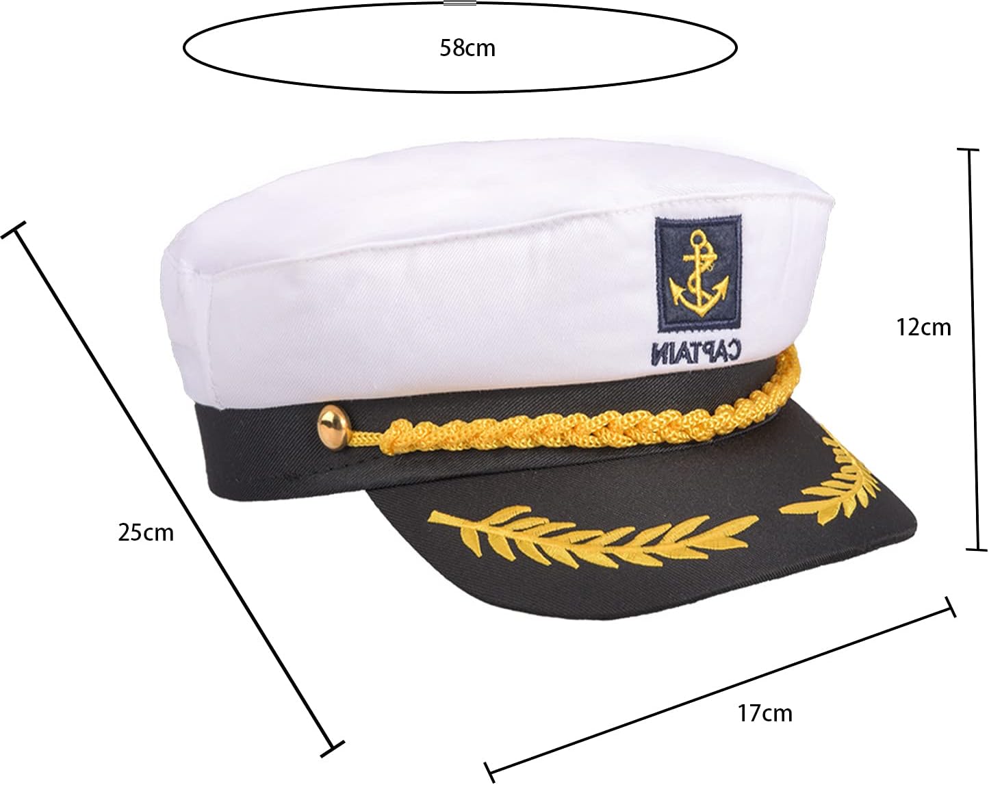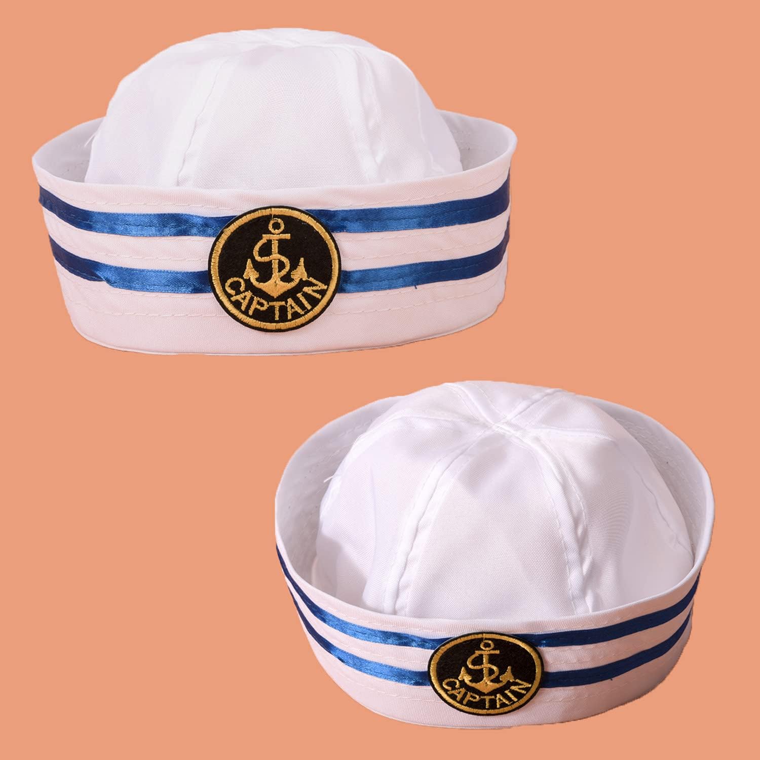 Matory - Cappello da marinaio da capitano marinaio, 2 tipi di cappello da marinaio Contenuto della confezione: un cappello navy e un cappello da marinaio. Materiale: realizzato in twill di poliestere. Dimensioni: la circonferenza della testa del cappello da marinaio è di circa 56 cm, 8 cm, la circonferenza della testa del cappello da capitano è di circa 58 cm. Squisito mestiere: design classico, ricamato con motivi superbi. Applicazione: festa di nozze in spiaggia, Halloween, feste in maschera, feste in costume.