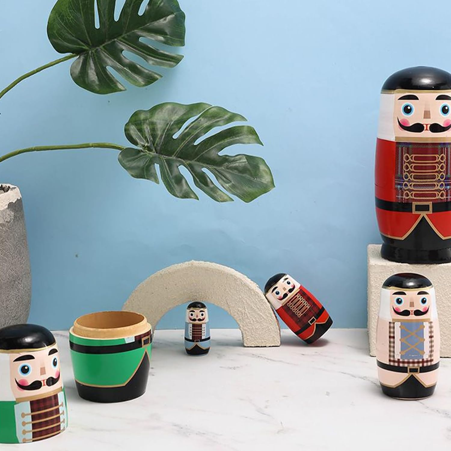 Regalo Elegante: Celebra occasioni come compleanni, feste, Natale o Capodanno regalando queste matriosche a famiglia, partner o amici, simboleggiando il tuo affetto mentre esprimi cura in modo raffinato e memorabile Ideali per Insegnamento Artigianale: Combinano fascino artistico e funzionalità, si adattano a contesti diversificati come decorazioni festive e attività creative, stimolando la partecipazione interattiva Giocattolo Educativo: Questo set di bambole tradizionali con formato a incastro favorisce l'apprendimento attraverso il gioco esplorativo, unisce il vantaggio del ingombro ridotto con la duplice funzione di strumento pedagogico che stimola la creatività infantile con la sua configurazione a nidificazione progressiva Esposizione d'arte culturale: Con dettagli meticolosamente dipinti a mano e una fine lucidatura, queste matriosche enfatizzano trame lisce e una buona creatività. Funzionano sia come attività familiare coinvolgente che come pezzo decorativo, riflettendo una notevole espressione artistica. Materiale Pregiato: Bilanciamento tra sicurezza e valore da collezione con legno di tiglio naturale, resistente a crepe e deformazioni grazie a processi meticolosi, ideale per intenditori di creazioni artigianali ricercate e nel loro appeal estetico