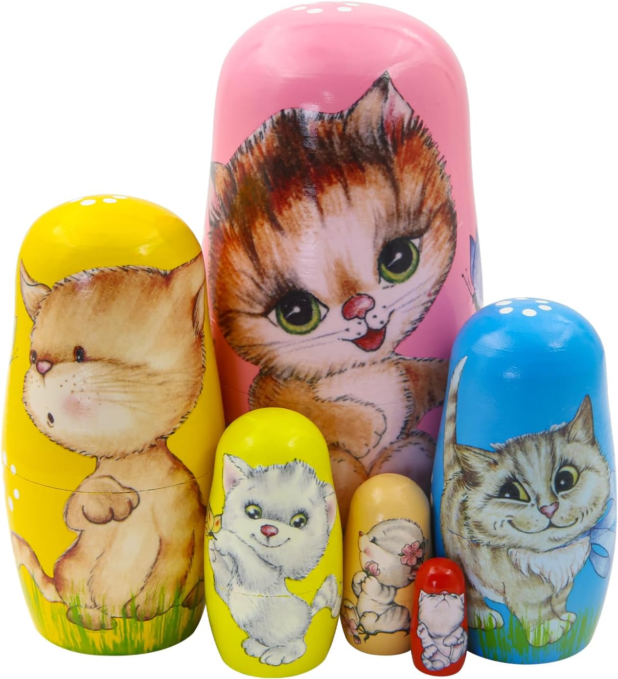 Adattabilità multisensoriale: Queste bambole russe si abbinano con naturalezza a diverse scenografie, perfette per arricchire la stanza dei bambini, la zona notte, l'area ingresso, il salotto, i centrotavola delle feste, gli spazi e le scaffalature decorative Creatività Dipinta a Mano: Ogni esemplare evidenzia disegni minuziosamente dipinti a mano, fondendo talento creativo dal gusto esotico con un fascino tradizionale che si adatta perfettamente all'esposizione domestica Colori vivaci e finitura liscia: La lavorazione con strati multipli di lacca valorizza tonalità ricche e una superficie impeccabile, creando motivi nitidi e brillanti ideali per arricchire gli spazi e preservare nel la qualità artistica Soluzione di condivisione facile: unisce bellezza e praticità con un design multistrato compatto, garantendo portabilità senza sforzo e una configurazione organizzata che migliora l'esperienza di condividere le matriosche ovunque Sviluppo coordinazione occhio-mano: Sviluppa precisione e attenzione mentre bambini e adulti smontano e riassemblano le matriosche russe, creando un'esperienza coinvolgente che la curiosità e rafforza le abilità di ragionamento logico