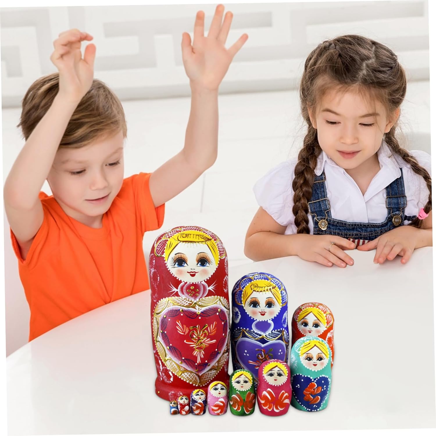 Ottima idea regalo: perfetto per compleanni, vacanze o qualsiasi occasione speciale, questo set fa un regalo eccellente..L'affascinante design e il valore educativo lo rendono un meraviglioso ricordo sia per i bambini che per gli adulti. Bambole non nidificanti russe Costruzione in legno: realizzato in legno di alta qualità e di provenienza sostenibile, queste bambole nidificanti sono robuste, garantendo l'uso di lunga durata per anni di divertimento in gioco..Ogni pezzo è dipinto con vernici ecologiche e non tossiche..Bambole nidificanti russe Matryoshka bambola Design tradizionale russo: il design presenta motivi tradizionali russi, aggiungendo un tocco culturale a qualsiasi sala giochi o decorazioni per la casa..È un modo bellissimo per introdurre i bambini all'arte iconica delle bambole Matryoshka..Matryoshka Doll Matrioshka Colorosi e coinvolgenti: queste bambole di nidificazione Matryoshka a 10 pezzi presentano colori vibranti e motivi intricati che catturano l'attenzione dei bambini, incoraggiando il gioco creativo e lo sviluppo delle abilità motorie..Matrioshka Matrioska Educativo e divertente: impilare e nidificare le bambole aiuta i bambini a imparare il sequenziamento delle dimensioni, la risoluzione dei problemi e la consapevolezza spaziale, il tutto fornendo intrattenimento infinito e aiutando a sviluppare il coordinamento degli occhi a mano..Bambole di nidificazione di Matrioska per bambini