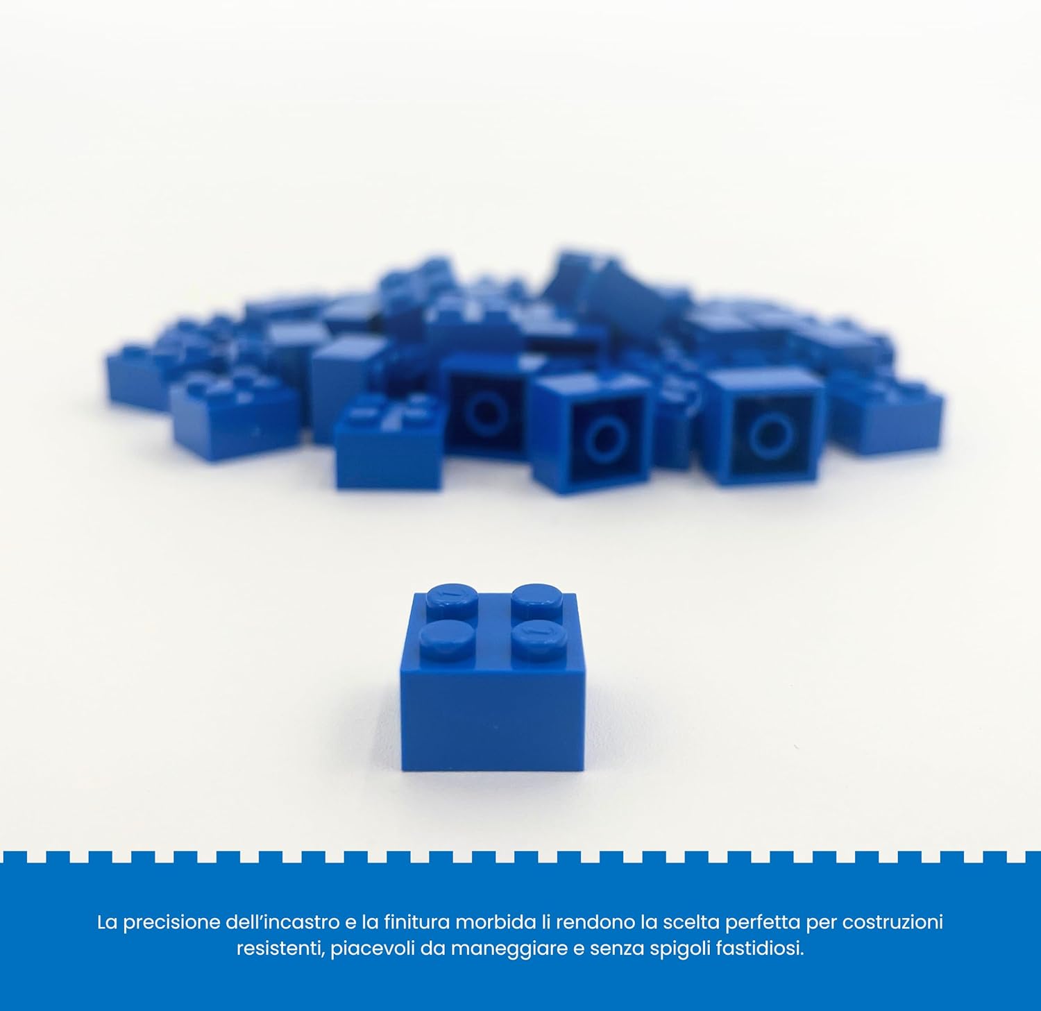 Mattoncini blu 2x2 – Set da 250 pezzi identici nel classico formato 2x2, perfetti per costruzioni, ampliamenti e progetti creativi 100% Compatibili – Compatibili con tutte le principali marche di costruzioni, si integrano facilmente con i set già esistenti Made in Italy – Prodotto interamente in Italia, nel cuore del Veneto, con materiali sicuri e di alta qualità Alta Qualità e Resistenza – Realizzati in plastica ABS atossica e durevole, garantiscono un incastro facile, solido e sicuro Stimolano la Creatività – Ideali per bambini e adulti: promuovono l’apprendimento STEM, la logica e la manualità.