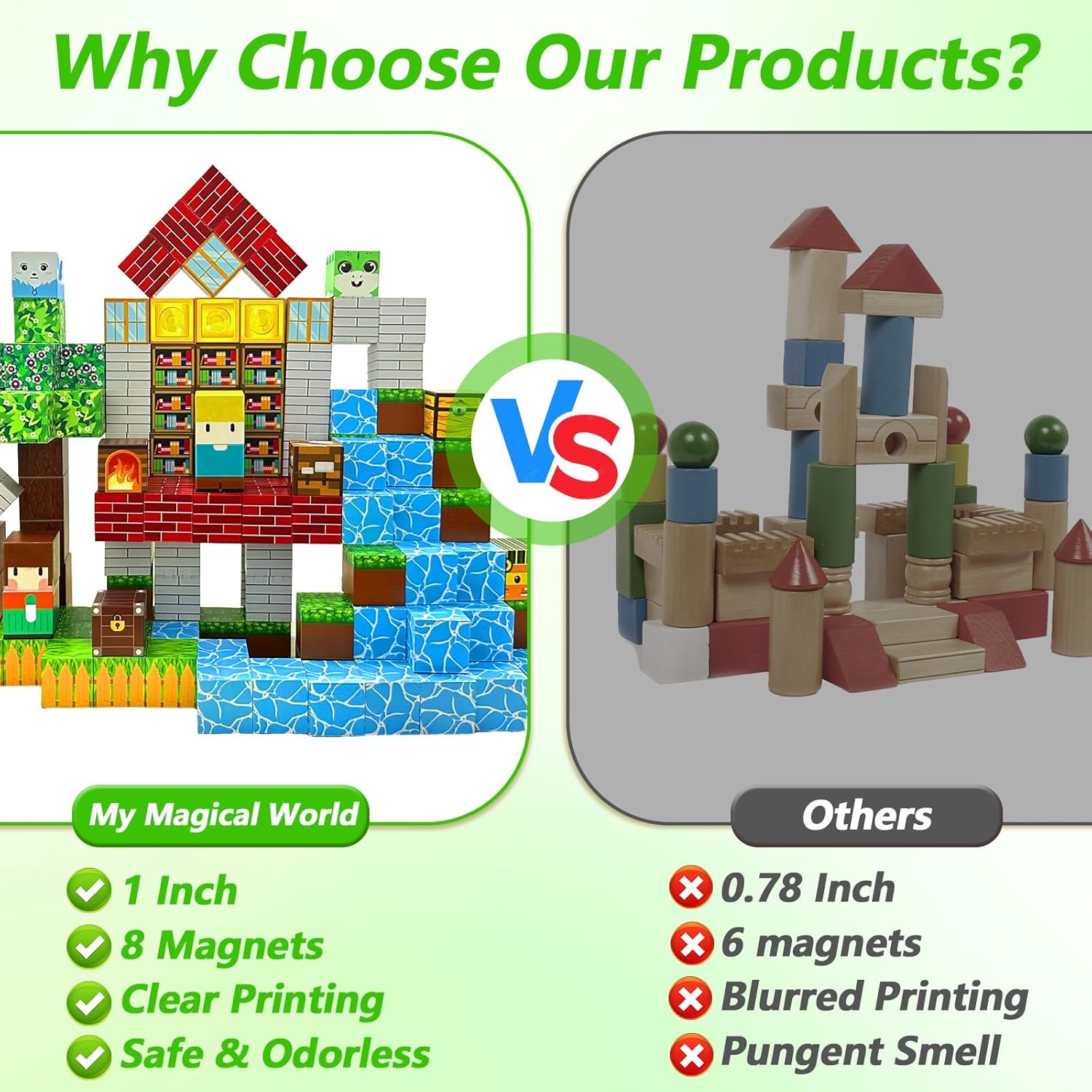 【Blocchi magnetici da costruzione W&H 150 PEZZI】Scatena la creatività con 150 blocchi magnetici da! I grandi mattoncini magnetici da 2,5 cm in molte forme e colori vivaci consentono innumerevoli creazioni: dalle stalle ai castelli dettagliati alle ruote idrauliche funzionanti e agli accoglienti angoli lettura. 【COSTRUZIONE STABILE E FORZA MAGNETICA FORTE】 I nostri blocchi magnetici sono dotati di 6 magneti potenti e chiusi in modo sicuro per cubo. Ciò garantisce un supporto estremamente stabile anche per strutture complesse e alte. Il tuo bambino può concentrarsi completamente sulla costruzione senza la frustrazione dei crolli. 【PENSIERO CREATIVO】 Questo set di mattoncini magnetici è più di un semplice giocattolo! Mentre costruiscono, i bambini imparano in modo giocoso le basi della fisica, del magnetismo, della geometria e dell'ingegneria. Promuove l'immaginazione spaziale, la capacità di risoluzione dei problemi, le capacità motorie e il pensiero creativo, ideale per lo sviluppo della prima infanzia. 【GIOCHI DI SICUREZZA E CERVELLO】 I nostri mattoncini magnetici sono realizzati in plastica ABS di alta qualità e inodore. Le superfici lisce e gli angoli arrotondati prevengono lesioni. I magneti sono sigillati ermeticamente e non possono cadere. Perfetto per ore di divertimento da soli o con la famiglia e gli amici. Questi elementi magnetici promuovono l'interazione sociale, la comunicazione e il lavoro di squadra. 【REGALO PERFETTO DAI 3 ANNI IN SU】Confezionati in un'attraente confezione regalo, questi mattoncini magnetici sono il regalo ideale per ragazzi e ragazze di età compresa tra 3 4 5 6 7 8 9 10 anni per compleanni, Natale, Pasqua o qualsiasi altra occasione. Combina divertimento creativo con valore educativo e rende felice ogni bambino!