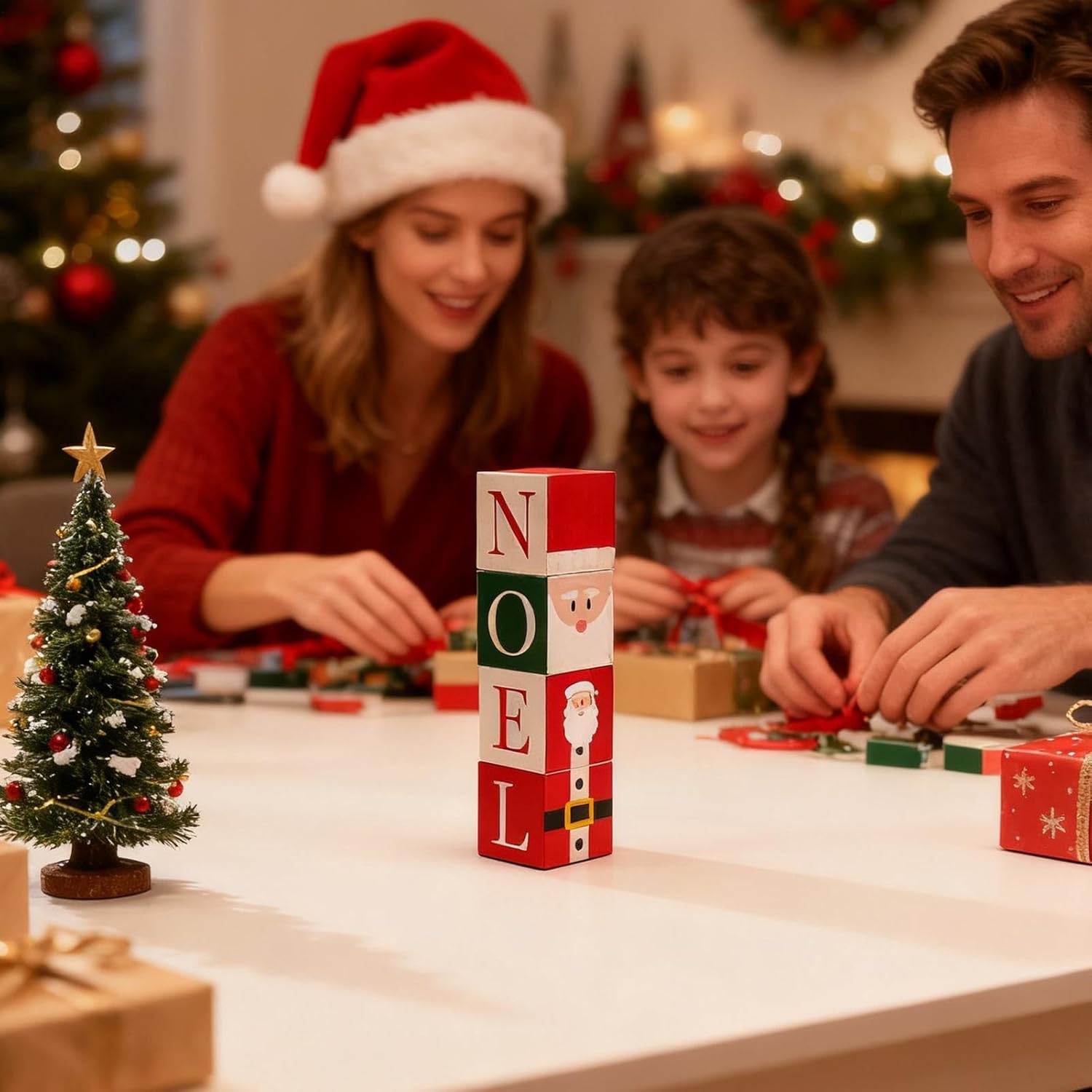 Decorazioni natalizie personalizzabili: compatibili con luoghi come caminetto, ingresso, scrivania e soggiorno, questi blocchi di stazioni natalizie offrono flessibilità e aspetto elegante. Creano un'atmosfera calda e invitante durante il periodo natalizio e si integrano facilmente in vari ambienti domestici. Il loro design promuove l'atmosfera festosa e li rende un'aggiunta versatile alla tua casa. Presentazione festiva flessibile: grazie all'incisione fronte-retro e alla rotazione di 360 gradi, questi dadi natalizi assicurano che i disegni legati alle festività siano ben visibili. Perfetto per portare fascino in qualsiasi casa o celebrazione e arricchire l'atmosfera festosa con l'allestimento variabile. Regalo fantastico: i blocchi di legno di Natale fungono da regalo significativo per la famiglia e gli amici. Sie bereichern Feiertags- und Geburtstagsfeiern, indem sie sich nahtlos in verschiedene Umgebungen einfügen und für Wärme und Eleganz bei jedem Treffen sorgen. Questa decorazione in legno è un regalo fantastico per i momenti festivi e aggiungerà un tocco speciale a qualsiasi riunione. Si adatta perfettamente a qualsiasi arredamento e promuove un'atmosfera accogliente durante la celebrazione. Creare gioia stagionale: con il suo design a tema natalizio, questa decorazione natalizia aggiunge un autentico tocco festivo all'ambiente, promuove un'atmosfera allegra e accogliente ed è adatta per feste festive, feste al chiuso o celebrazioni memorabili. Questo diffonde un'atmosfera festosa e favorisce incontri intimi per arricchire di gioia e fascino il periodo natalizio in ogni ambiente e per rendere indimenticabili le occasioni speciali. Estetica rustica e festosa: questo blocco di legno natalizio combina materiali naturali con lavorazione artigianale fatta a mano, creando una trama calda e invitante che conferisce un affascinante aspetto rustico su mensole, scaffali o centri tavola. The festive aesthetic adds a distinctive character to seasonal celebrations and fits perfectly into different interior styles. Il carisma naturale e i dettagli artigianali garantiscono un'atmosfera accogliente