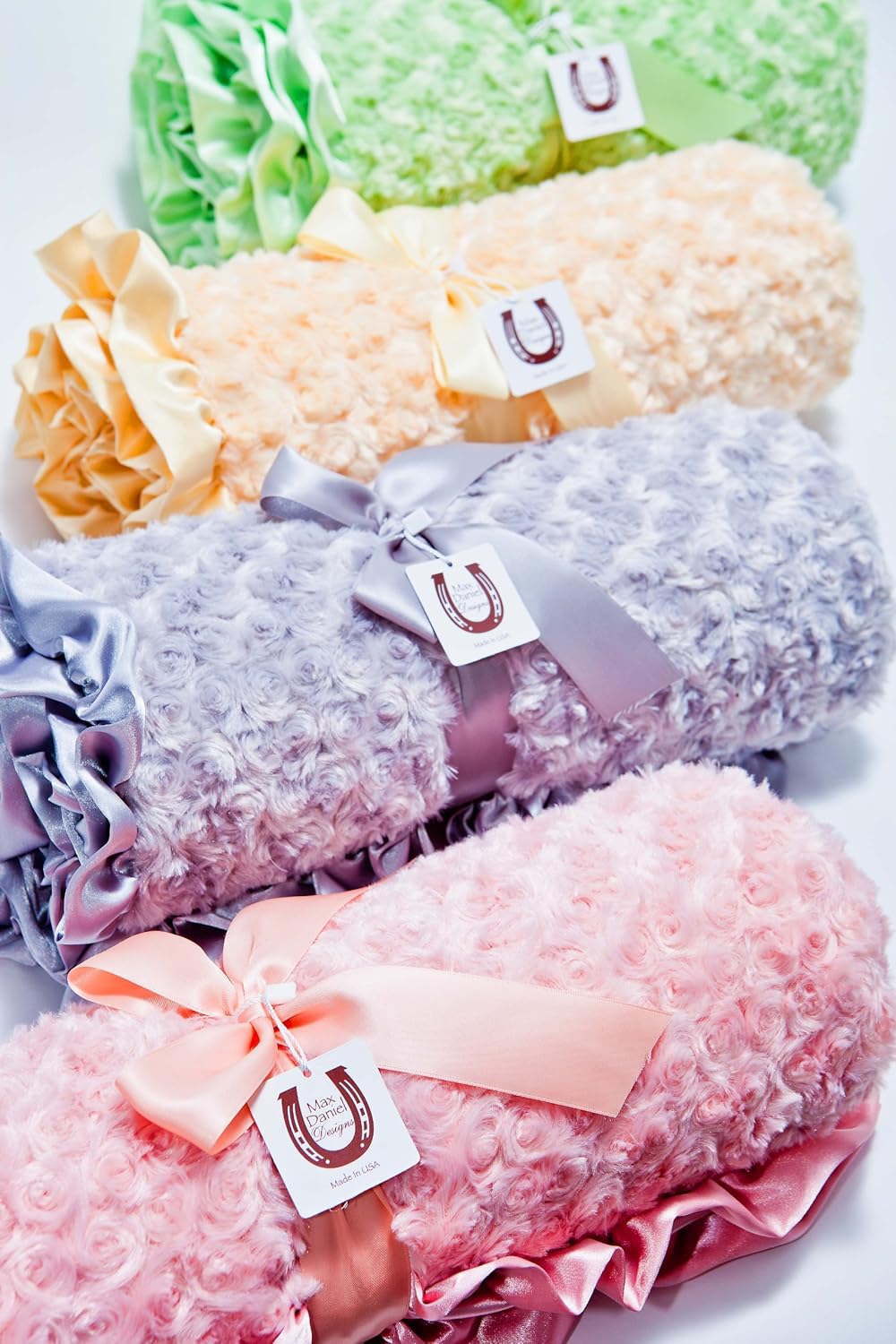 ultraplush vortici sul retro e morbido e snuggly charmeuse Satin Ruffle preferito delle mamme vip tra cui Jennifer Lopez, Nicole Kidman, e Jennifer Garner Lavabile in lavatrice Dimensioni: 91 x 81 cm Made in U.S.A