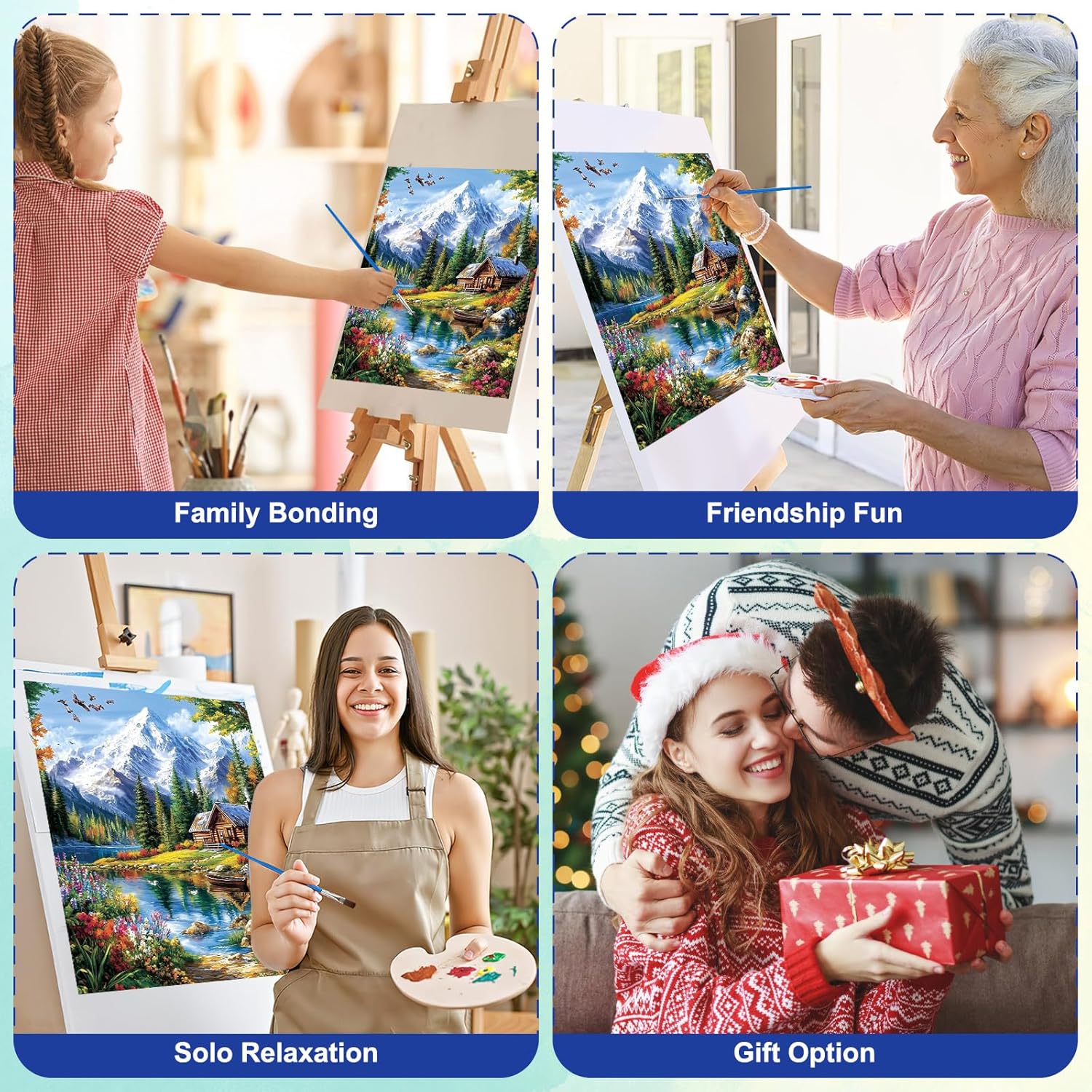 Ottimo per principianti & Goditi il tuo Tempo Libero Questo set di pittura con i numeri è perfetto per adulti principianti senza esperienza di pittura, offrendo istruzioni facili da seguire. Completa la pittura a olio con numeri con sezioni numerate intuitive, goditi una rilassante terapia artistica mentre crei oggetti da collezione, consentendo a tutti di diventare artisti eccellenti Tela di Qualità Premium & Codifica Chiara La pittura a colori utilizza una tela con resa cromatica ad alta definizione con numeri incisi al laser per una chiara visibilità. Il tessuto di tela resistente trattiene la vernice acrilica in modo uniforme senza sbavature, garantendo un processo di colorazione fluido Divertente & Facile da Iniziare La pittura a olio con i numeri non richiede la miscelazione dei colori, ogni vernice acrilica è pre-etichettata con numeri ed è pronta all'uso. Ogni barattolo numerato corrisponde all'area della tela corrispondente, consentendoti di dipingere facilmente e senza preoccupazioni Kit di Avvio Completo Questo kit da disegno per adulti include 3 pennelli professionali (piccolo/medio/grande), 2 ganci da parete, tela e ampia scorta di vernice. La pittura per adulti con i numeri è un regalo unico e creativo che può essere fatto ad amici, familiari, ecc. per compleanni, festa della mamma, San Valentino, Natale, ecc. La pittura a olio fai da te è anche un regalo ideale per gli amanti dell'artigianato Opera D'arte per Qualsiasi Spazio Dopo aver completato il dipinto, può diventare una decorazione perfetta per l'ufficio, il soggiorno, la camera da letto e la sala da pranzo, aggiungendo personalità a ogni stanza. Allo stesso tempo, il dipinto digitale completato è anche una scelta regalo unica per genitori, amanti, amici e bambini per compleanni, matrimoni, feste, Natale e altre occasioni