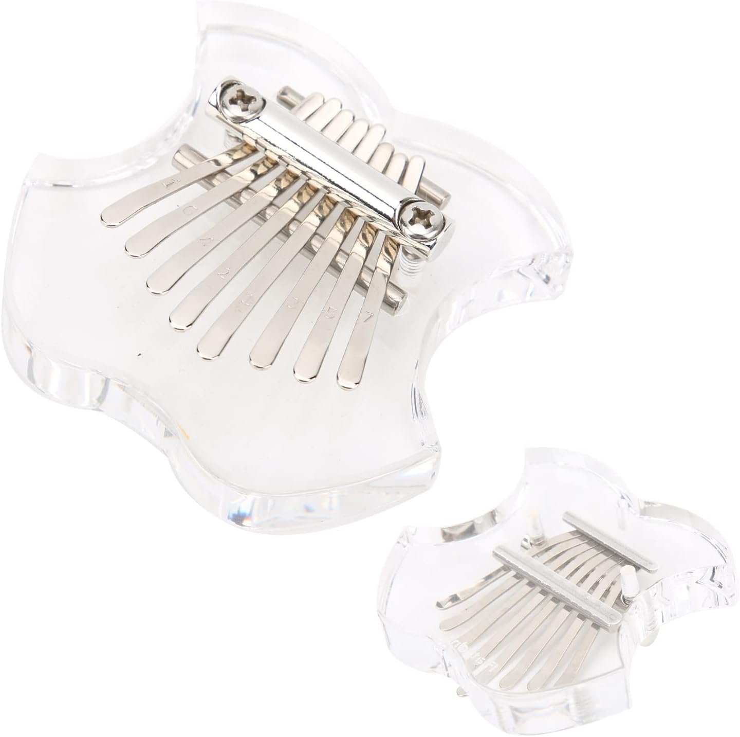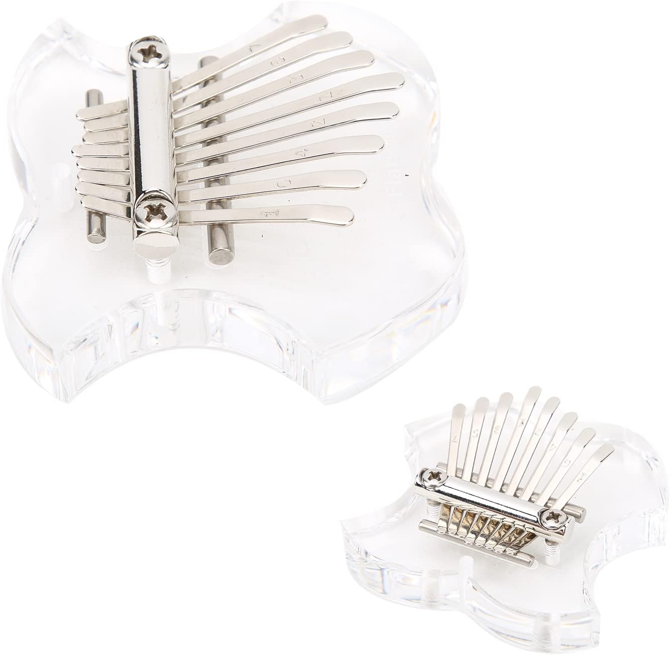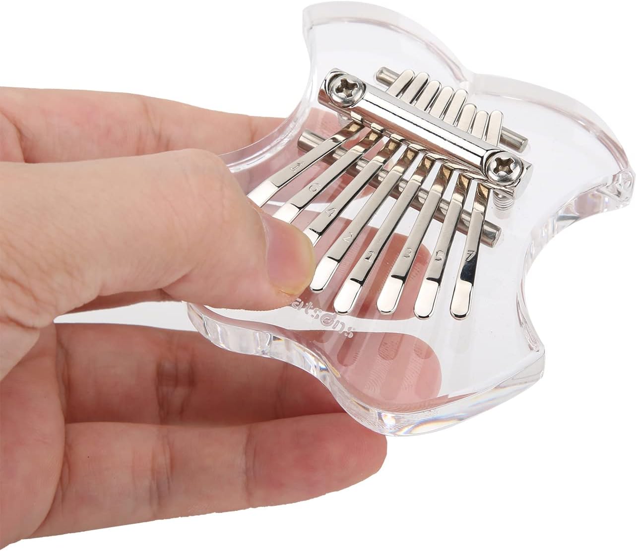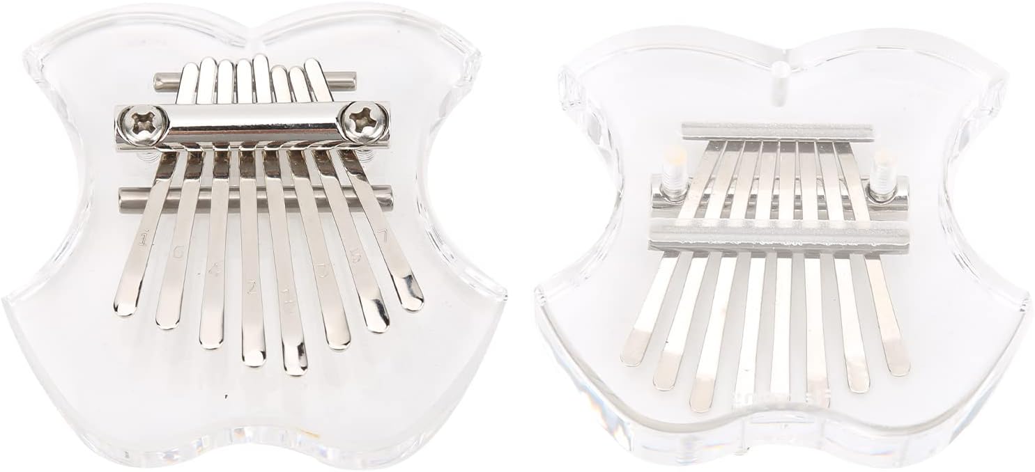 Questo pianoforte finger pollice è facile da trasportare e può essere utilizzato come un simpatico ciondolo che può essere attaccato allo zaino della scuola, al portachiavi, all'auto, ecc. Questo mini pianoforte finger pollice ha 8 tasti, meno sono i tasti, più facile sarà suonare Facile da usare, l'effetto è molto buono, evita il problema dei tasti rigidi e difficili da spostare Lo stile è classico e unico, il pianoforte trasparente è molto bello e trattiene bene il suono dello strumento La distanza tra i singoli tasti non è né stretta né molto ampia, le dimensioni sono semplicemente molto ragionevoli