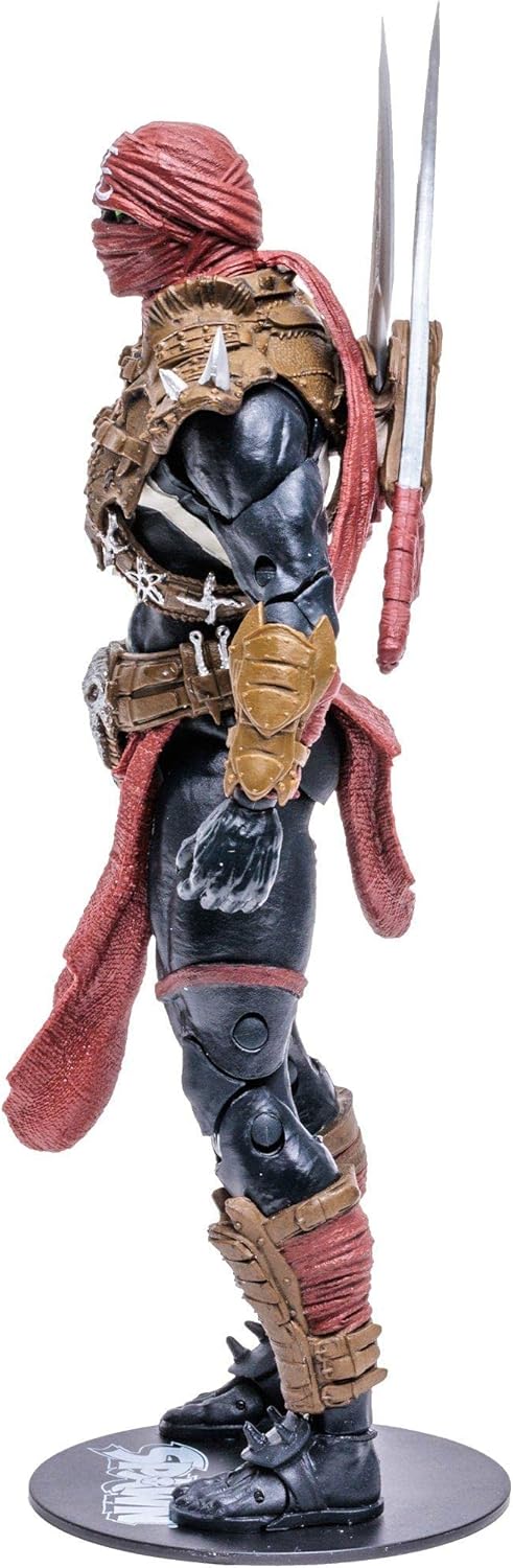 Figura in scala di 18 centimetri dettagliata basata su Spawn Progettato con Ultra Snodo con fino a 22 parti mobili per una gamma completa di pose e giochi Include una carta artistica da collezione con la fotografia della figura sul davanti e la biografia del personaggio sul retro Inncluye base e complementi Colleziona tutti i personaggi Spawn di McFarlane Toys