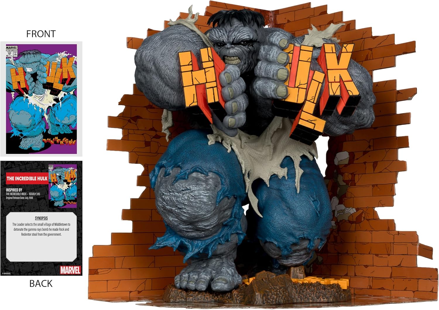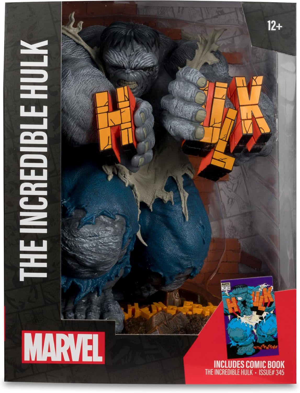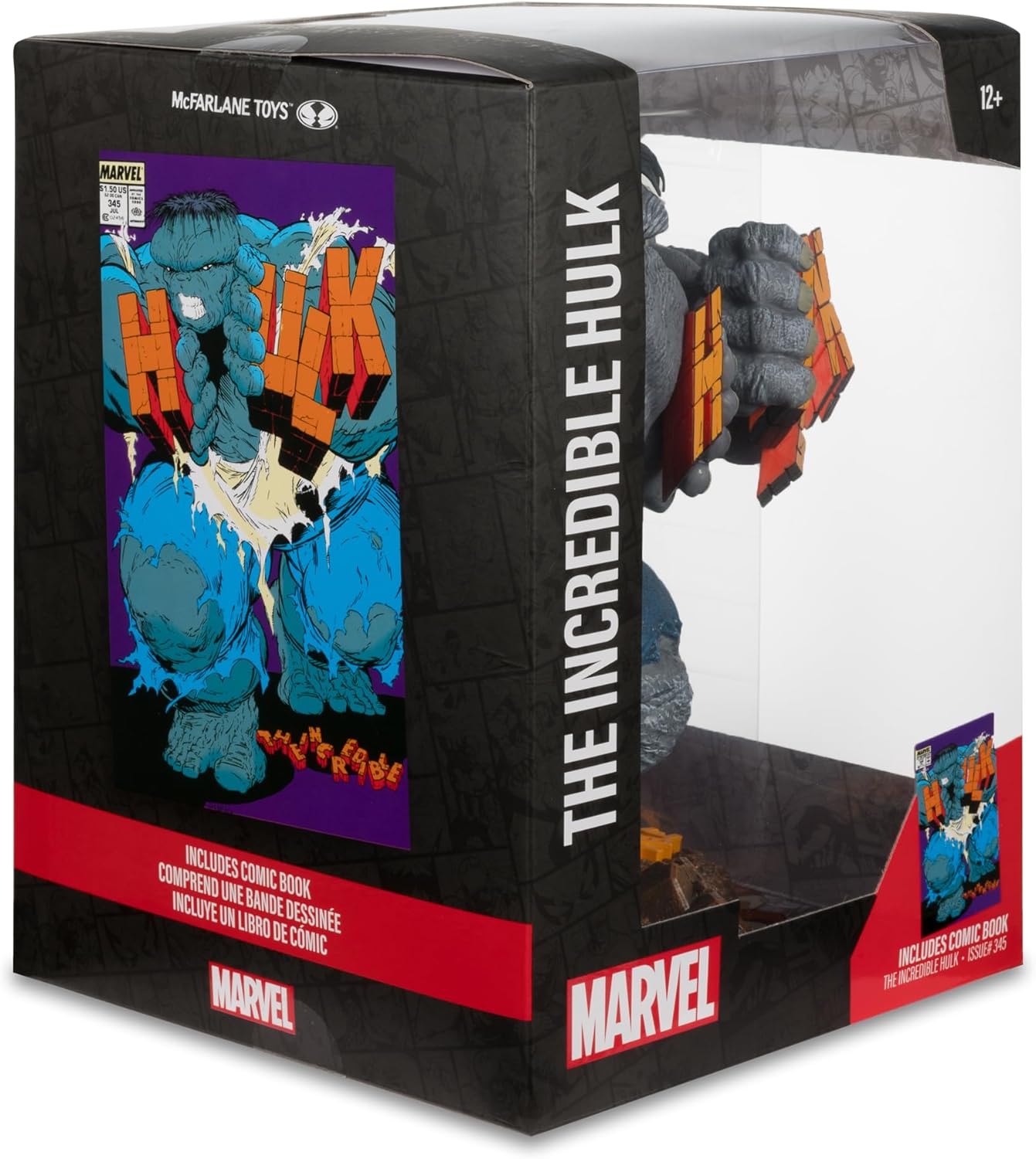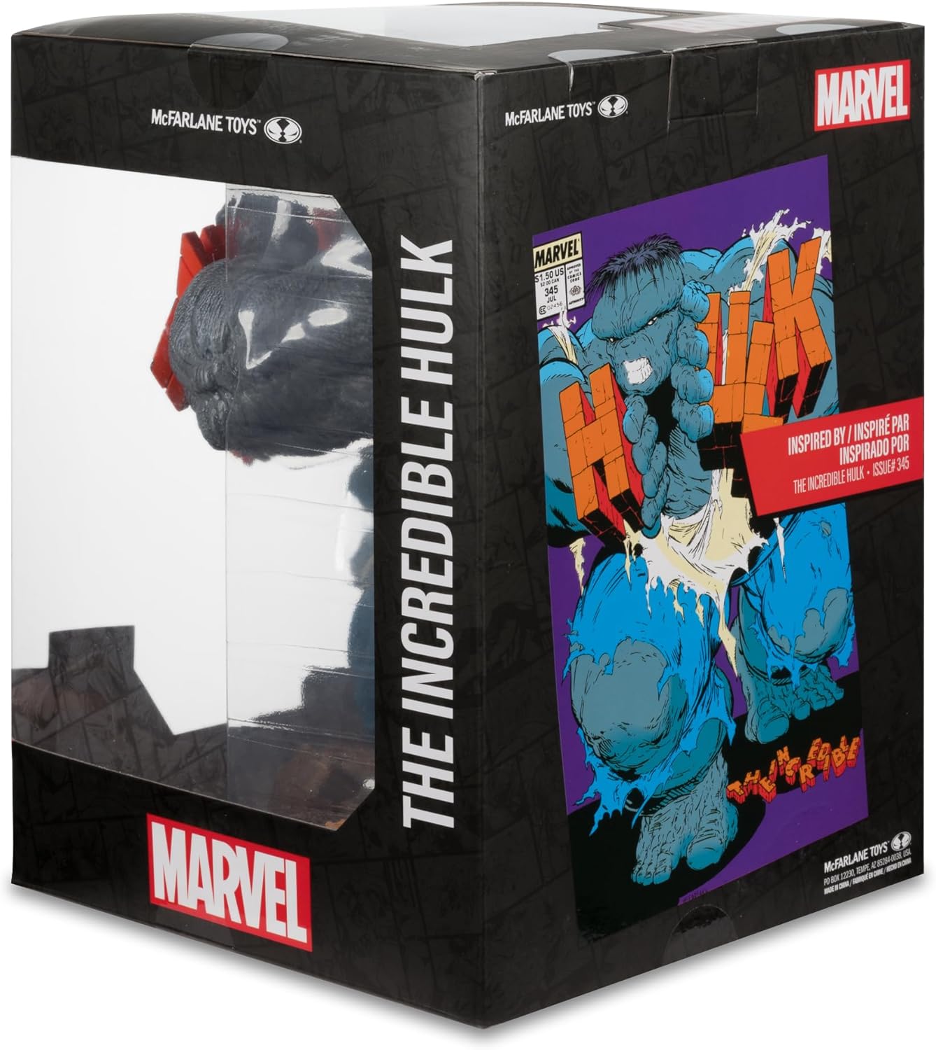 Ispirato all'incredibile edizione di Hulk #345 Da collezione in scala 1:6 con base ecologica e scena di sfondo Contiene il libro di fumetti "The Incredible Hulk Issue" n. 345 Include biglietto d'arte con illustrazioni di personaggi sul davanti e sinossi comica sul retro Colleziona tutti i collezionabili McFarlane Toys Marvel